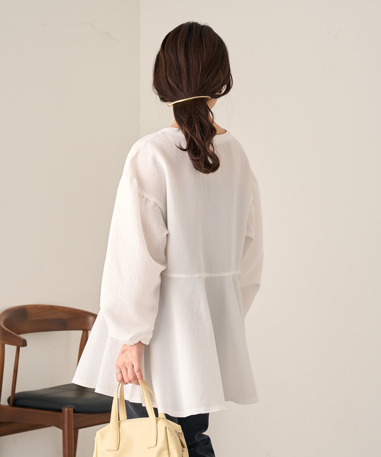 一枚着でもインナーにも活躍する、ペプラムブラウス