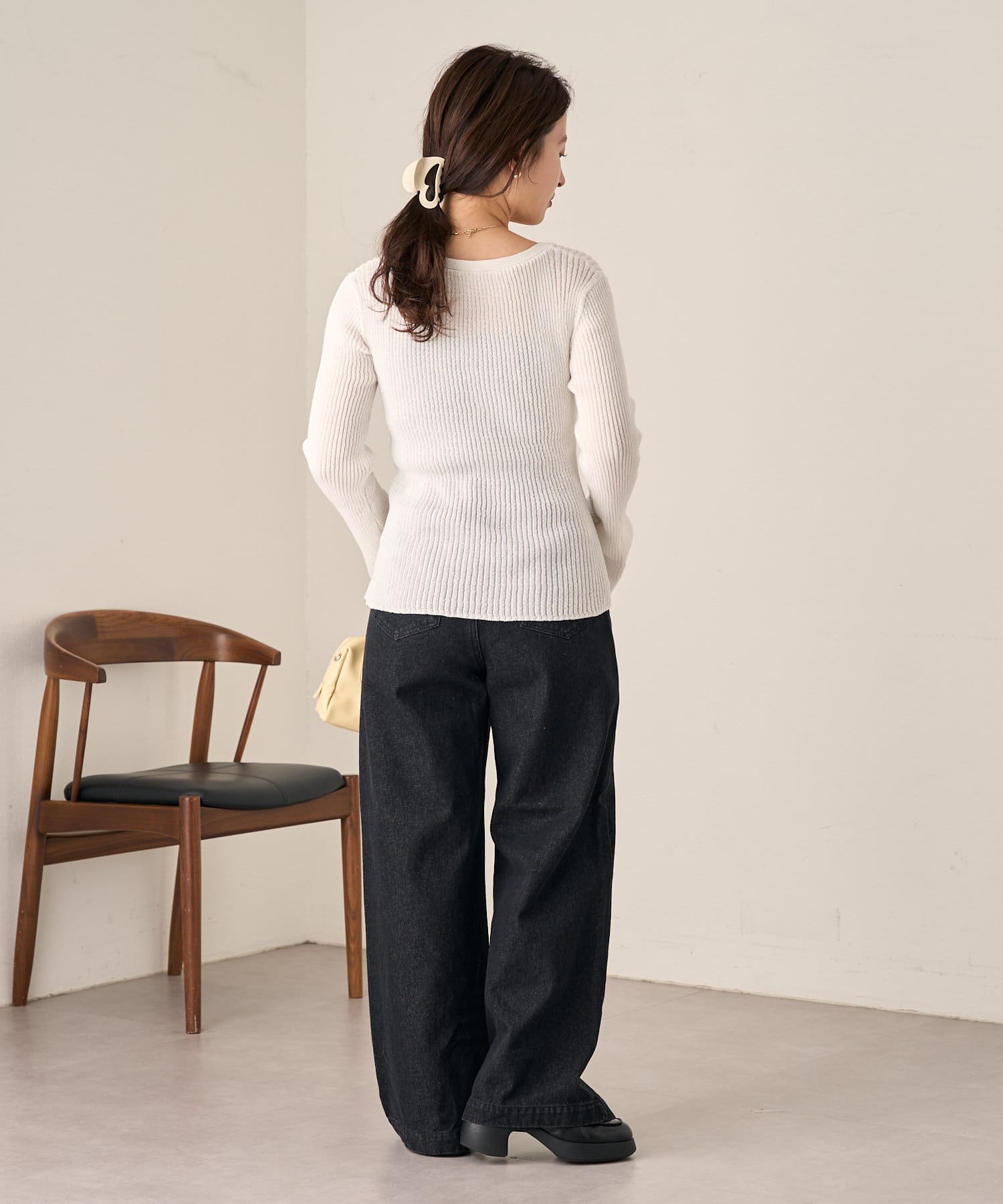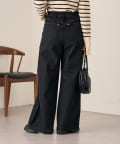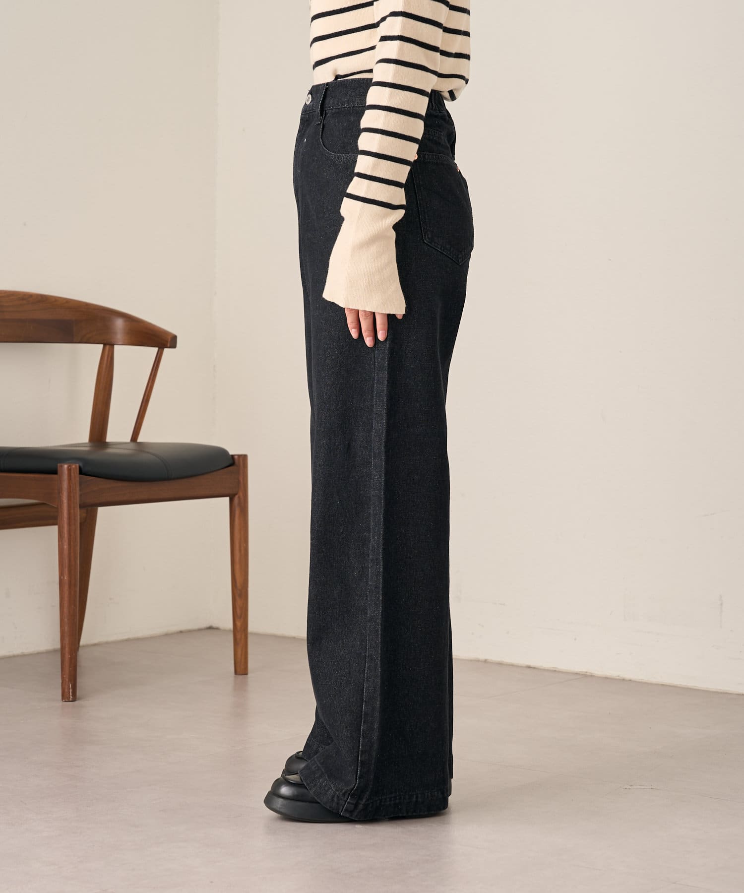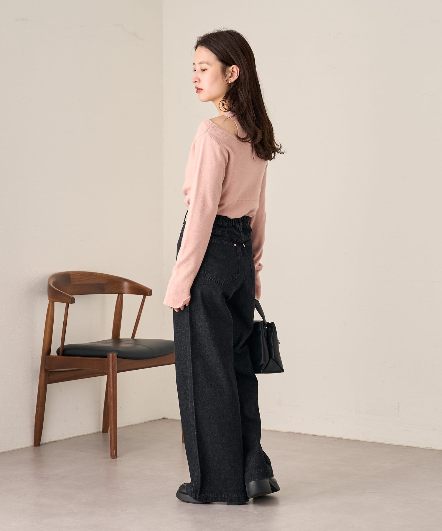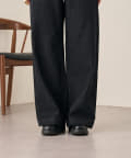 ずるっと足元に溜まるような丈感で履くのがおすすめです。