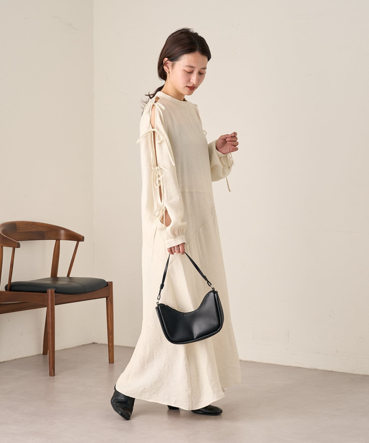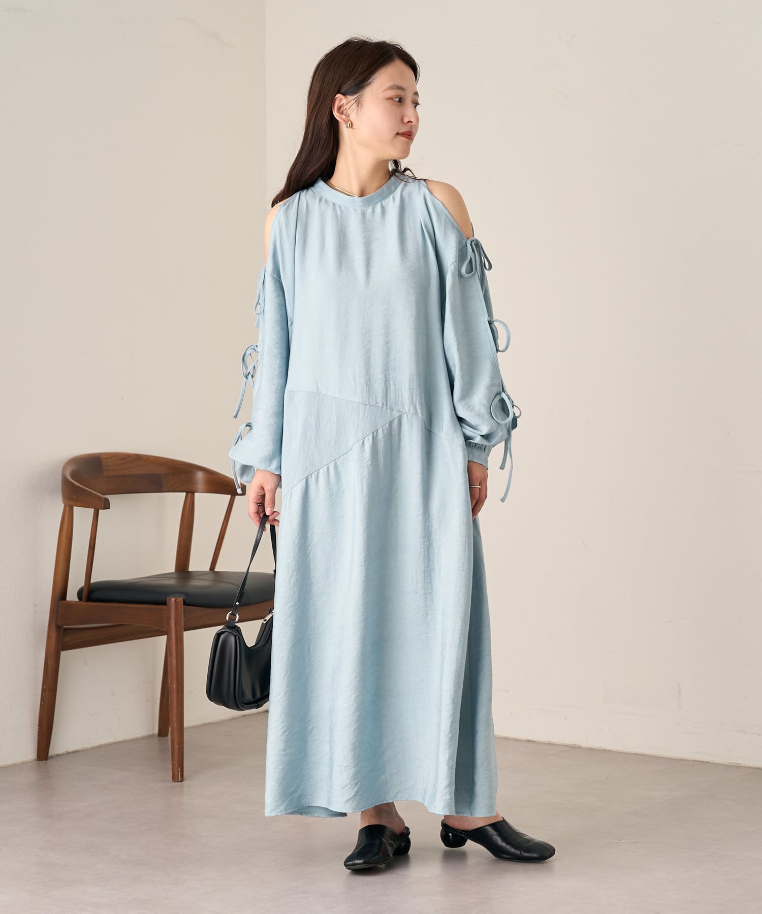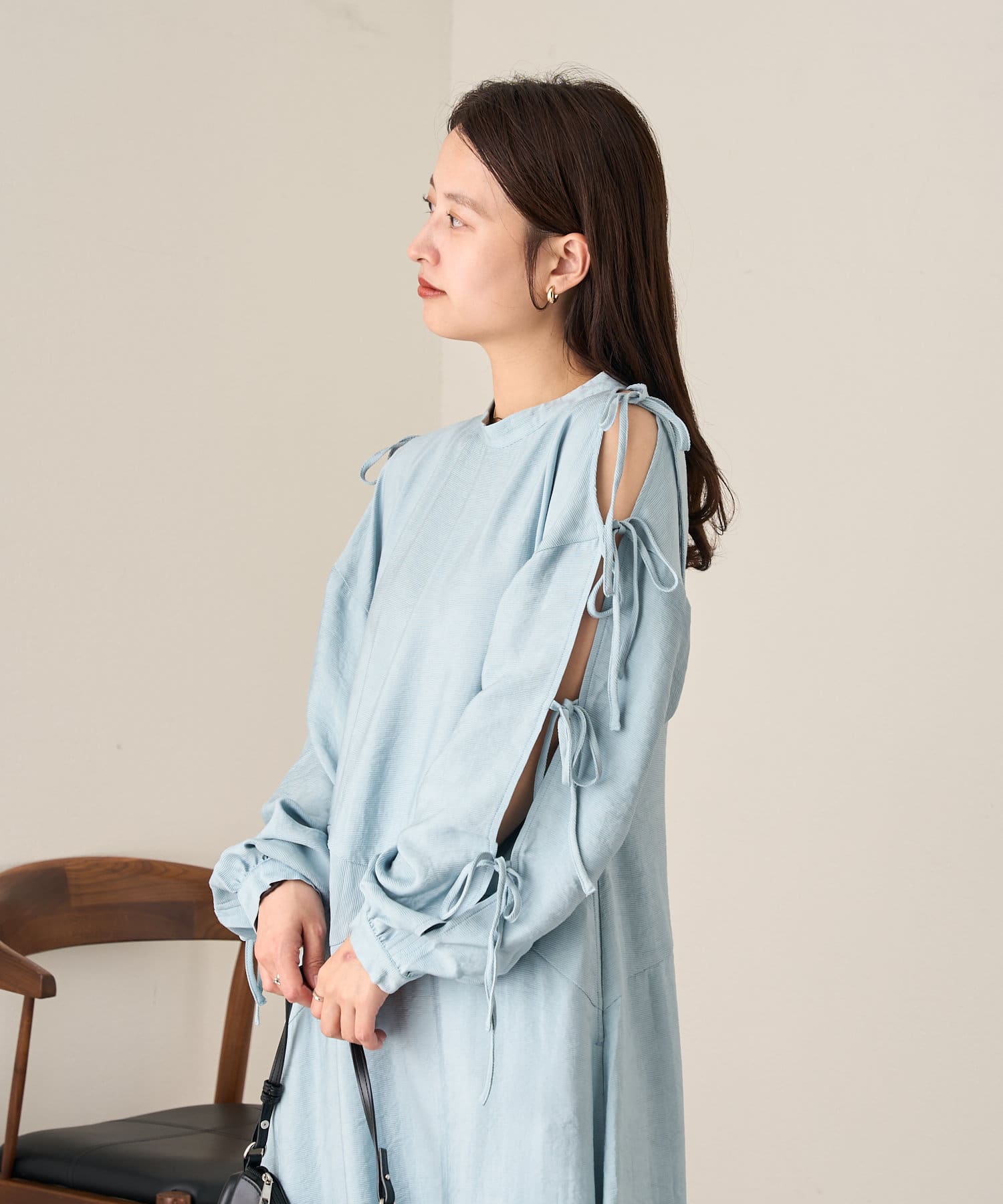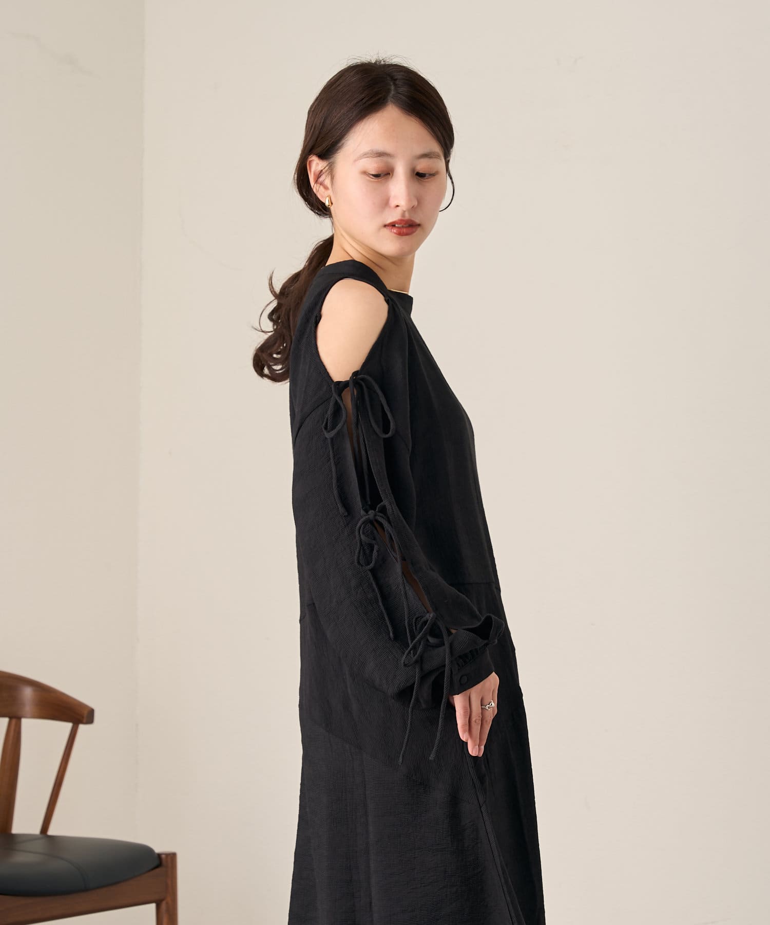 肩から腕にかけてあるカットアウトデザインは程よく肌見せができ、抜け感を出すことができます。