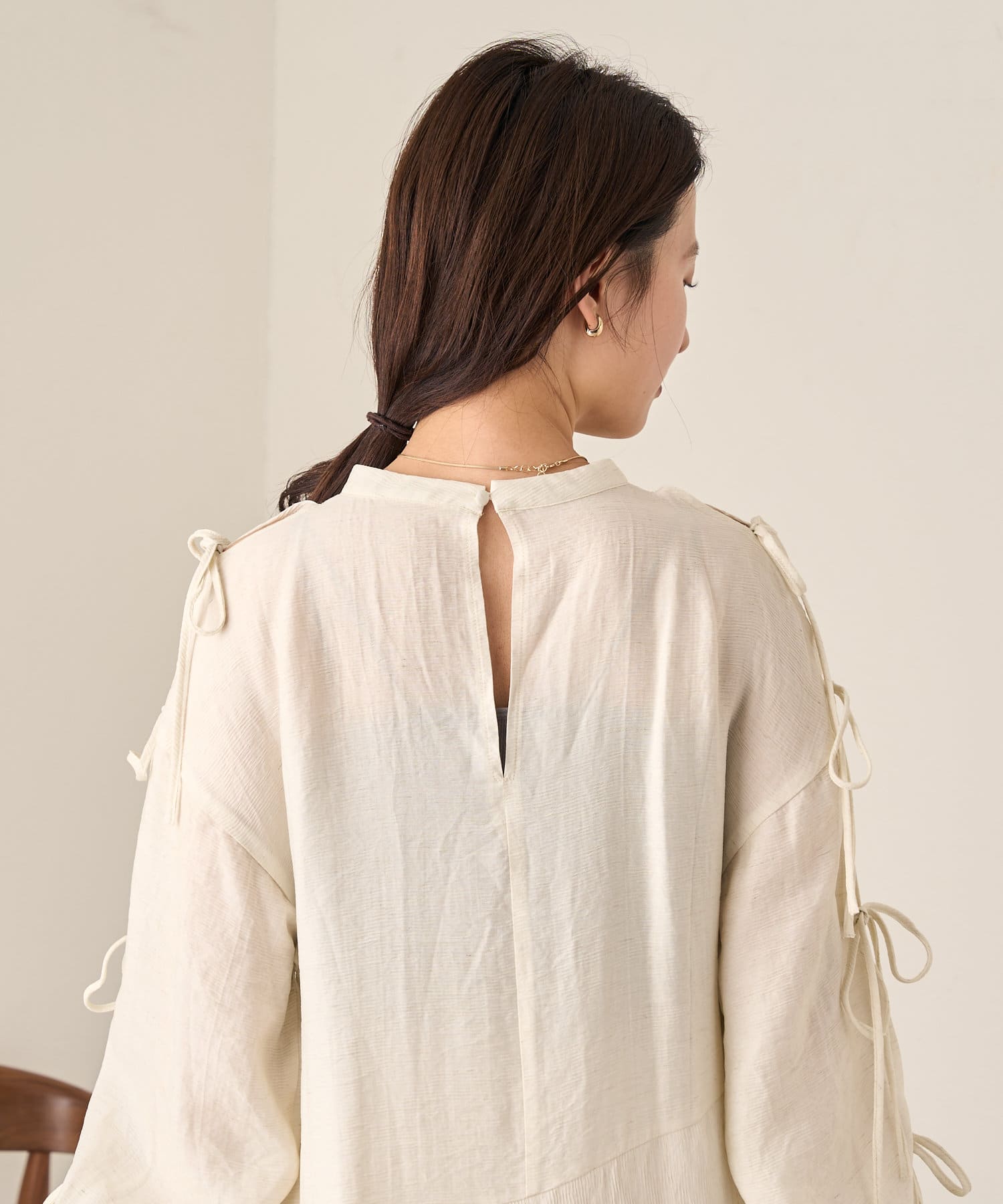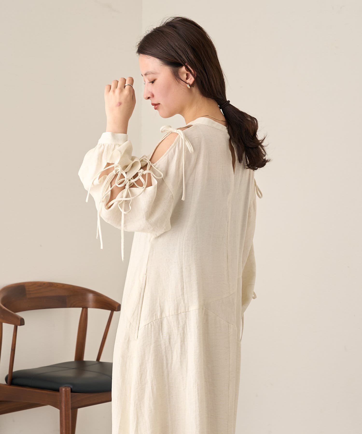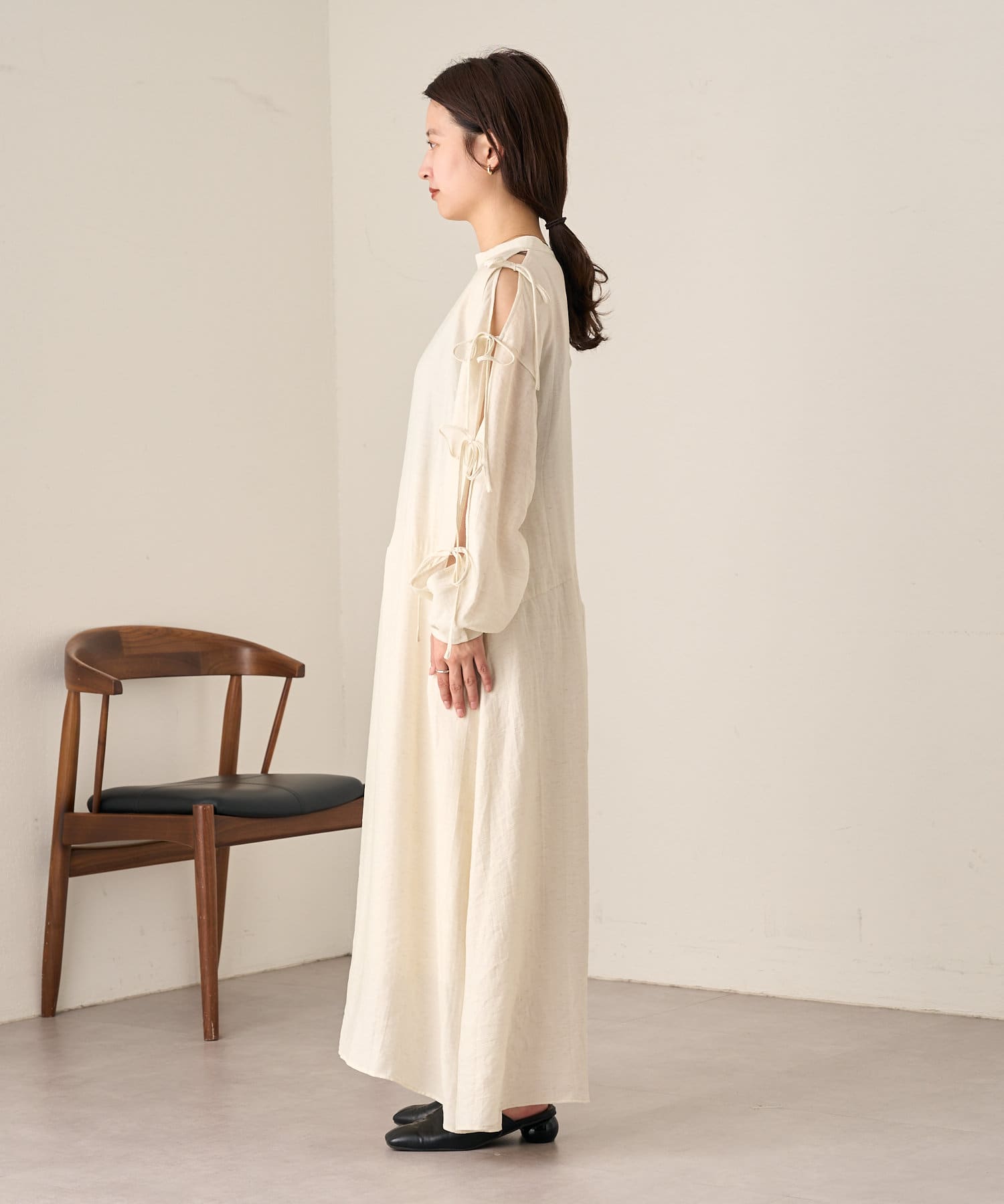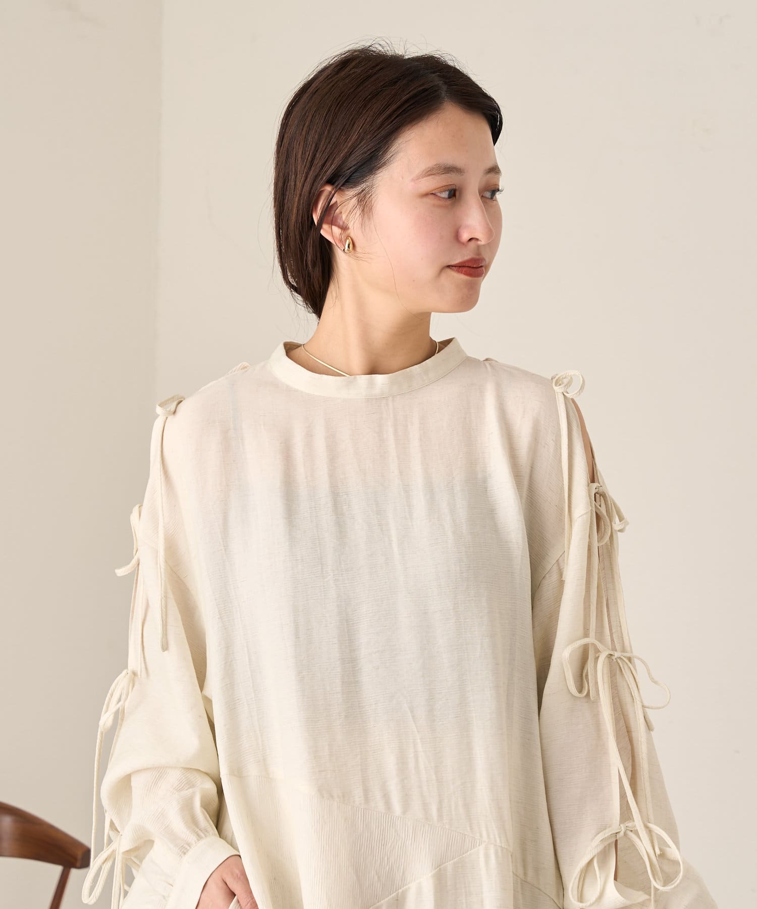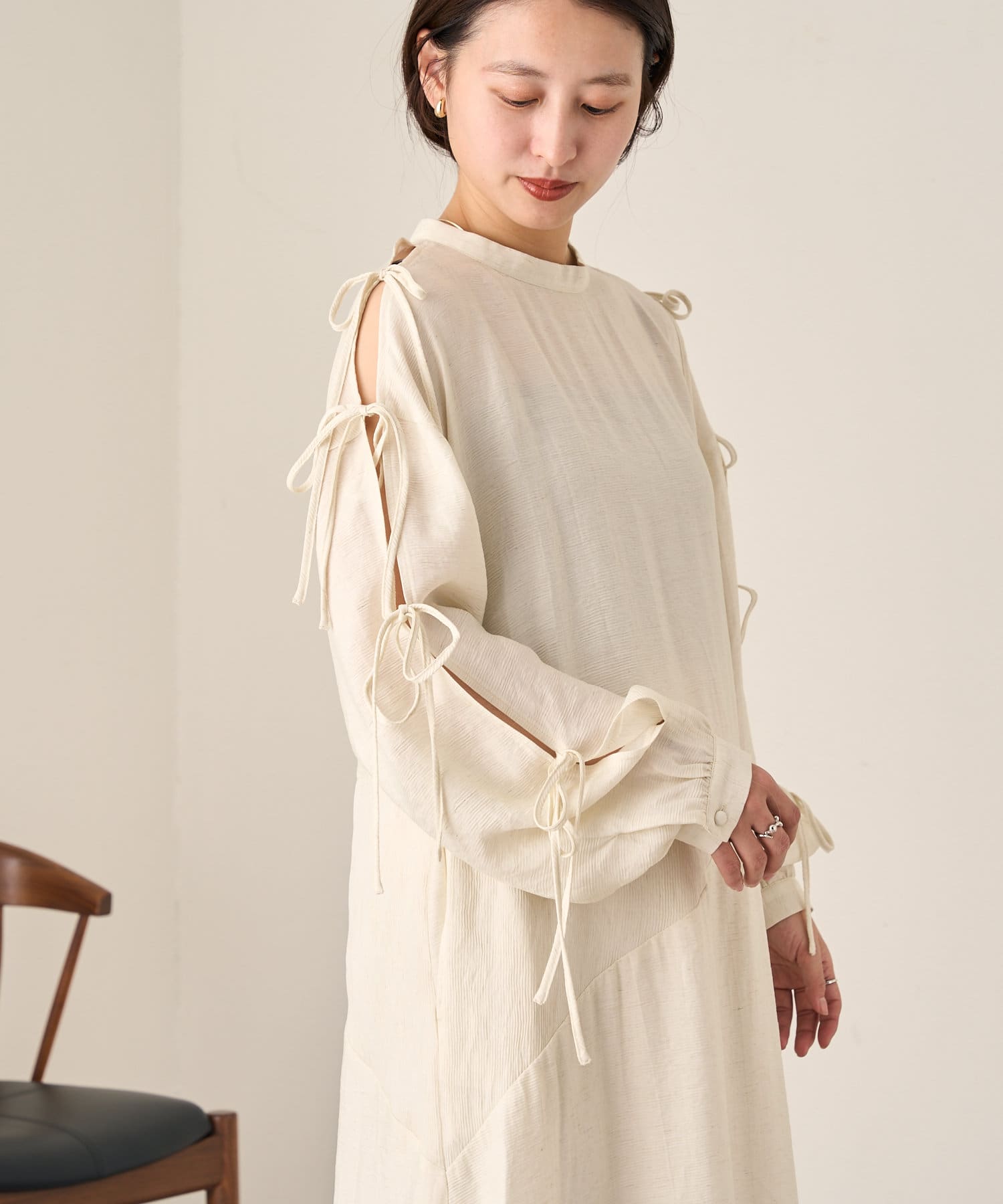 肩から腕にかけてあるカットアウトデザインは程よく肌見せができ、抜け感を出すことができます。