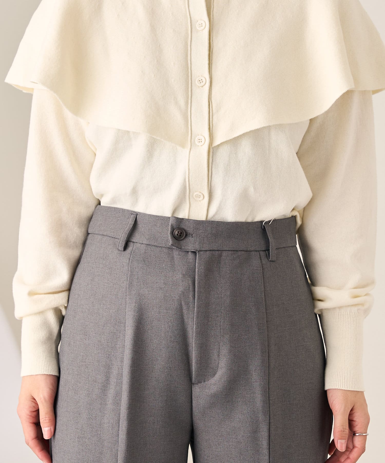 ウエストボタンがワンポイントになる一枚。