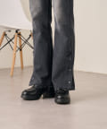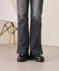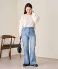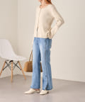 細見え効果◎裾ボタンがポイントになるフレアデニム