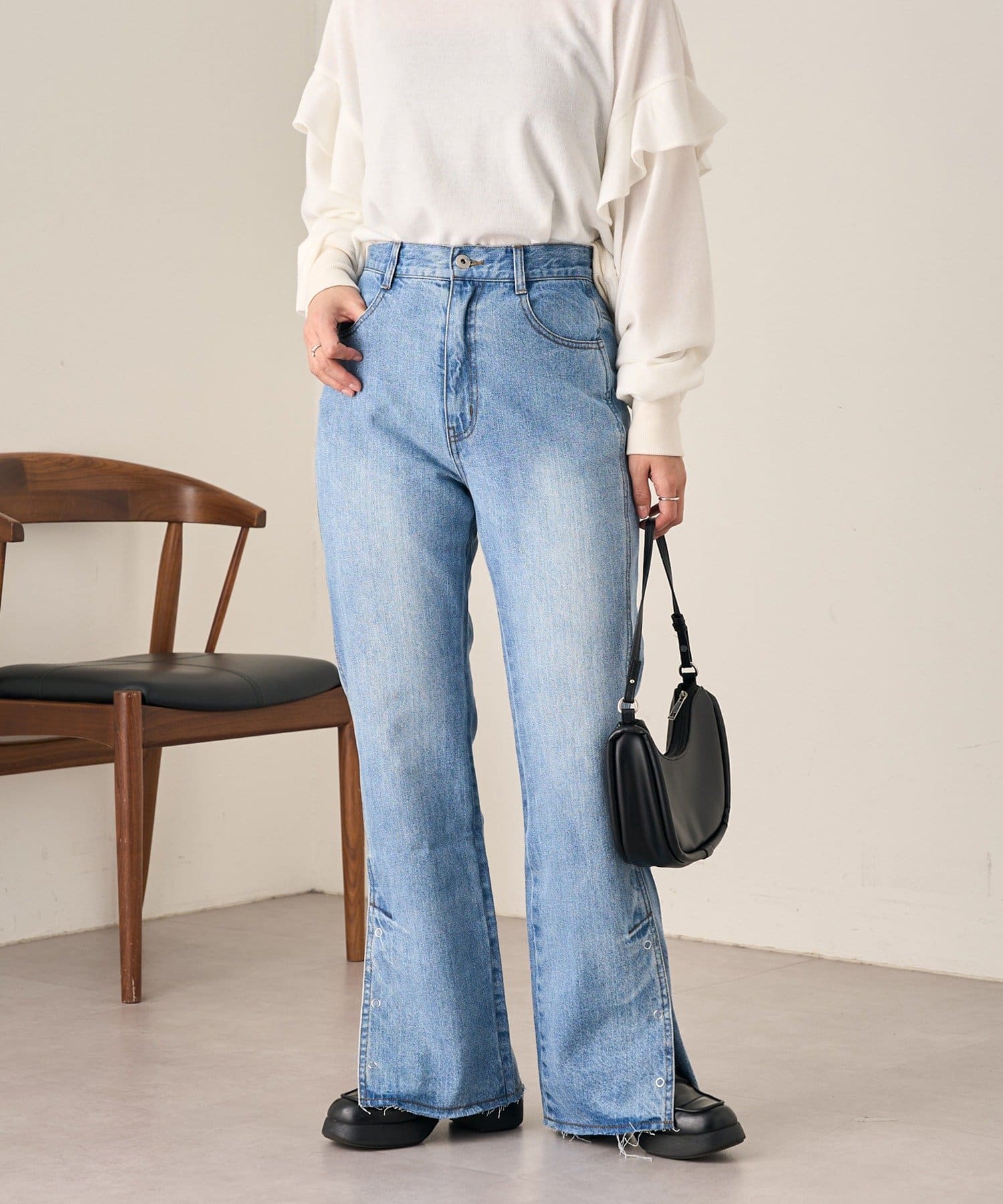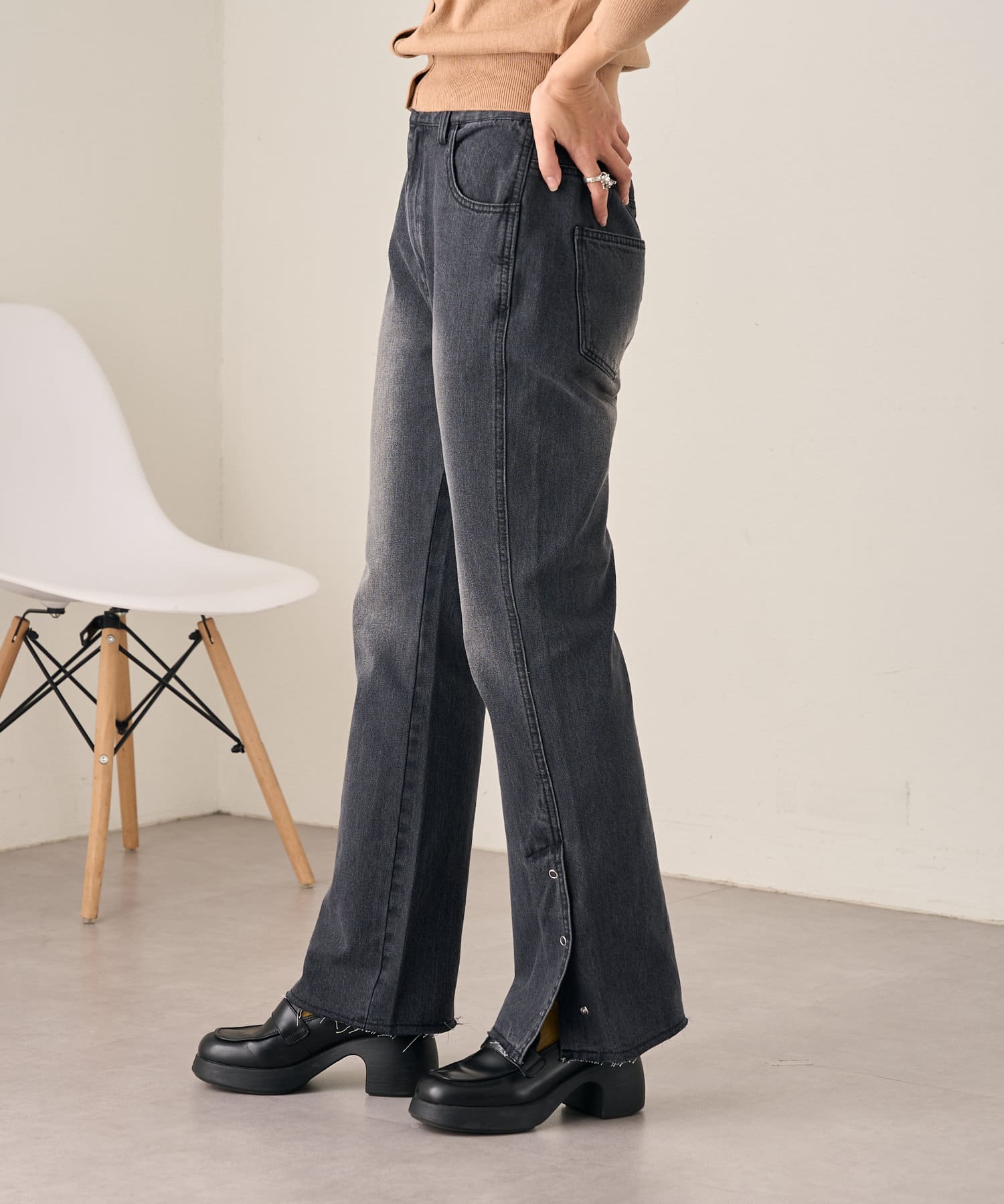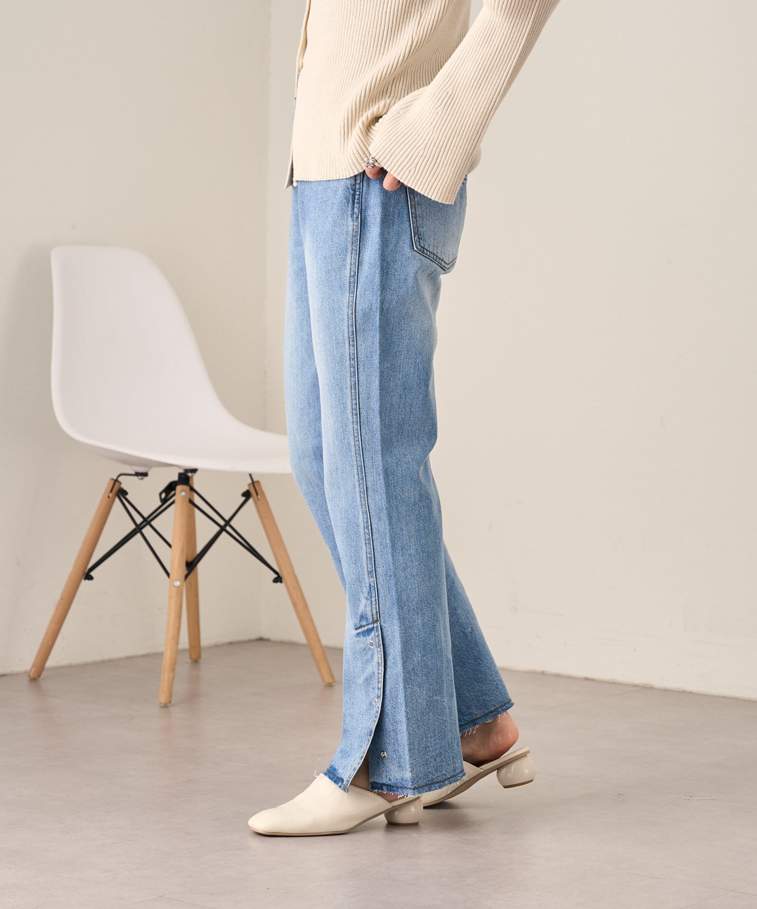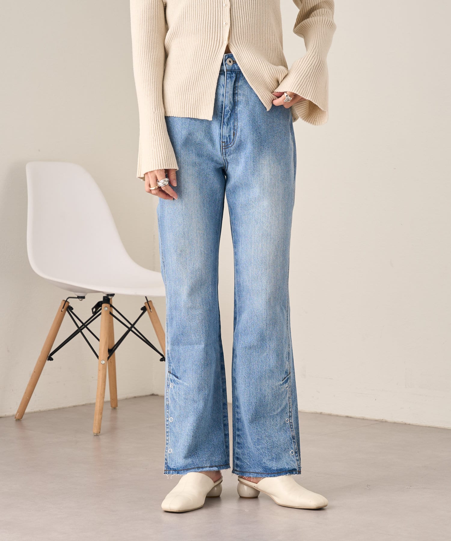 細見え効果◎裾ボタンがポイントになるフレアデニム