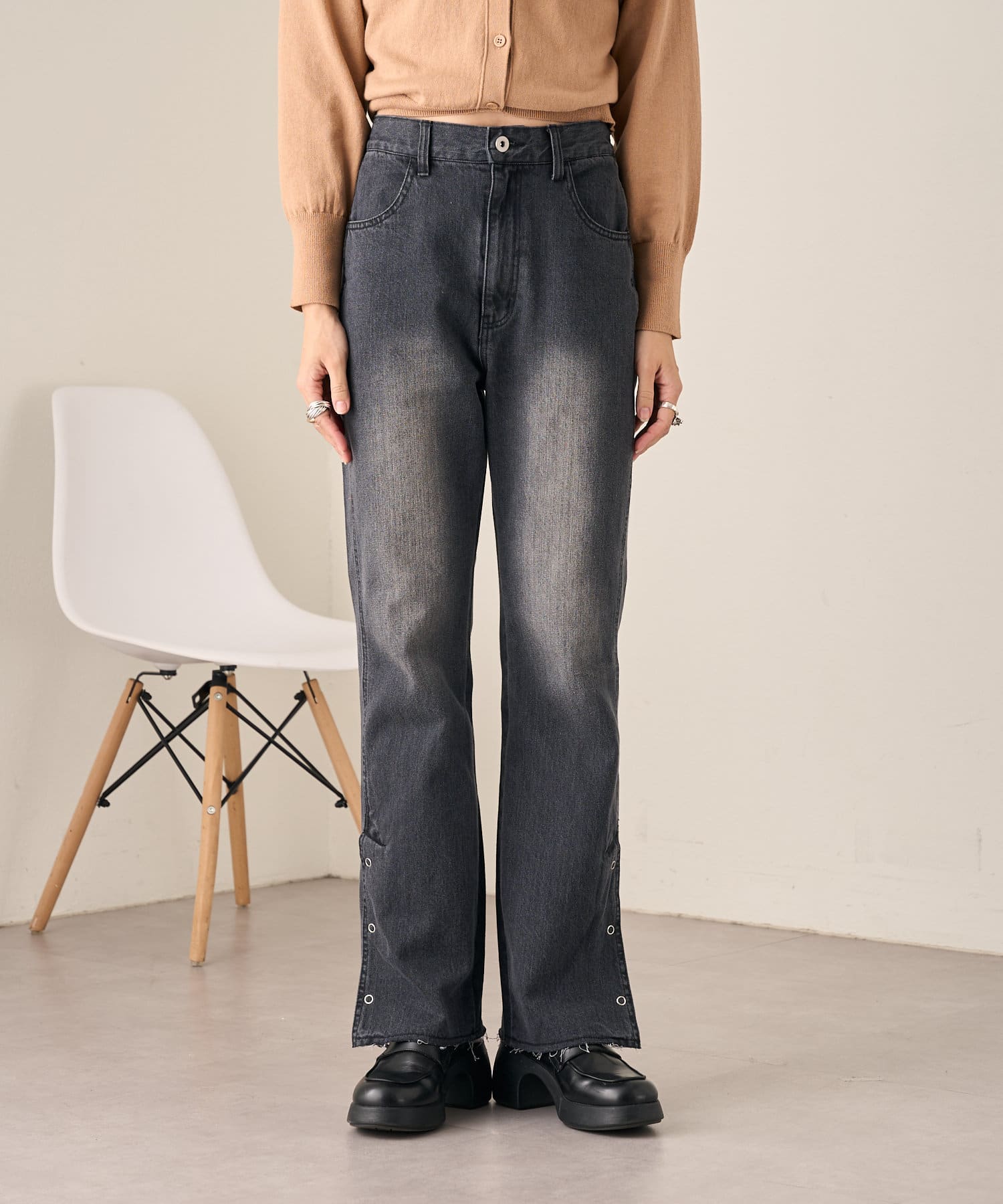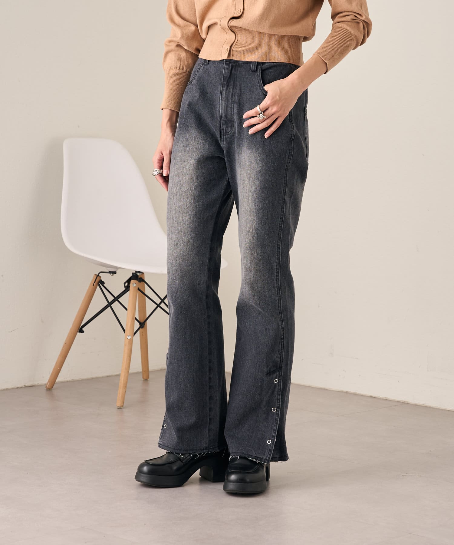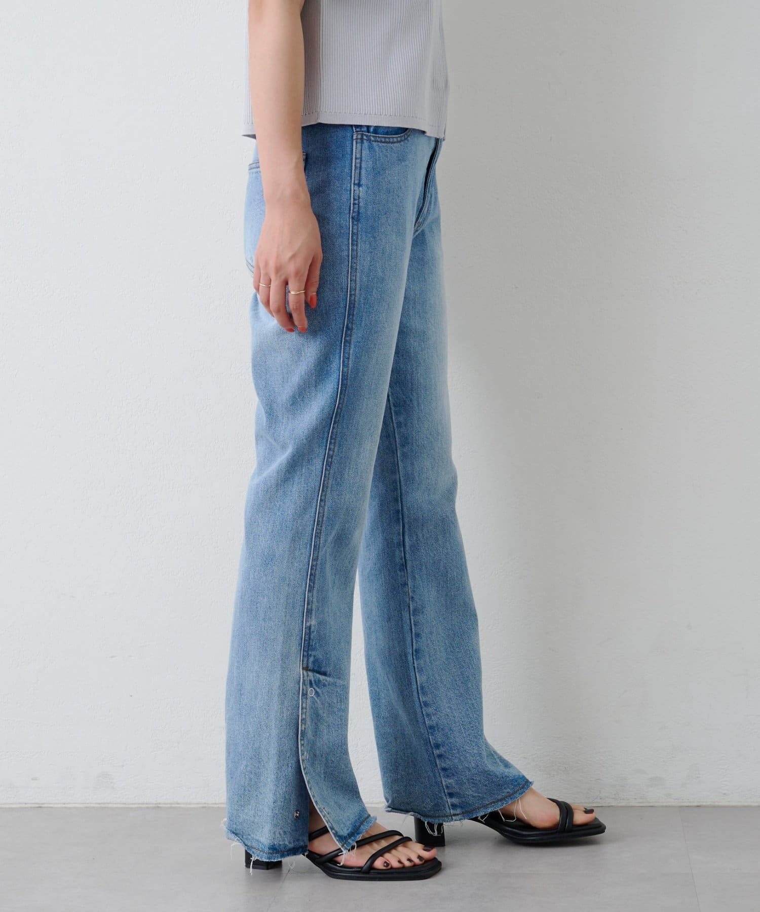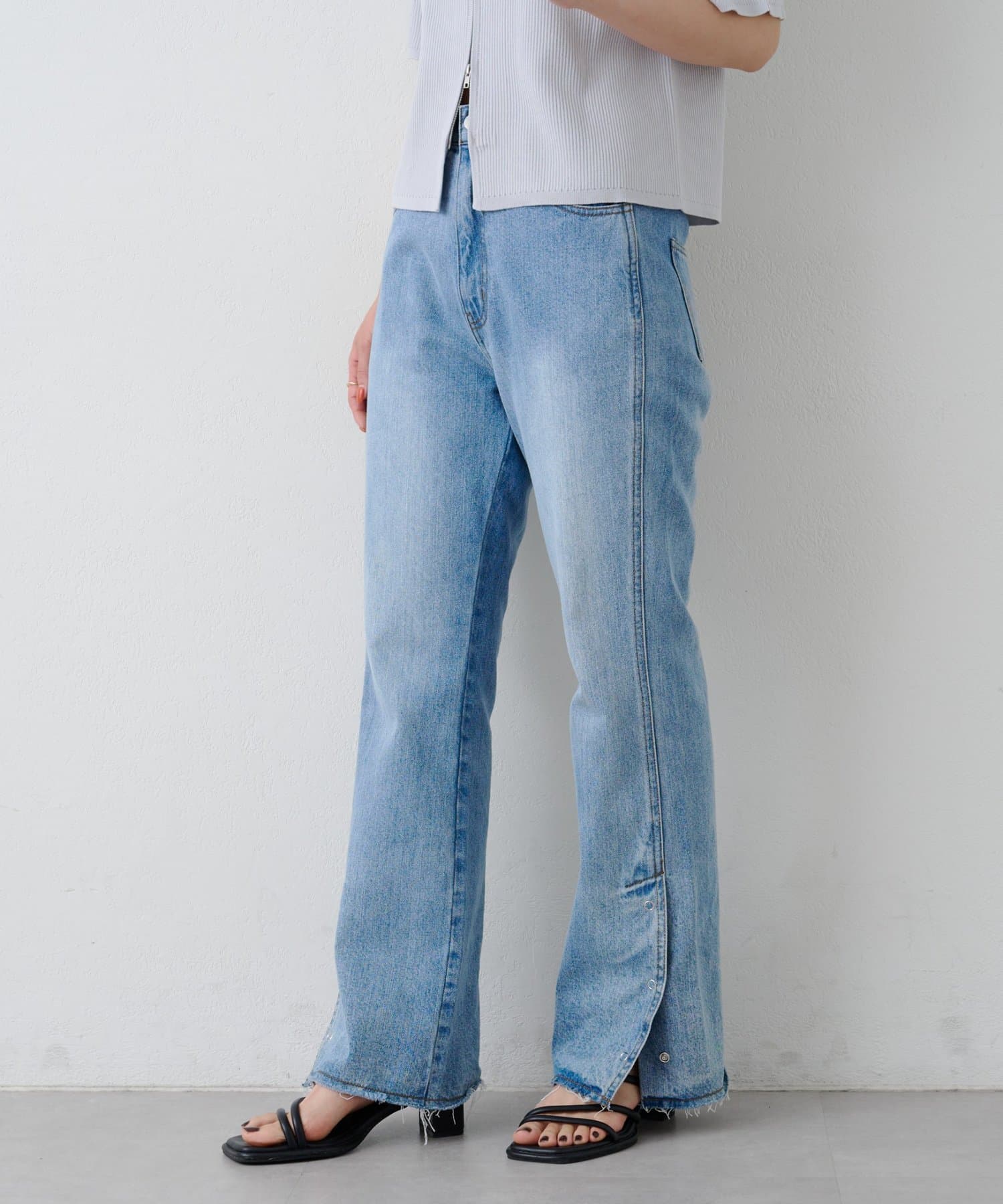 細見え効果◎裾ボタンがポイントになるフレアデニム