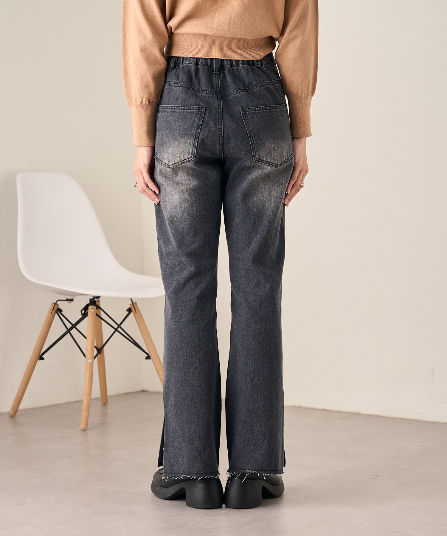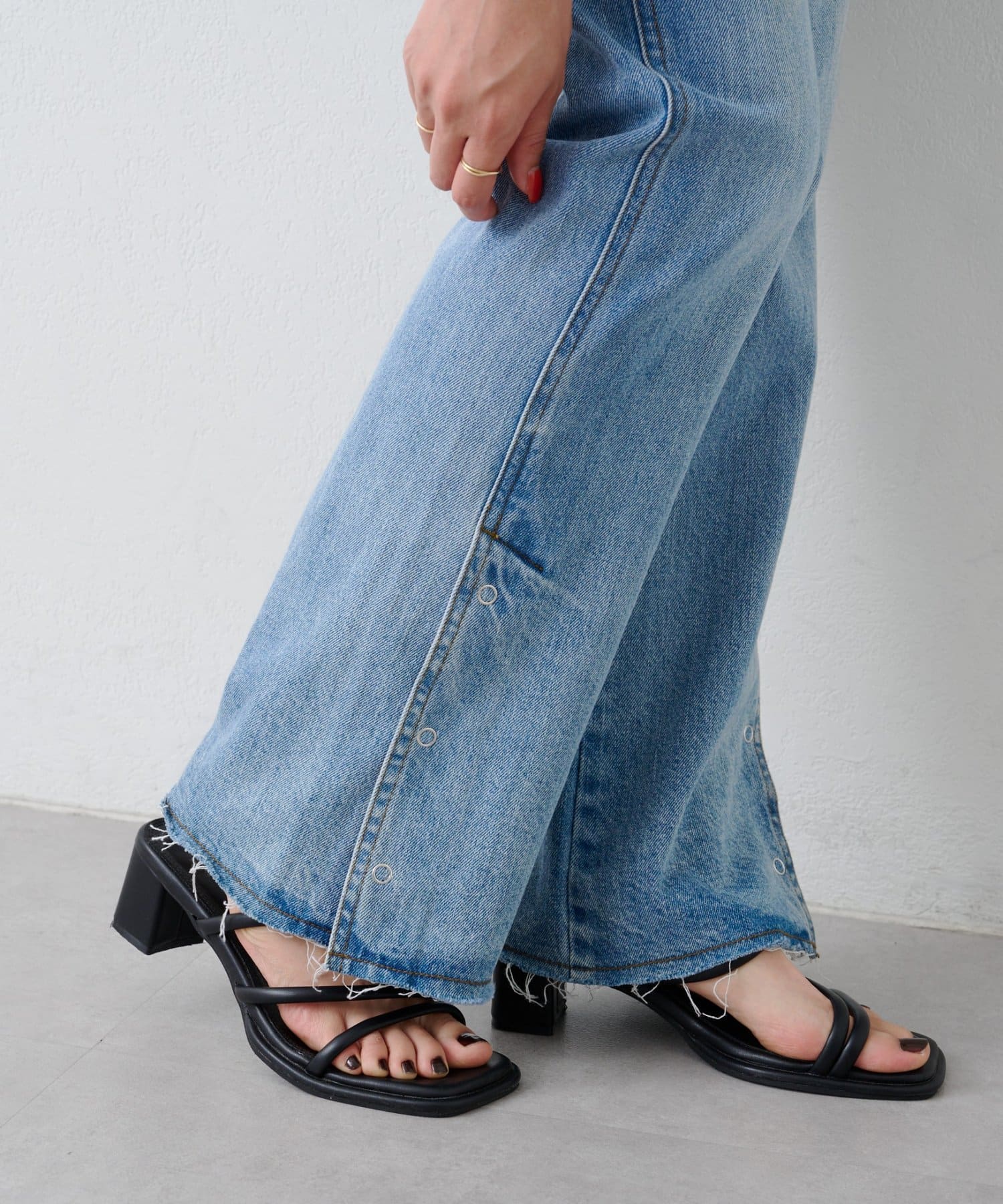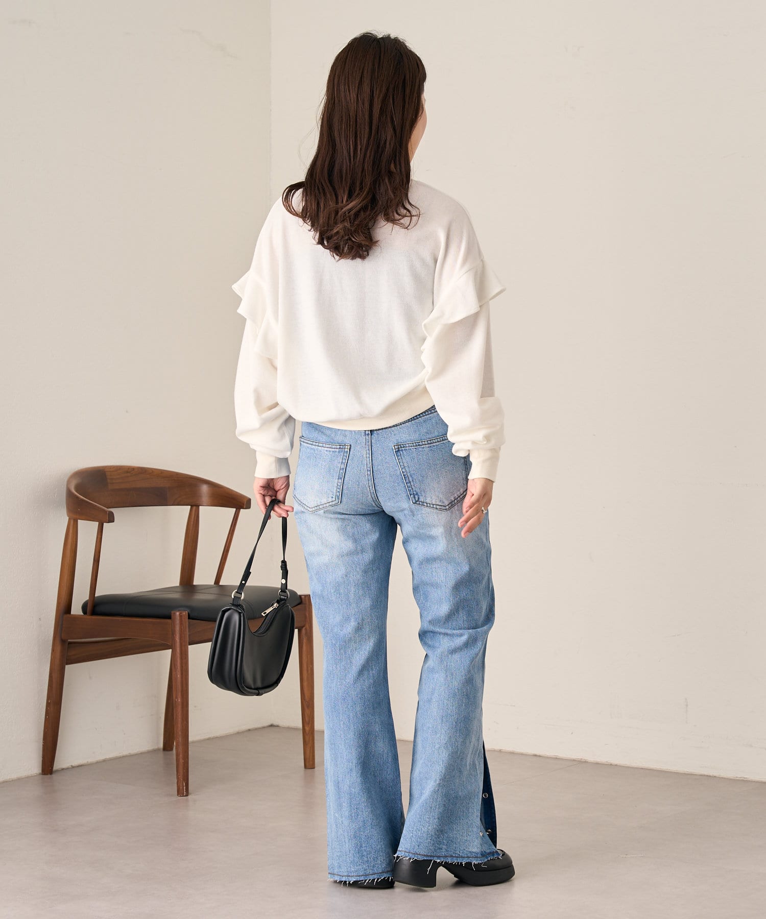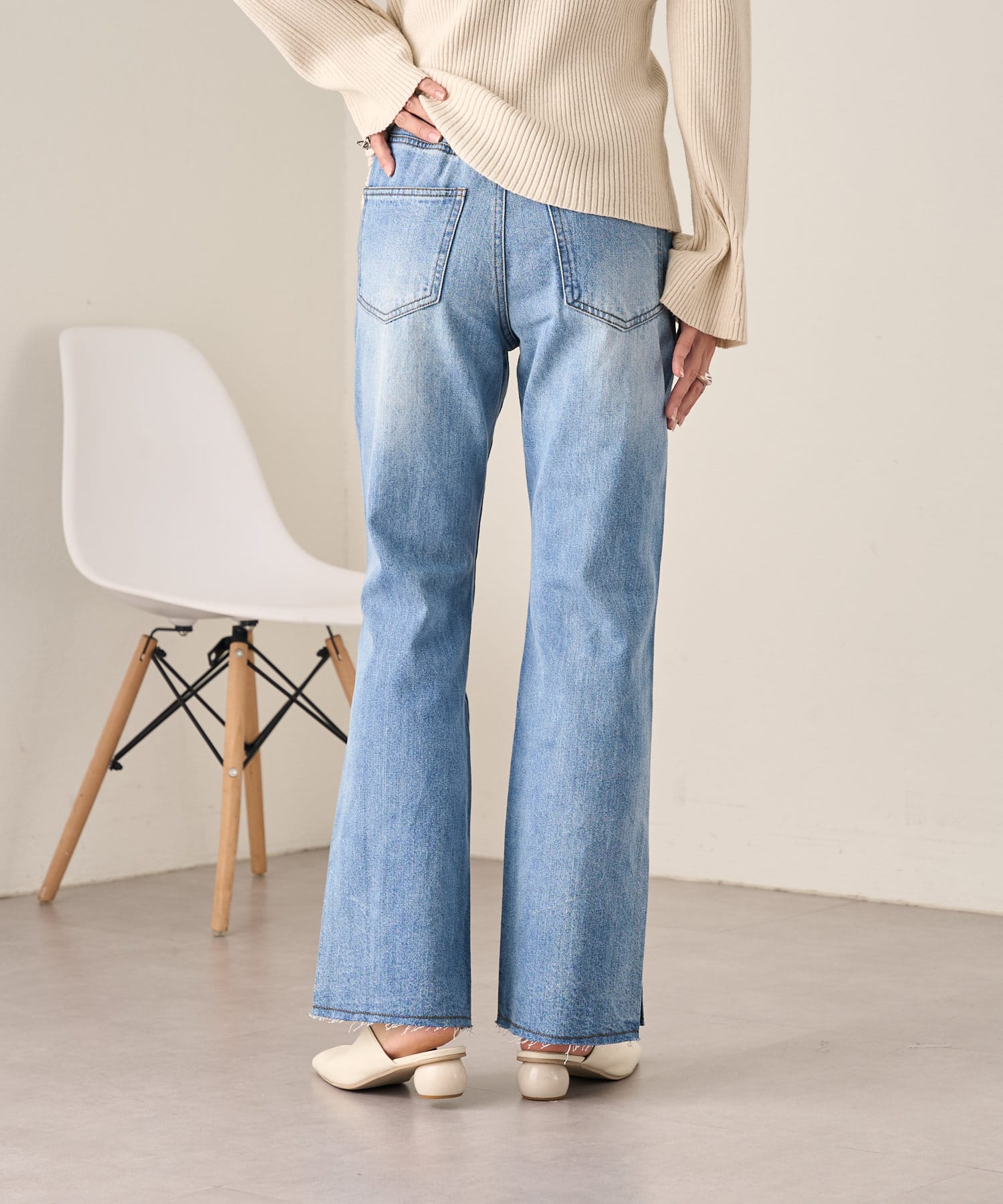 細見え効果◎裾ボタンがポイントになるフレアデニム