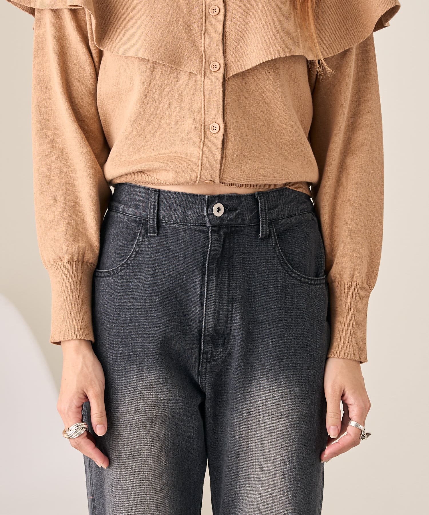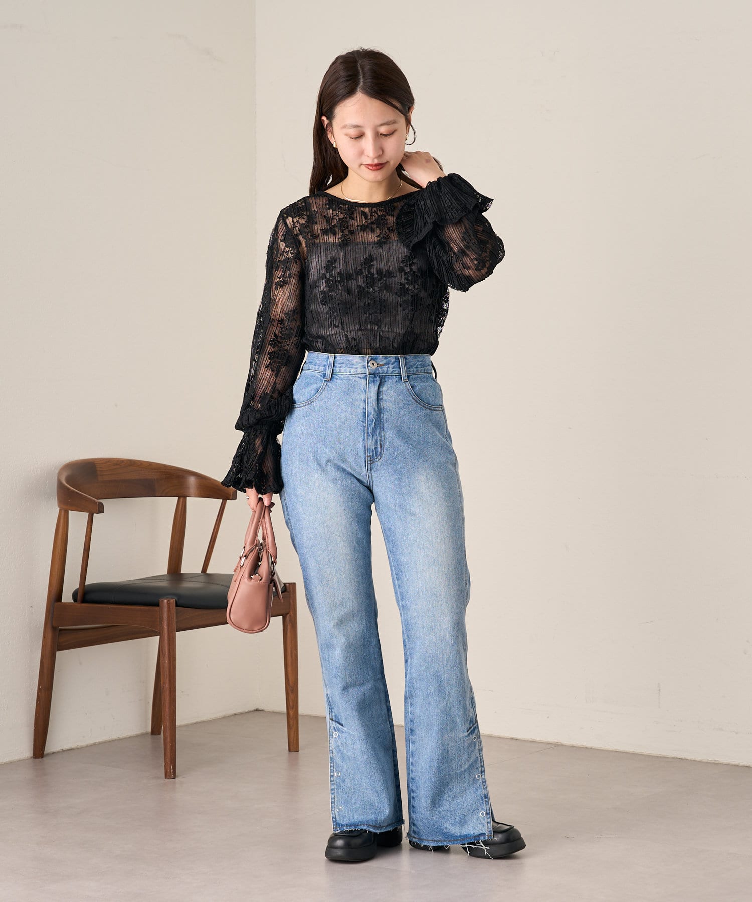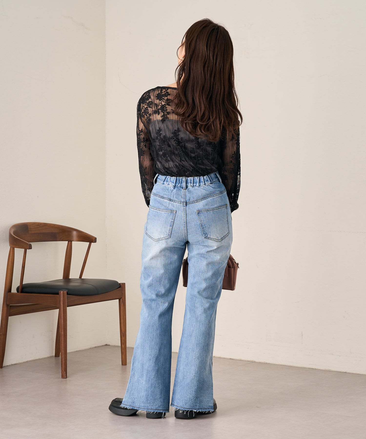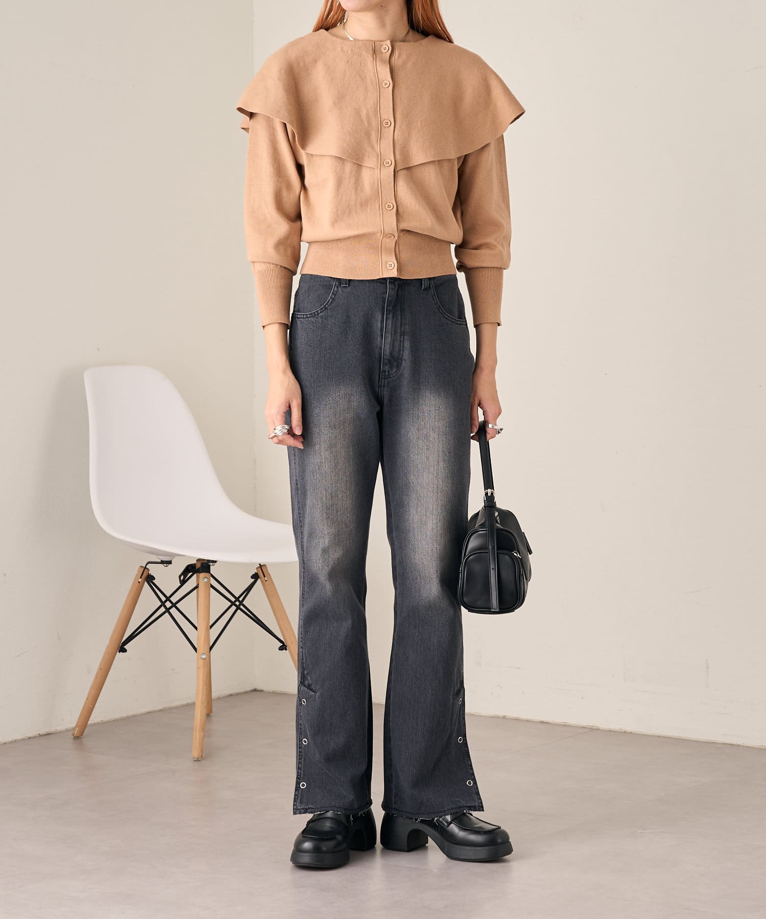 細見え効果◎裾ボタンがポイントになるフレアデニム