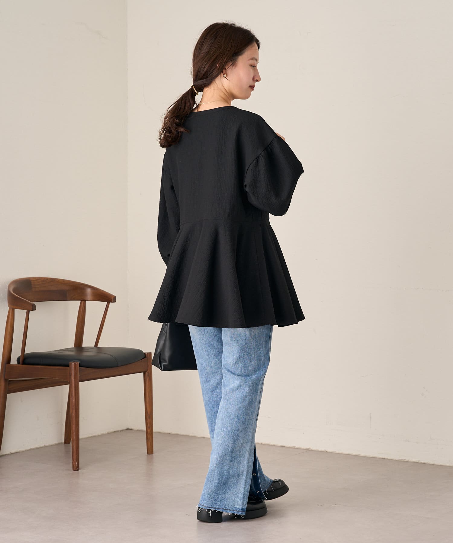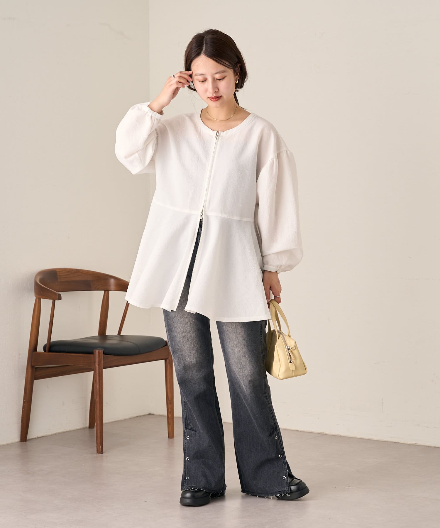 カジュアルなアイテムと合わせてもラフすぎずに着ていただけます。