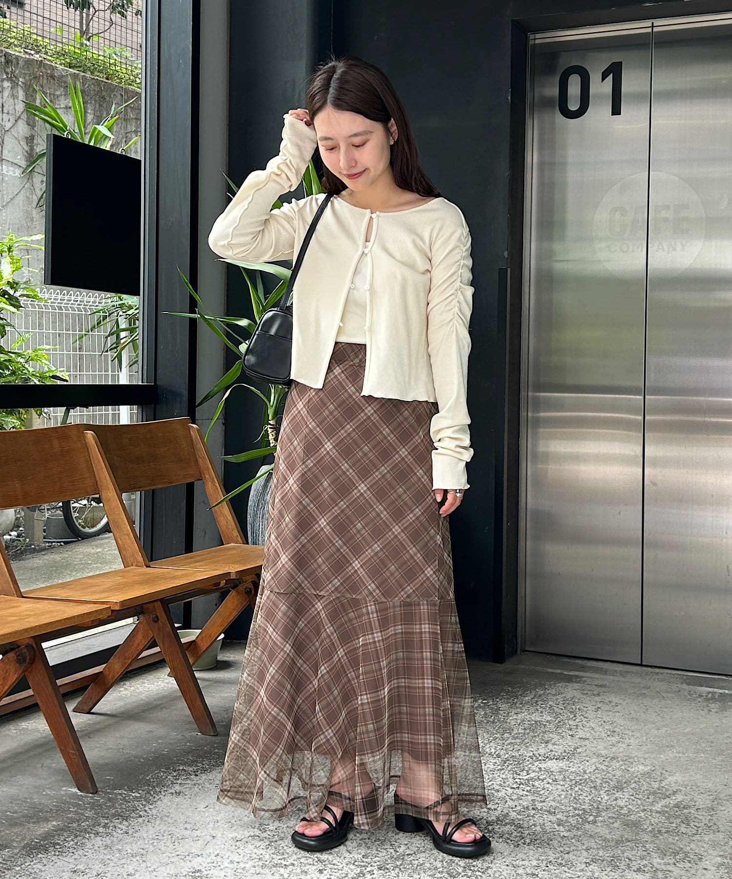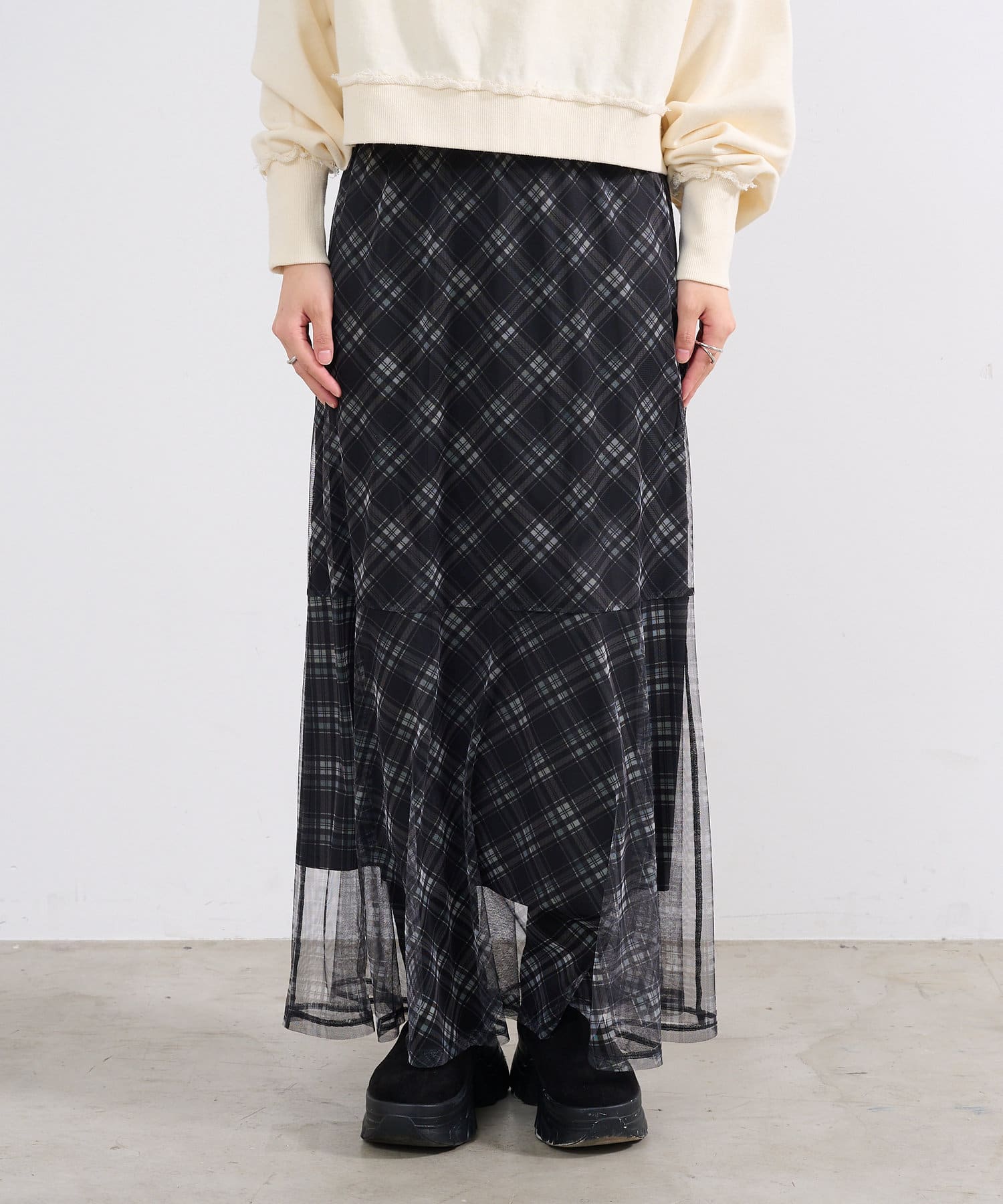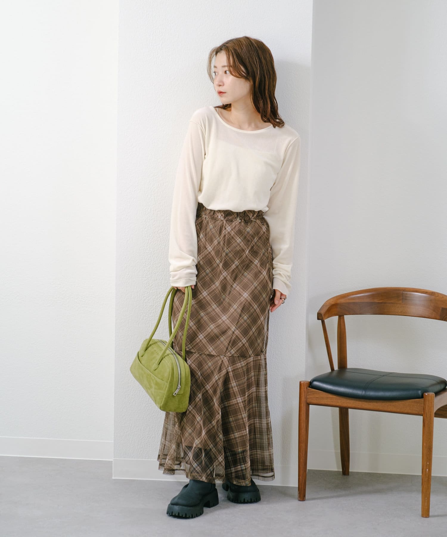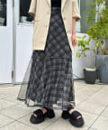 クラシックなチェック柄とシアー素材が魅力のスカート。