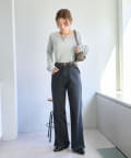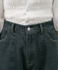 タックのディテールがウエスト部分を立体的に見せ、トップスをインして着ると腰回りがスッキリとした印象に仕上がります。