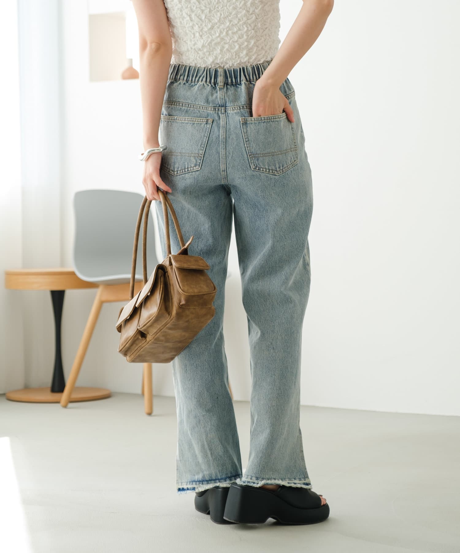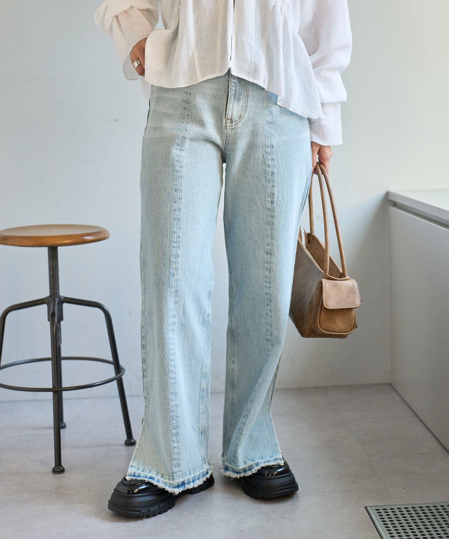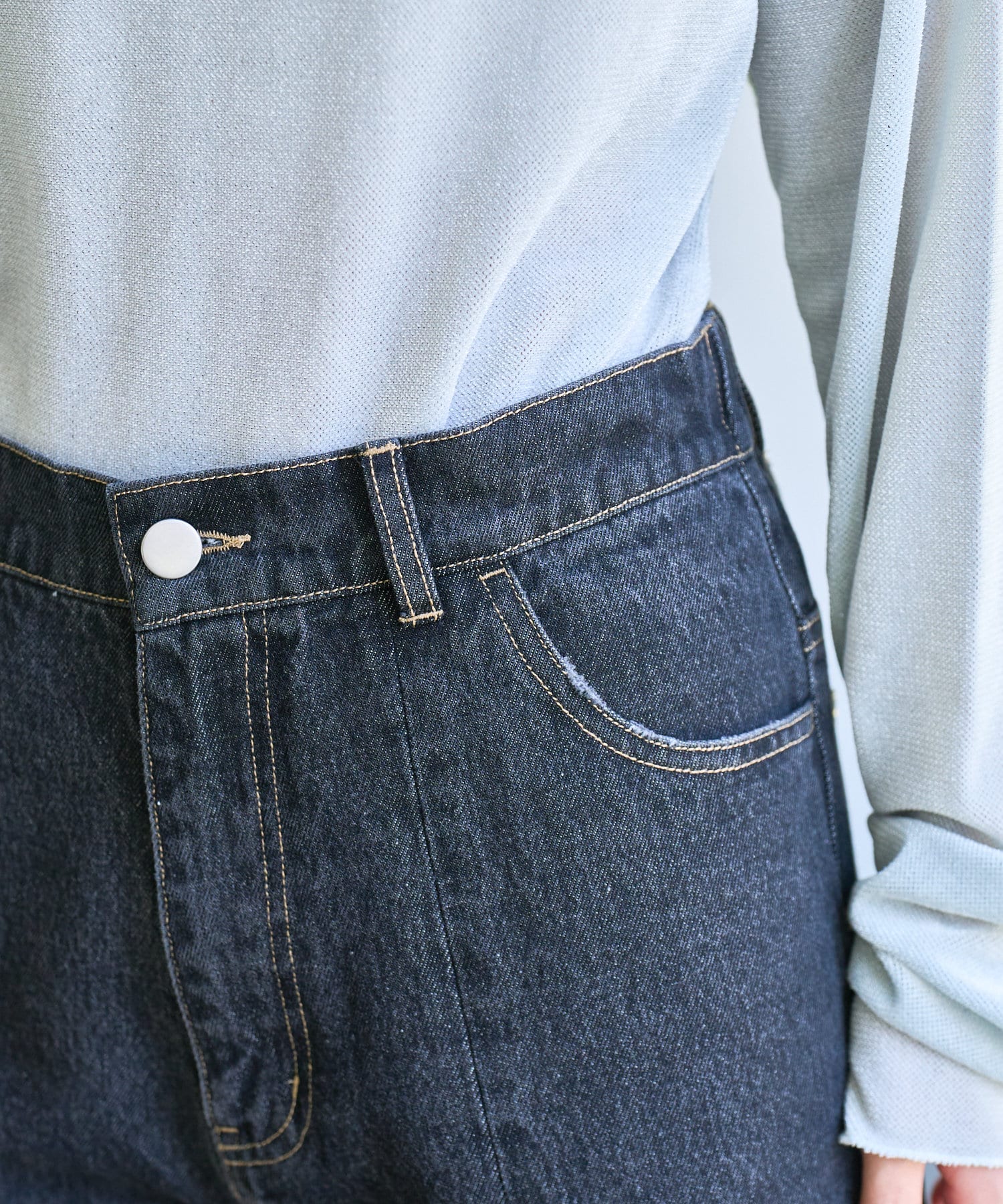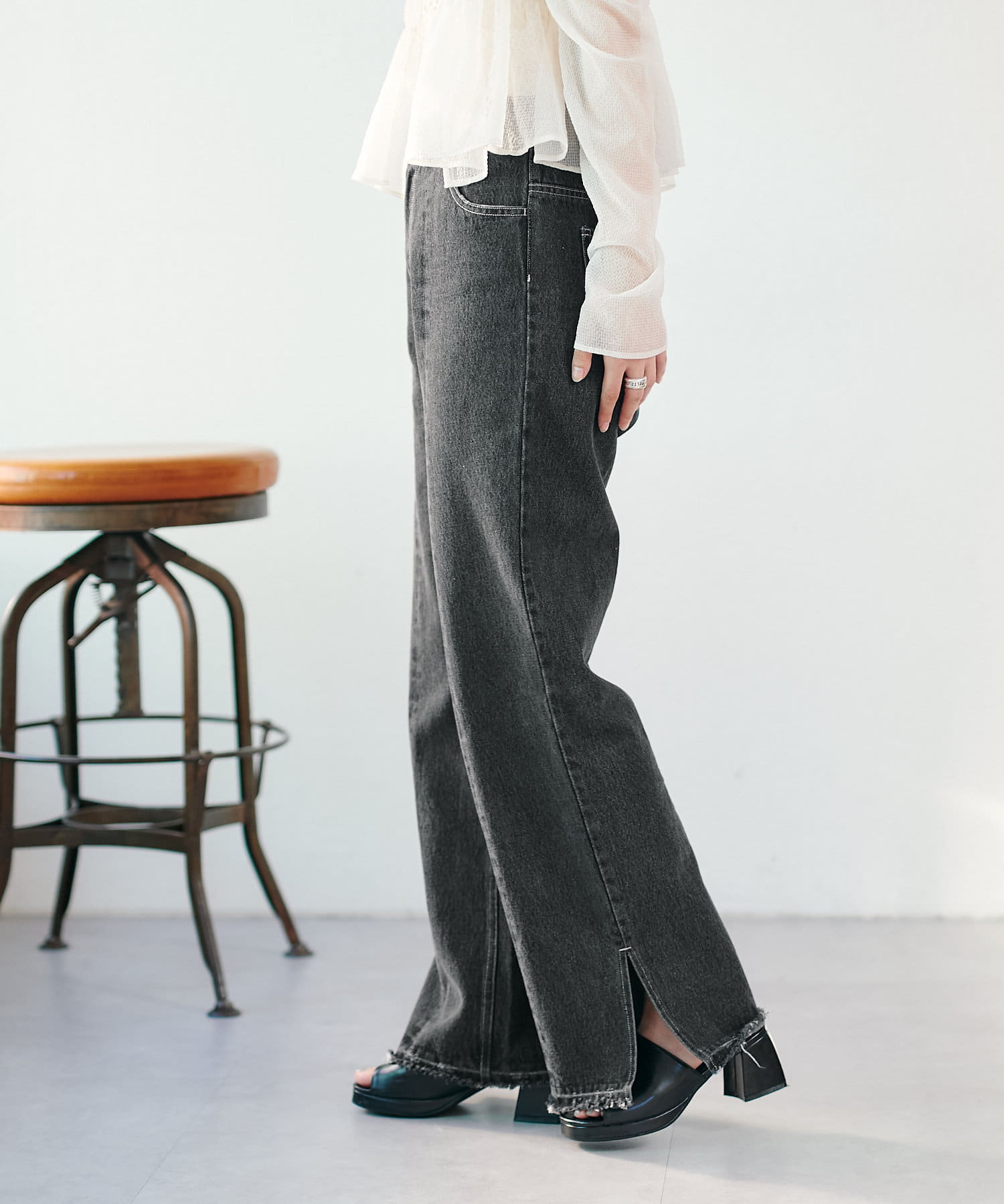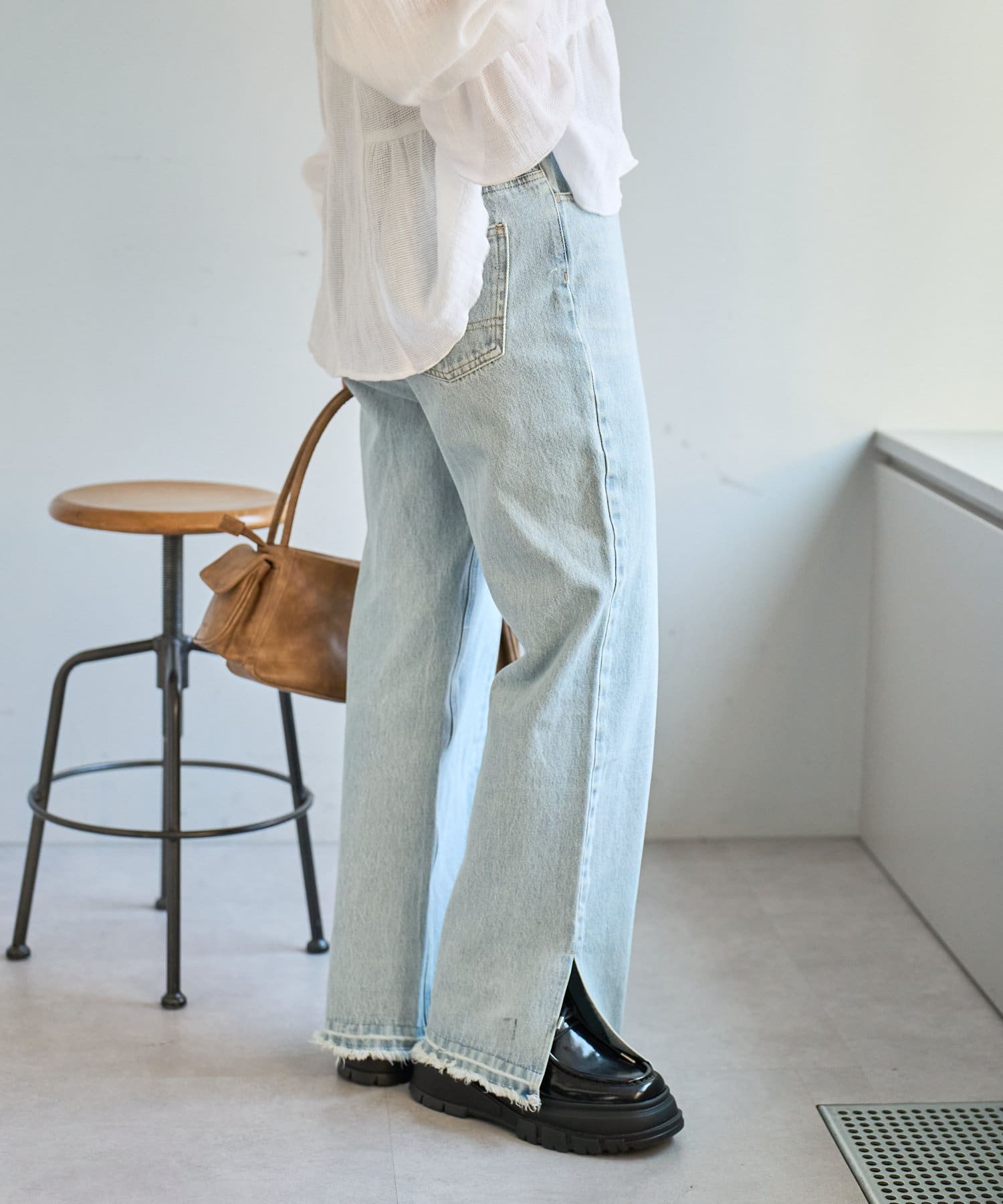 美しいシルエットが際立つウォッシュドストレートデニム。