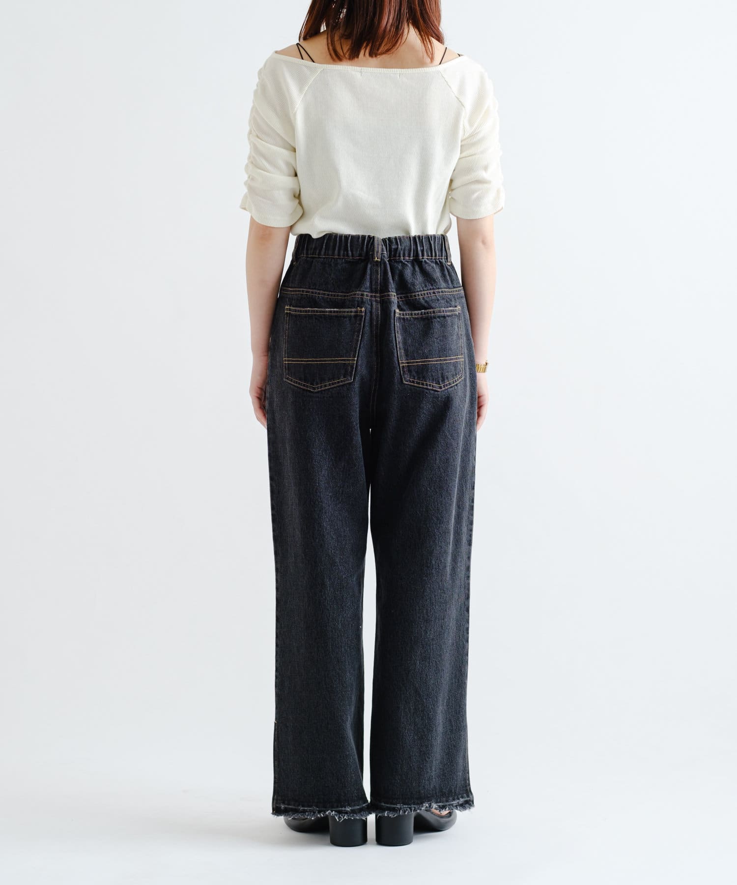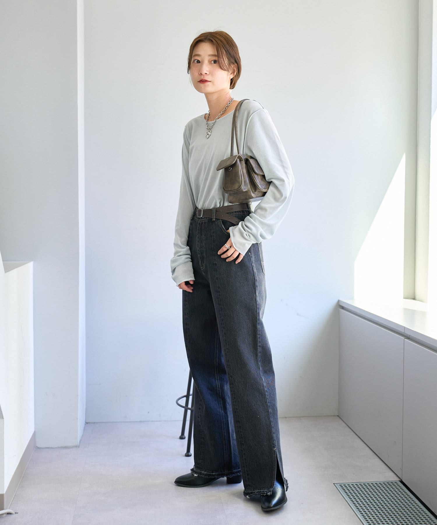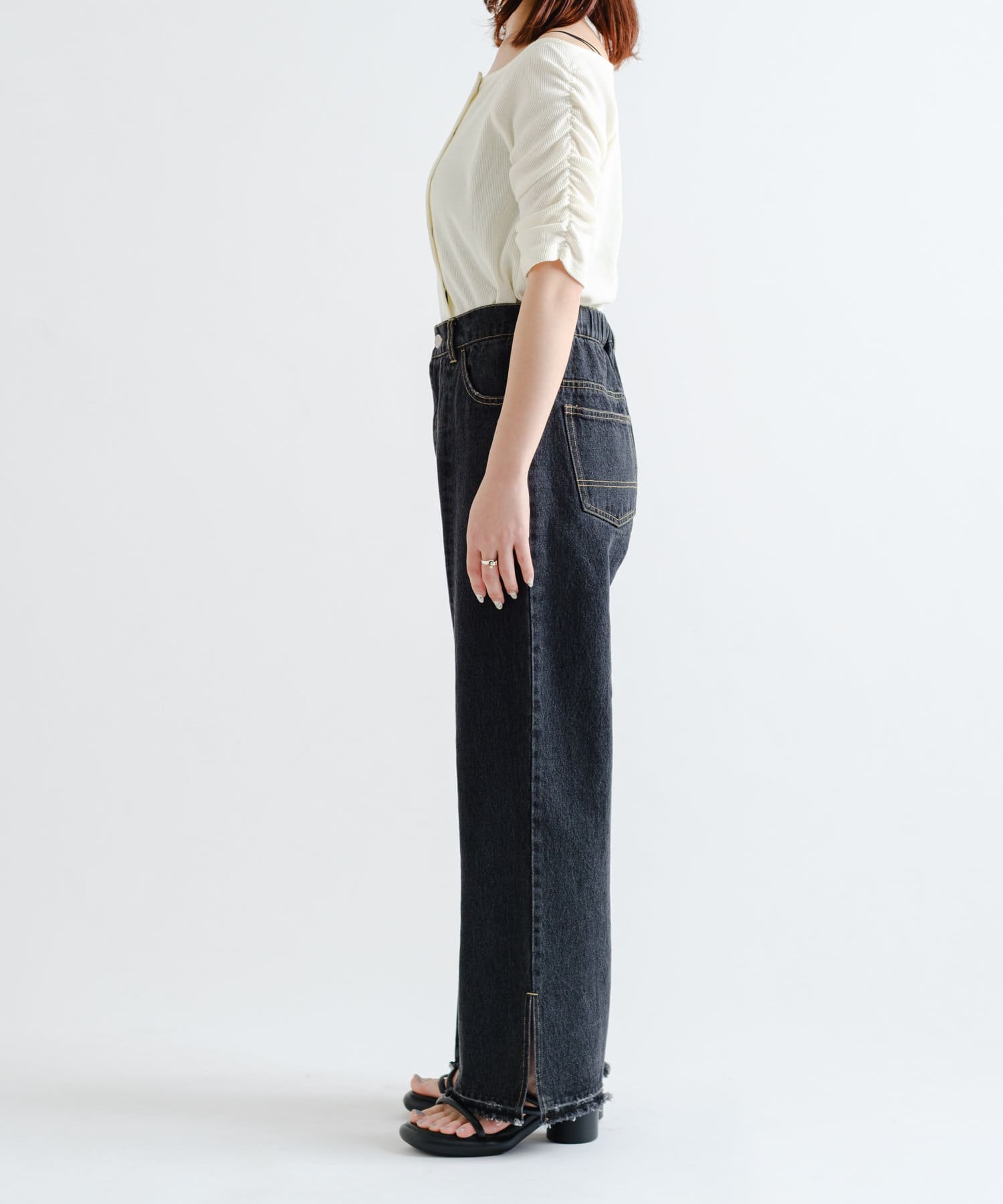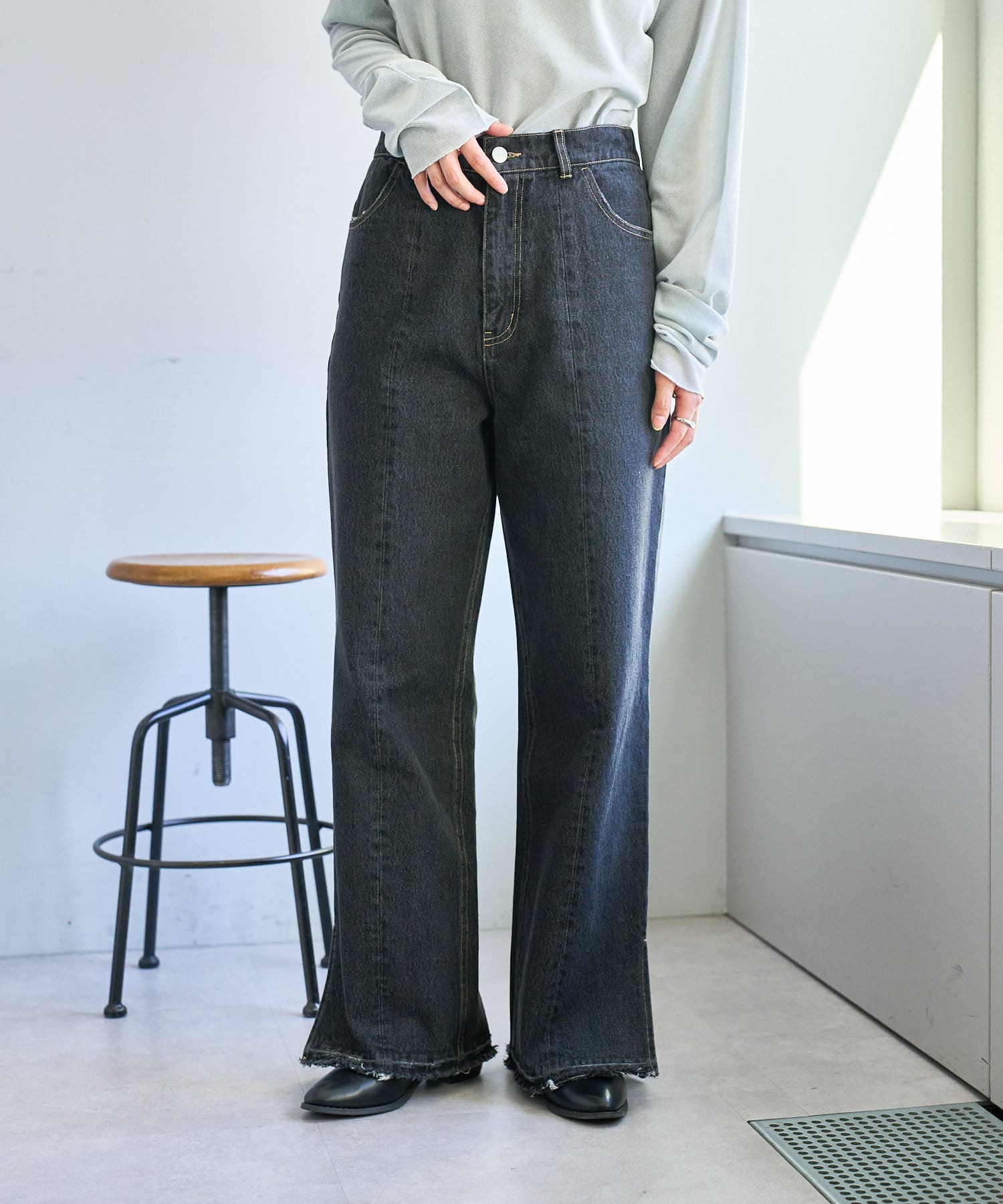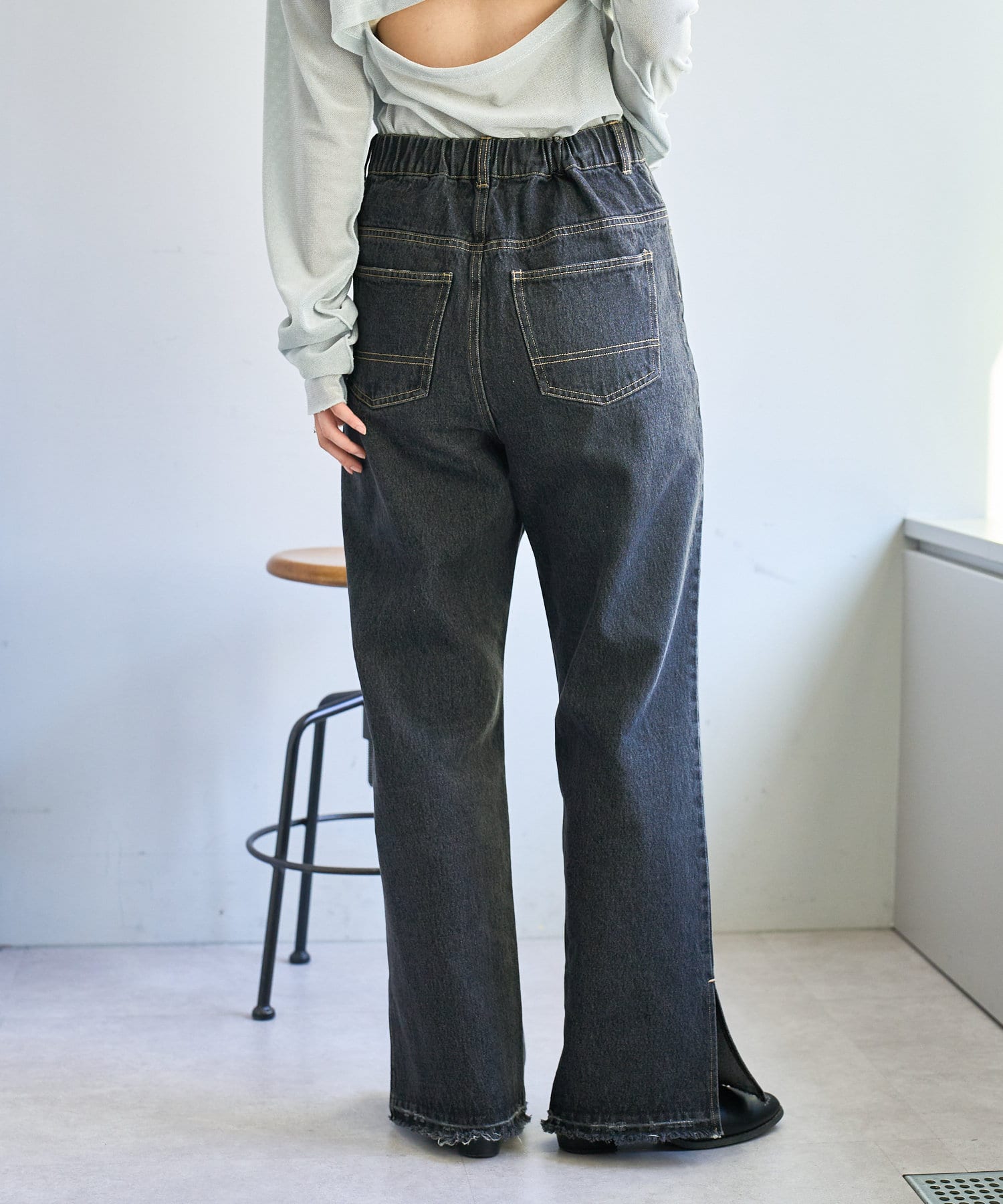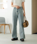 美しいシルエットが際立つウォッシュドストレートデニム。