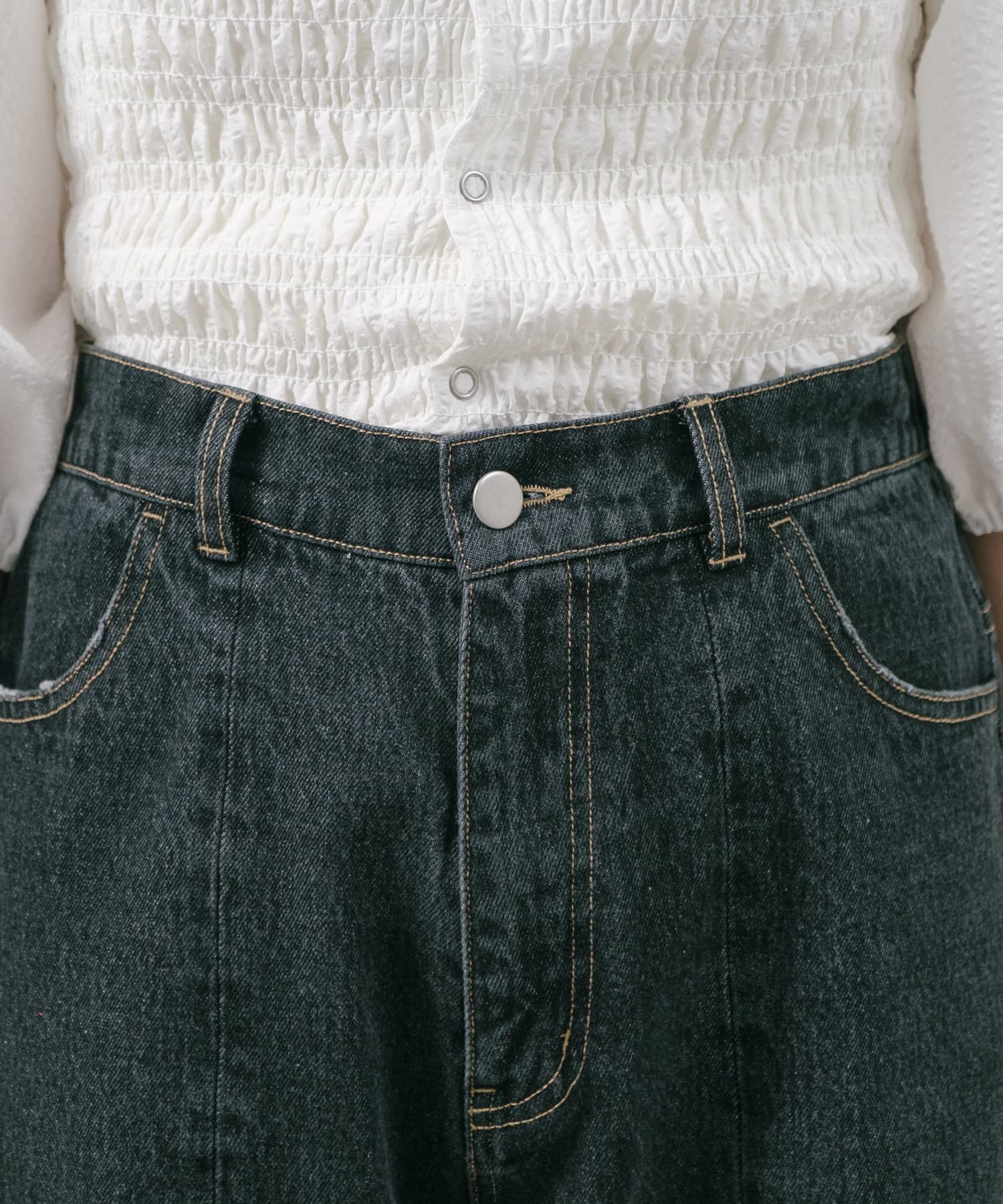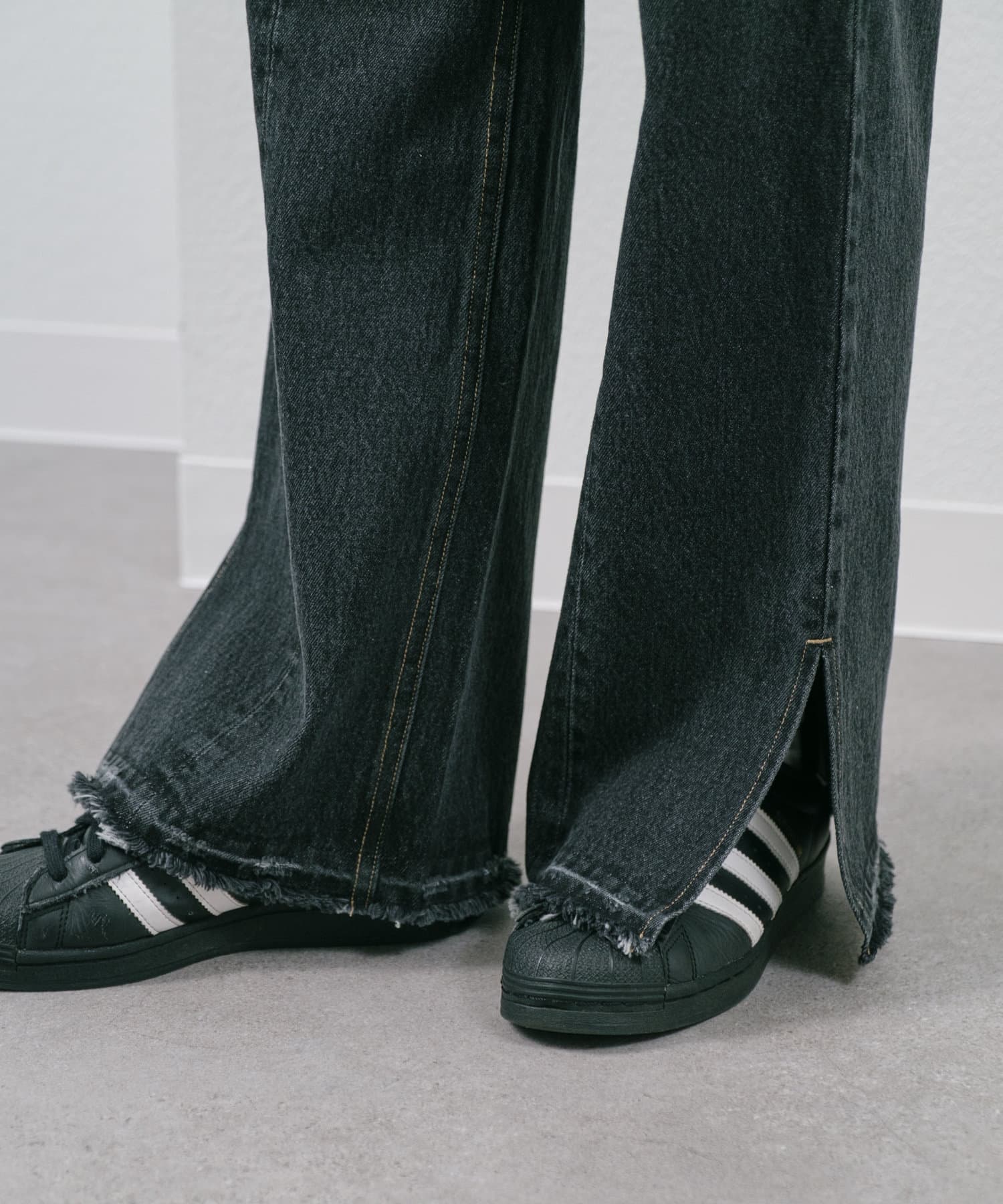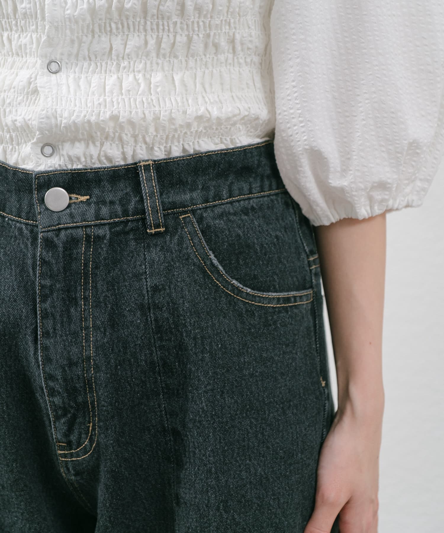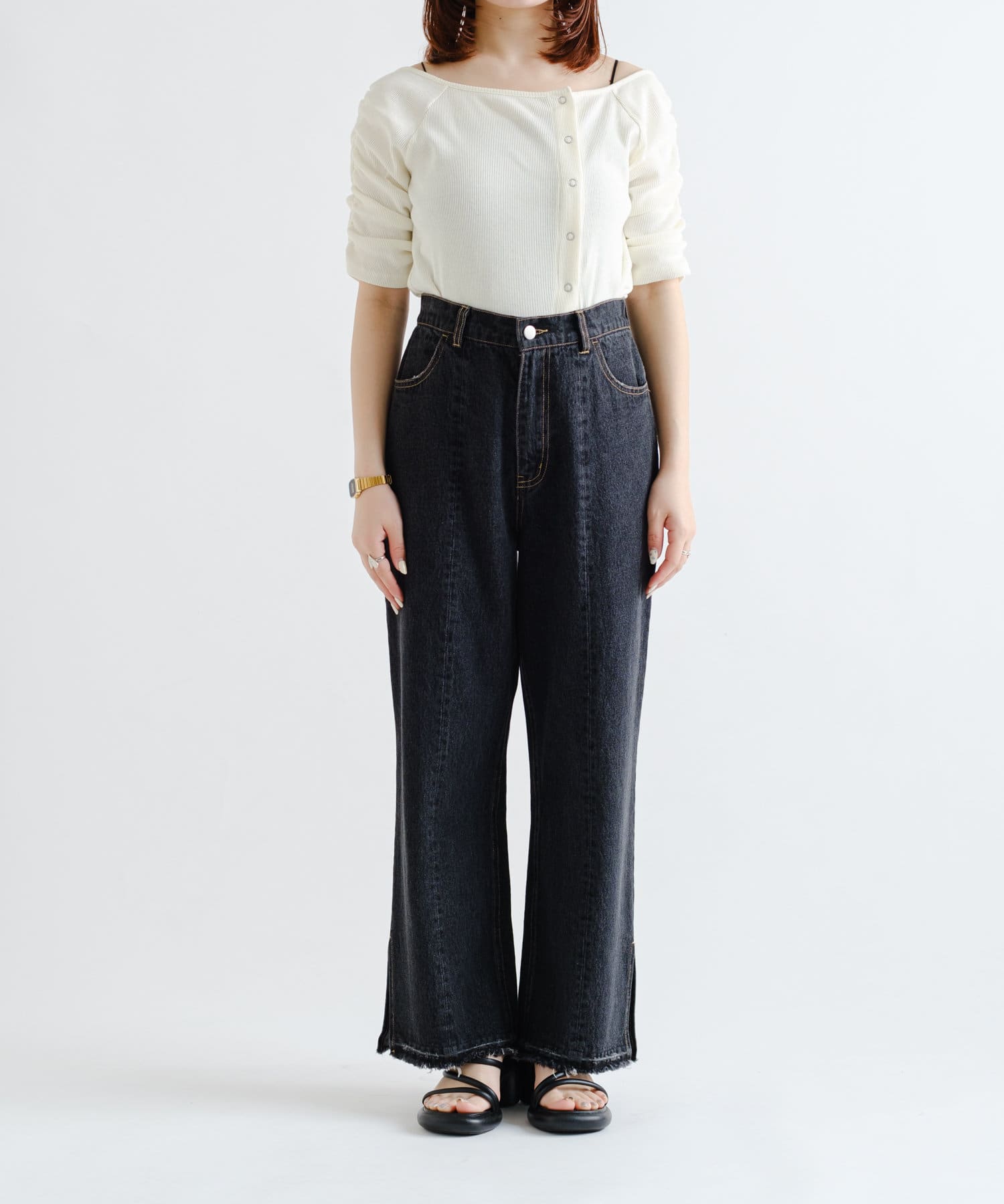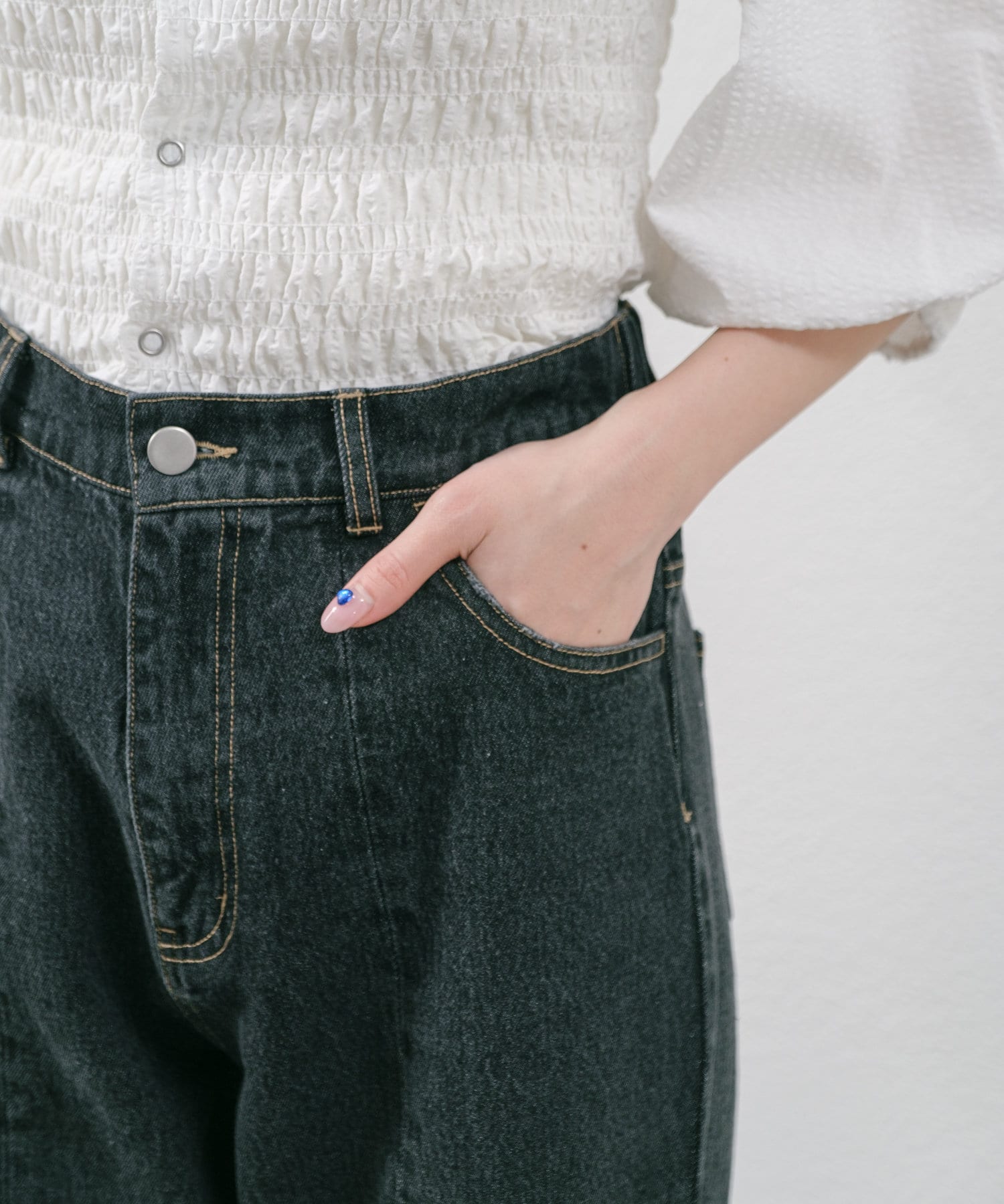 美しいシルエットが際立つウォッシュドストレートデニム。