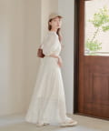背中の開きやリボン結びが、後姿まで抜かりなく可愛いデザイン。