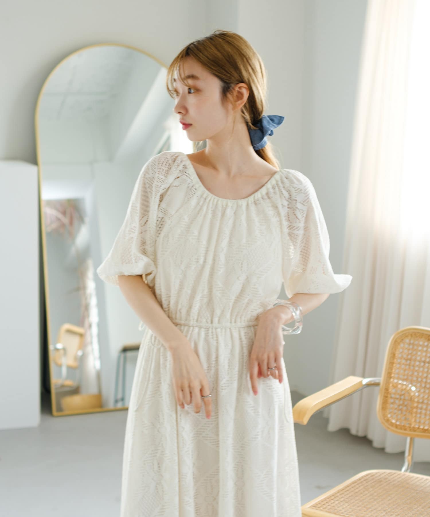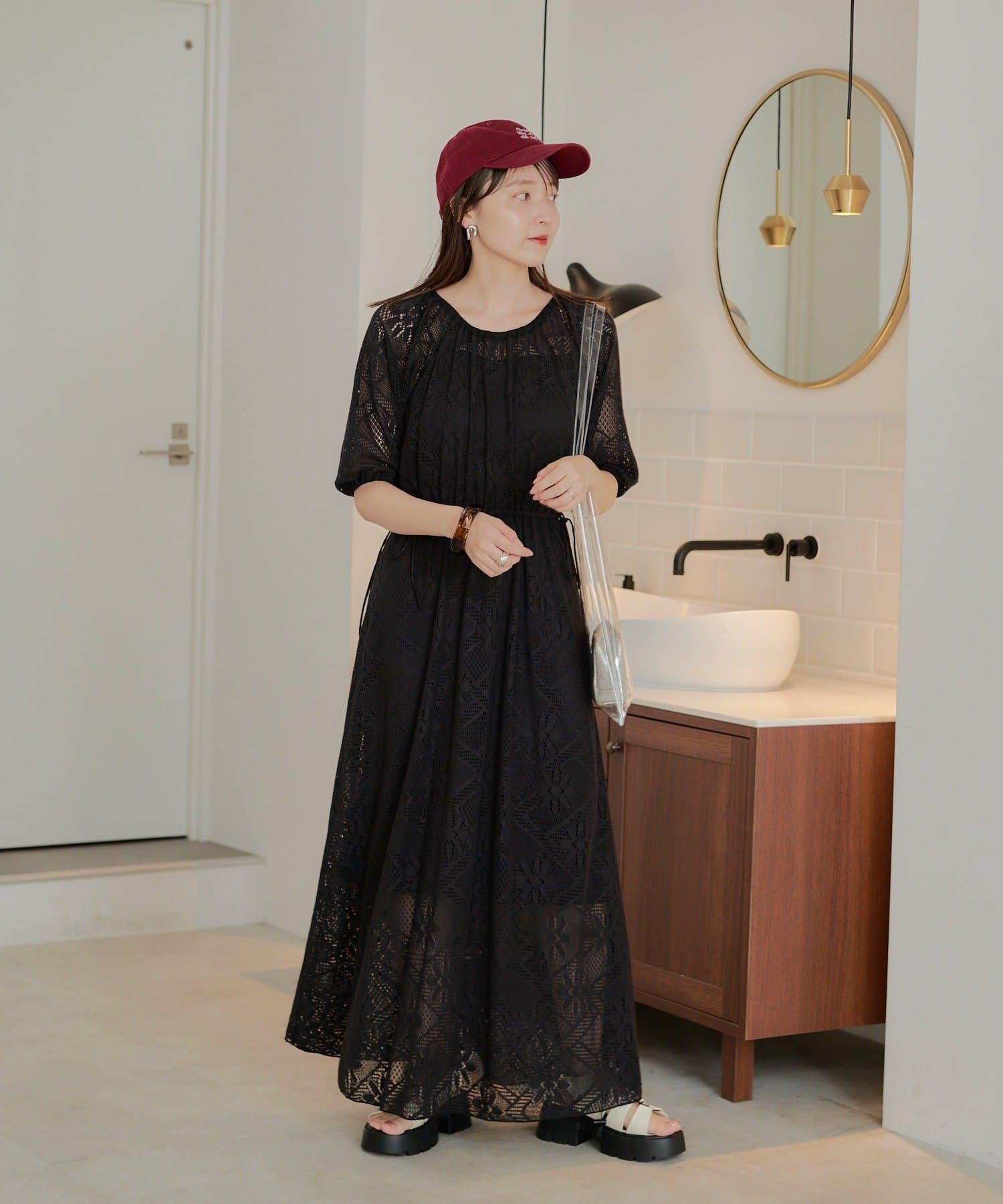 【WEB限定/2サイズ展開】カットレースギャザーワンピース