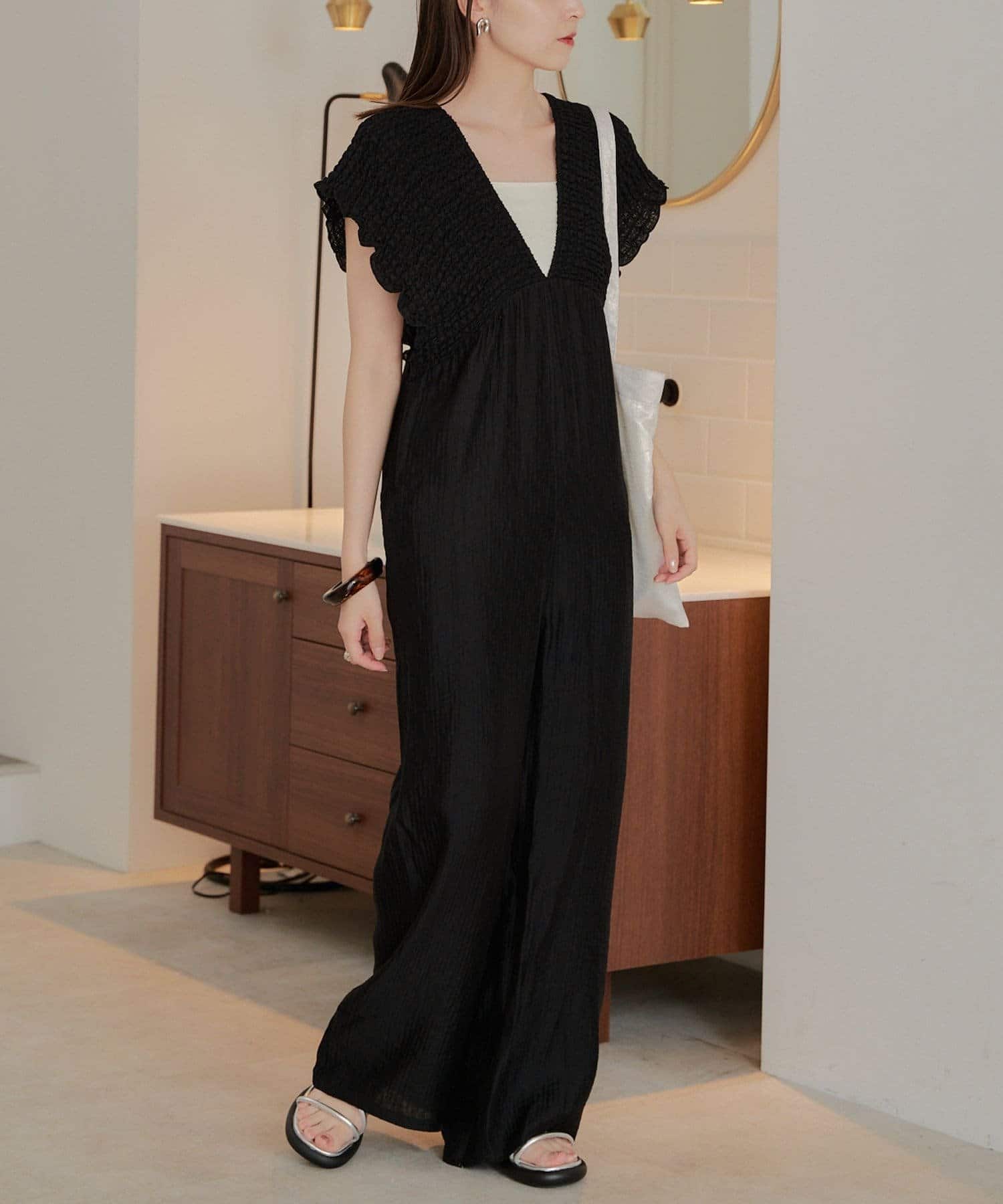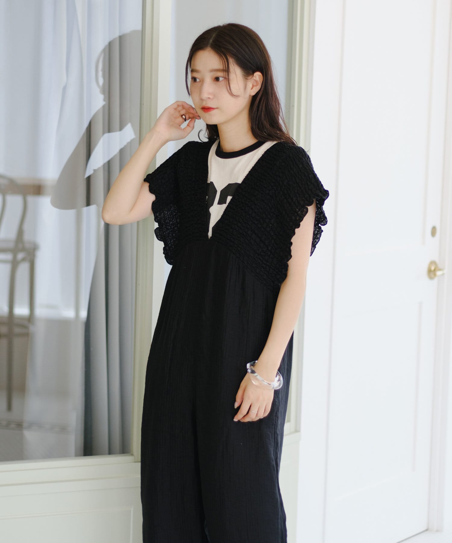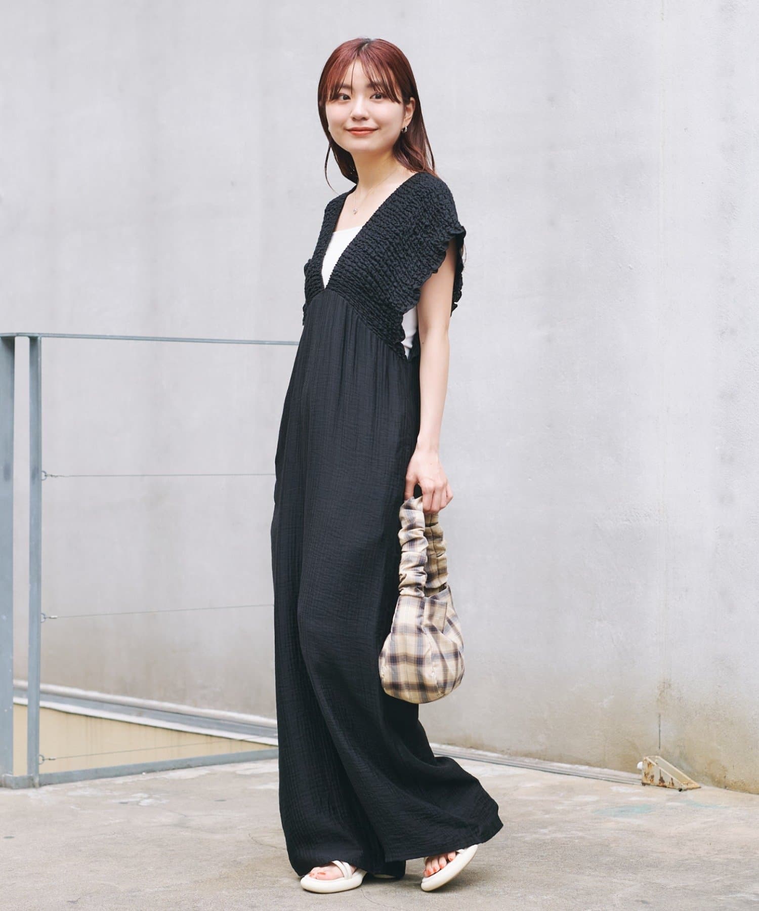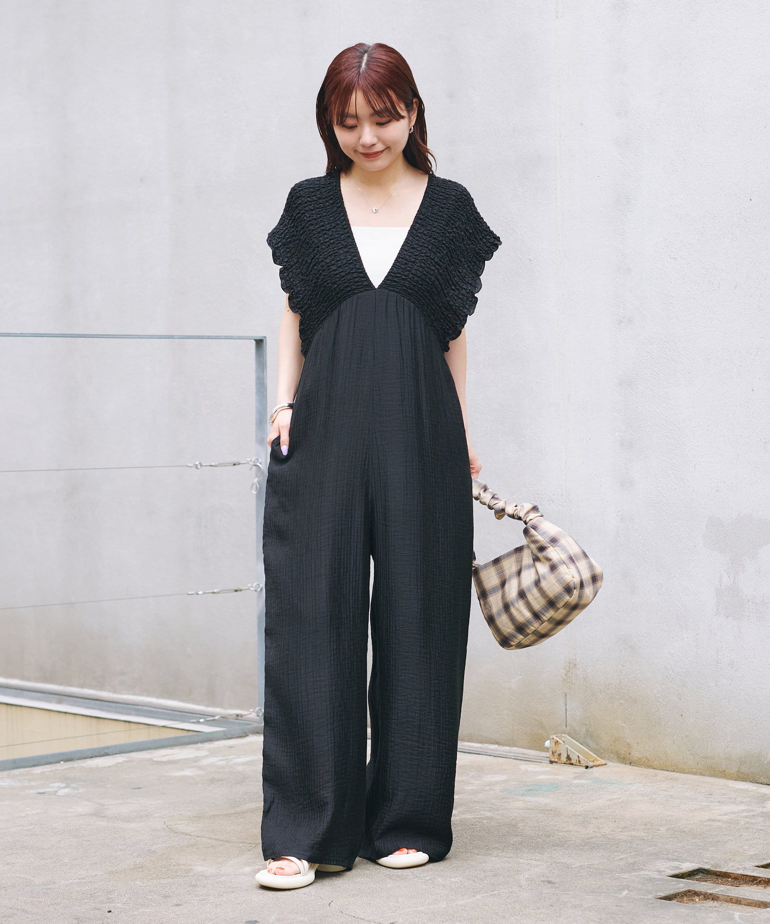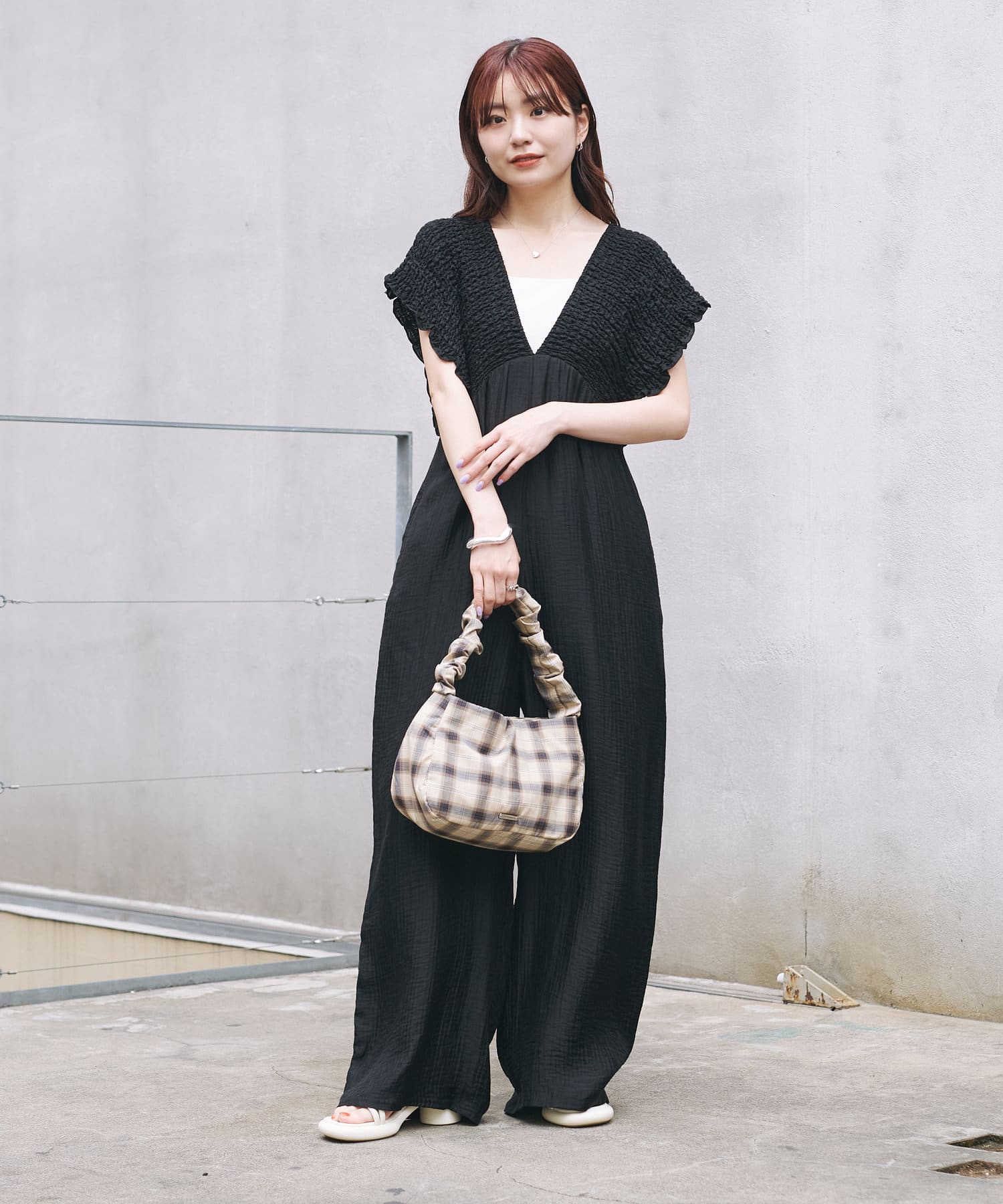 【2サイズ展開/低身長サイズ】ギャザーオールインワン