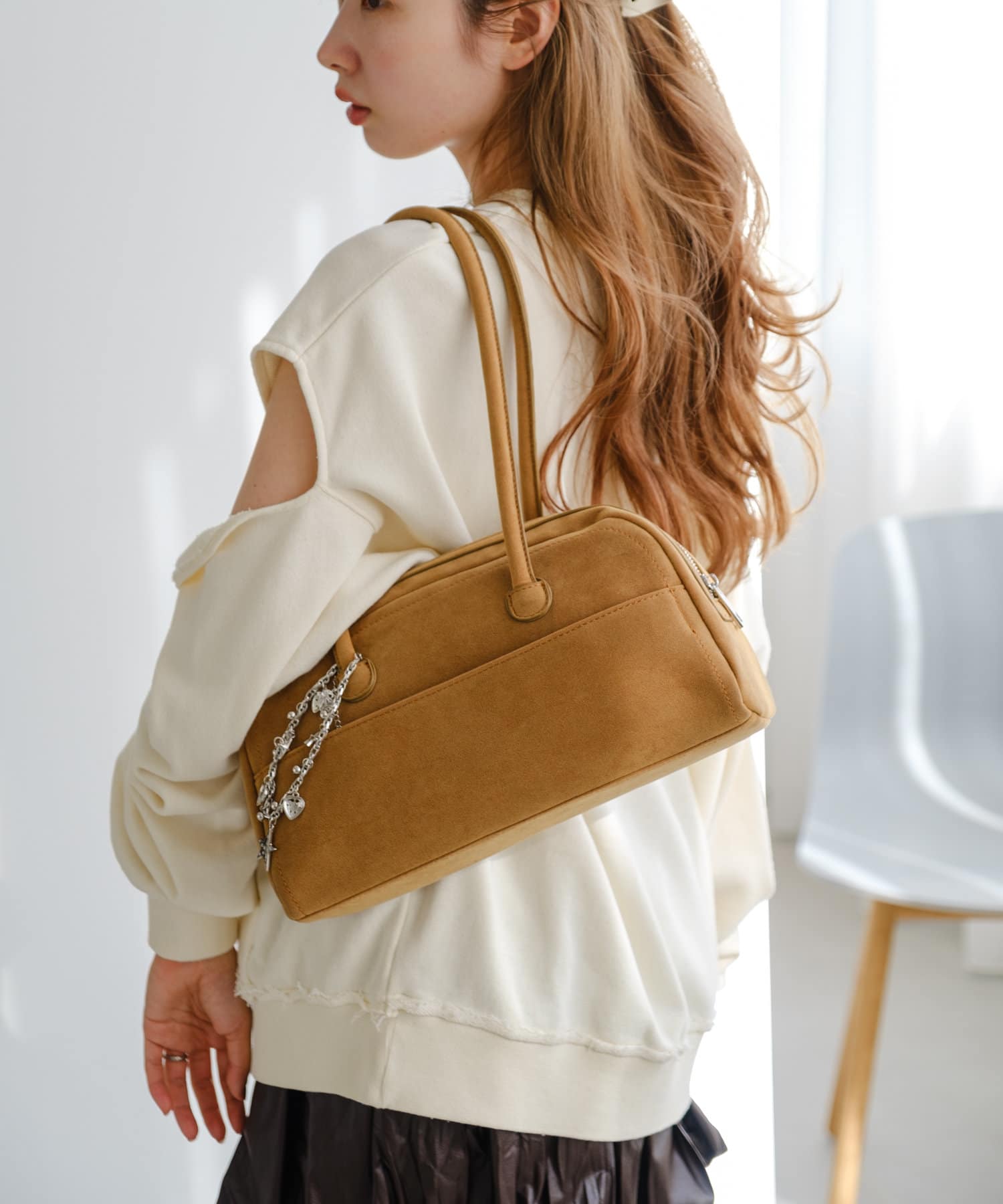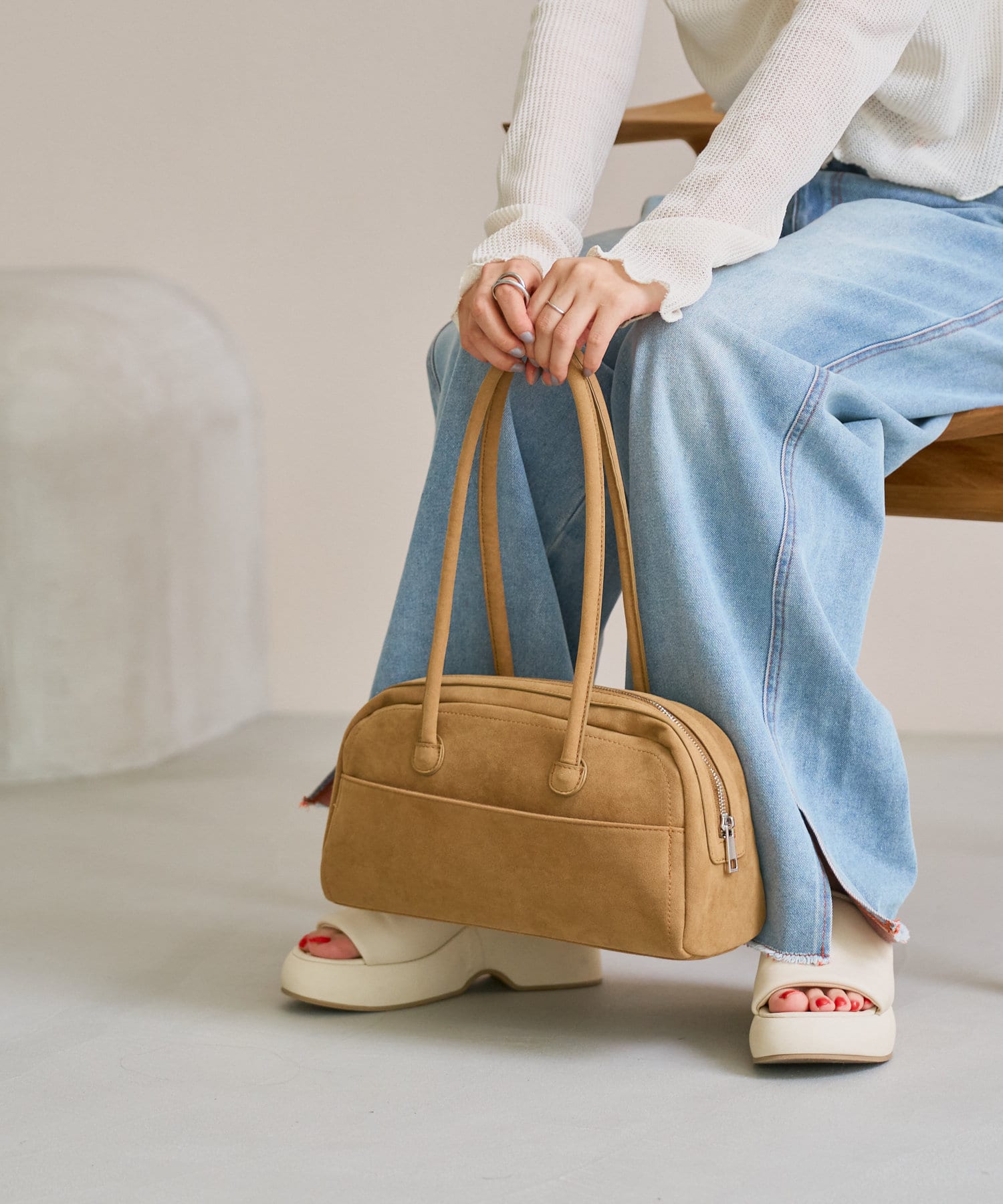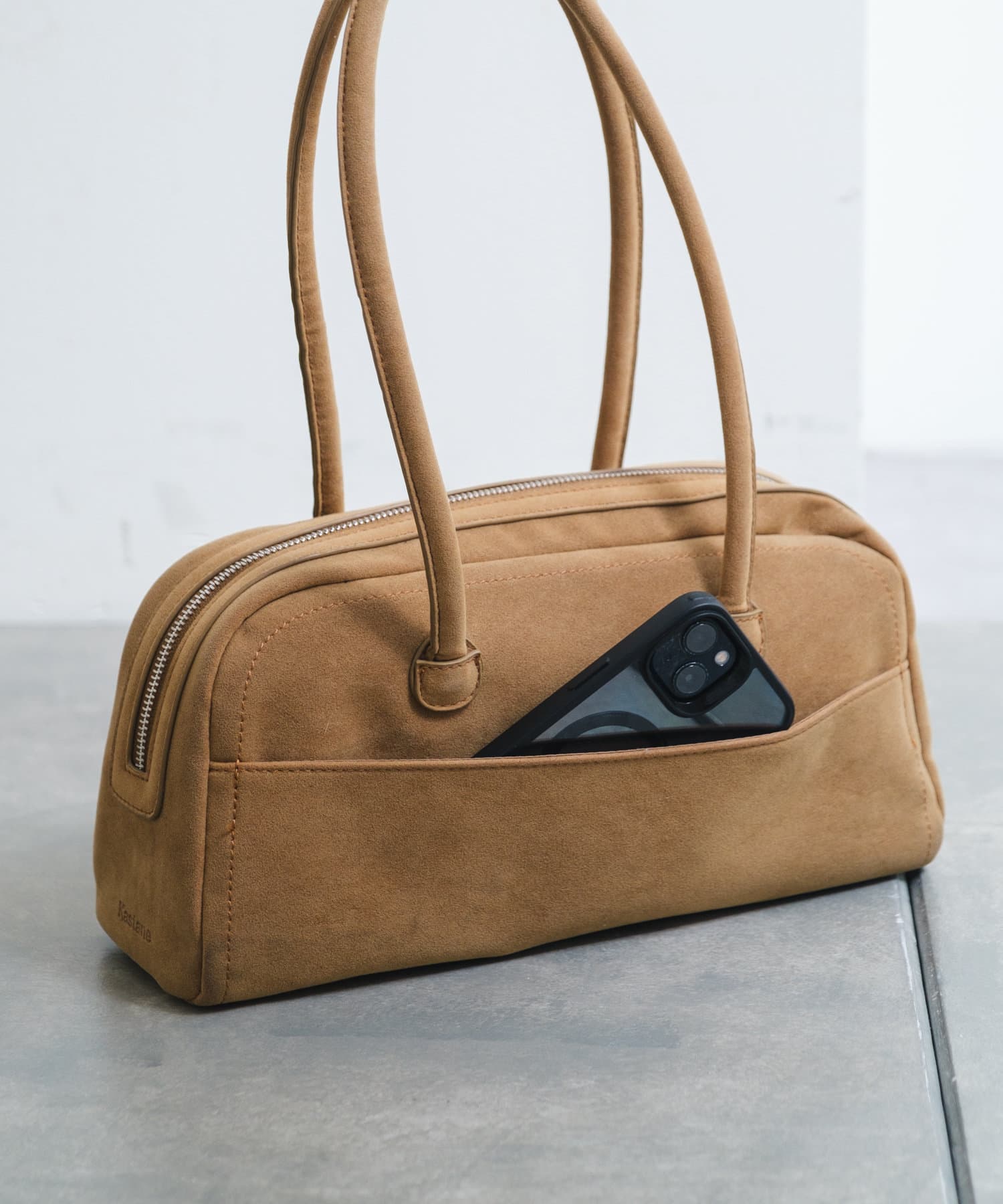 上品なスエード調がシンプルながらも温かみのあるボストンバッグ。