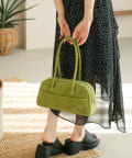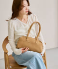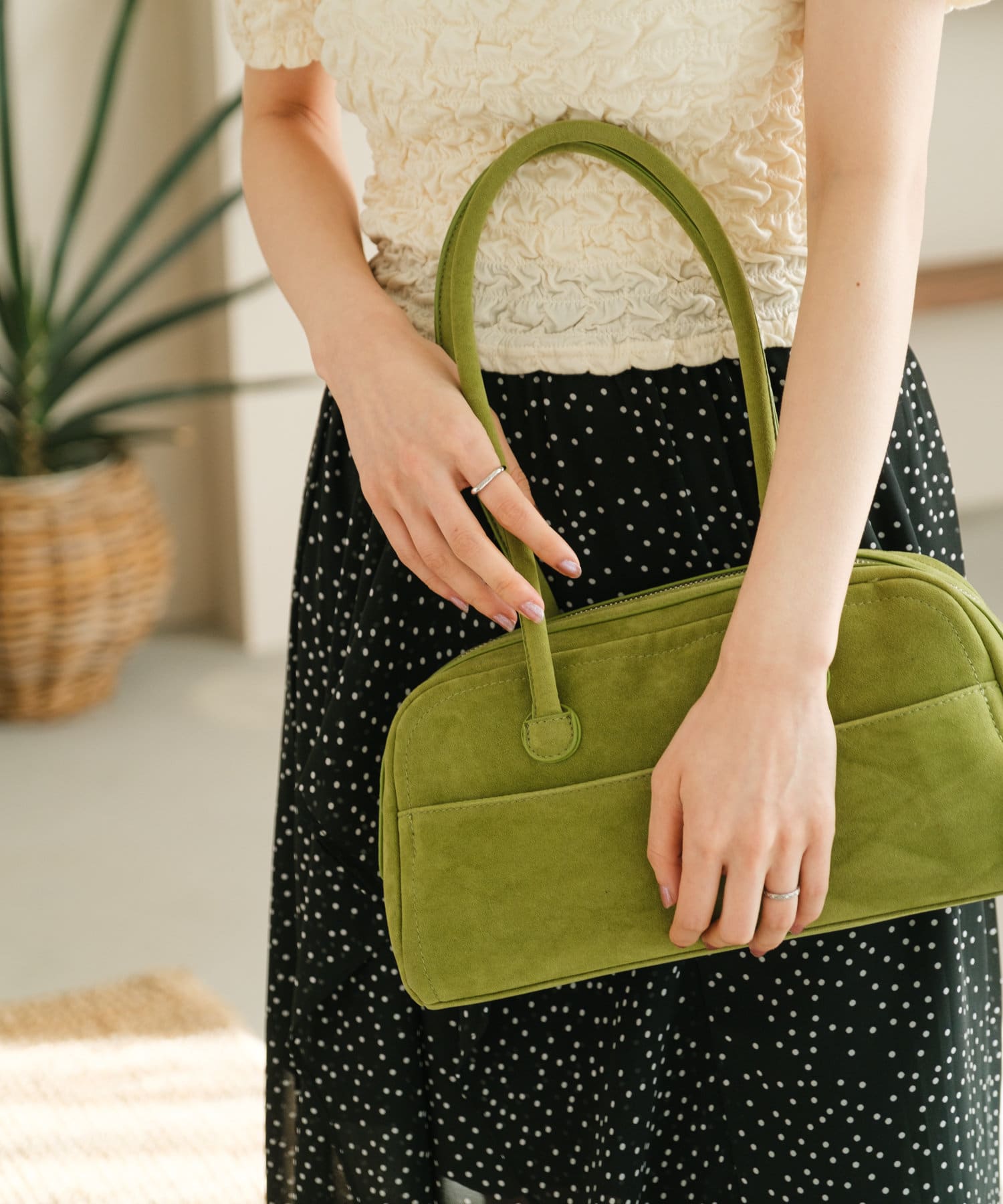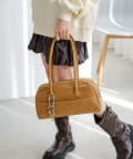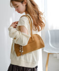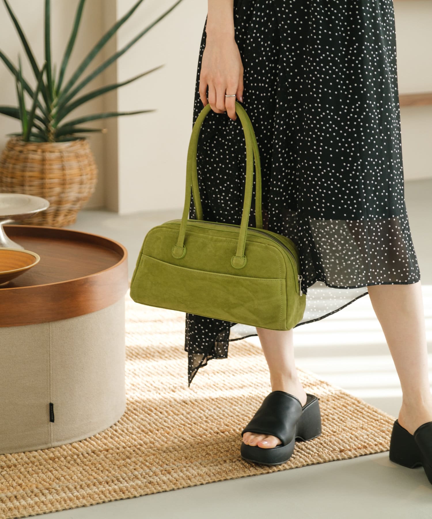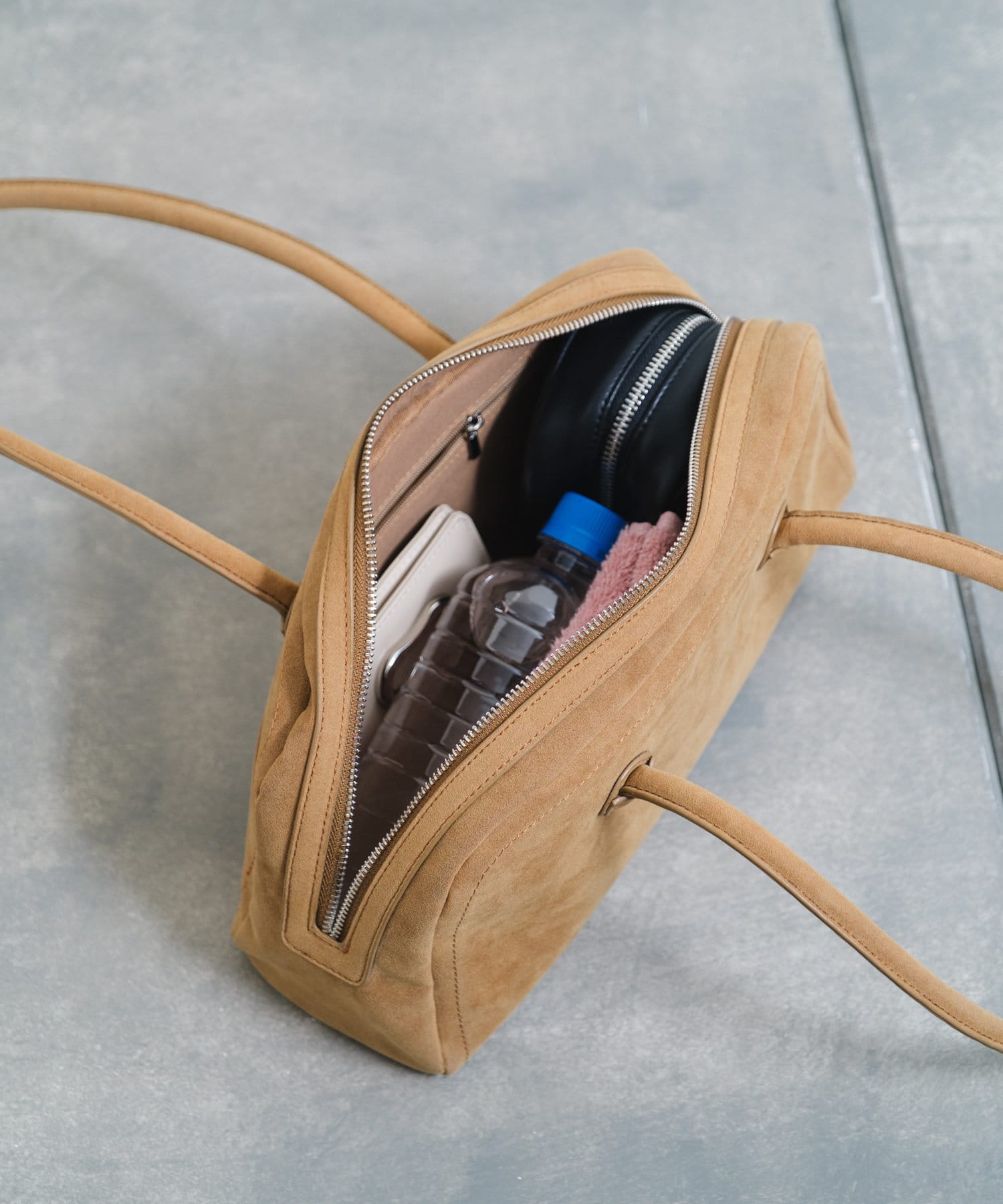 上品なスエード調がシンプルながらも温かみのあるボストンバッグ。