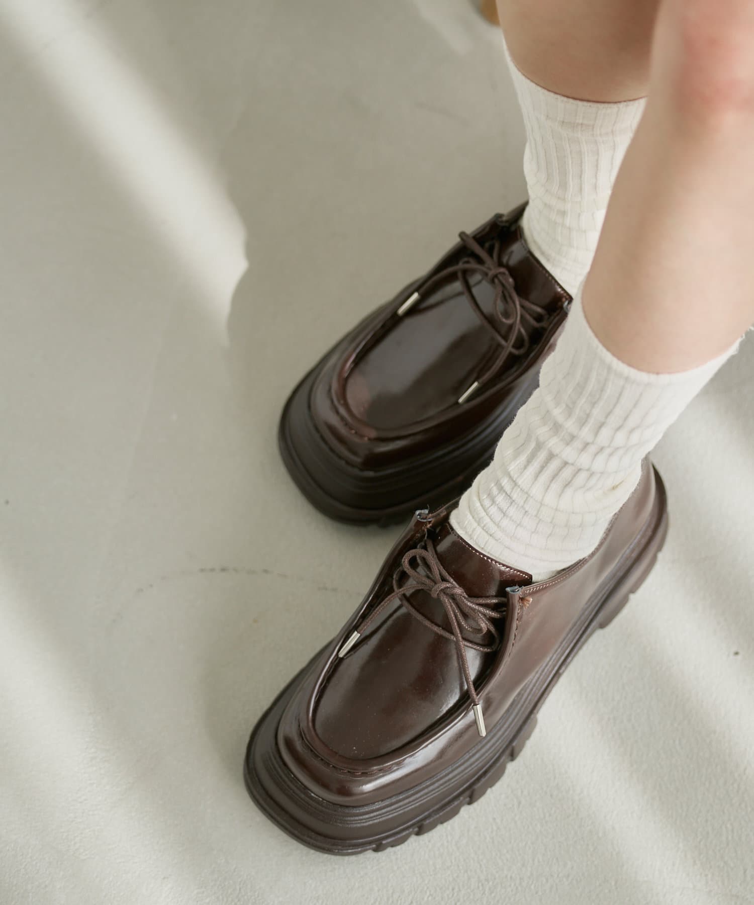 ボリューム感のある厚底デザインが魅力のダッドローファー