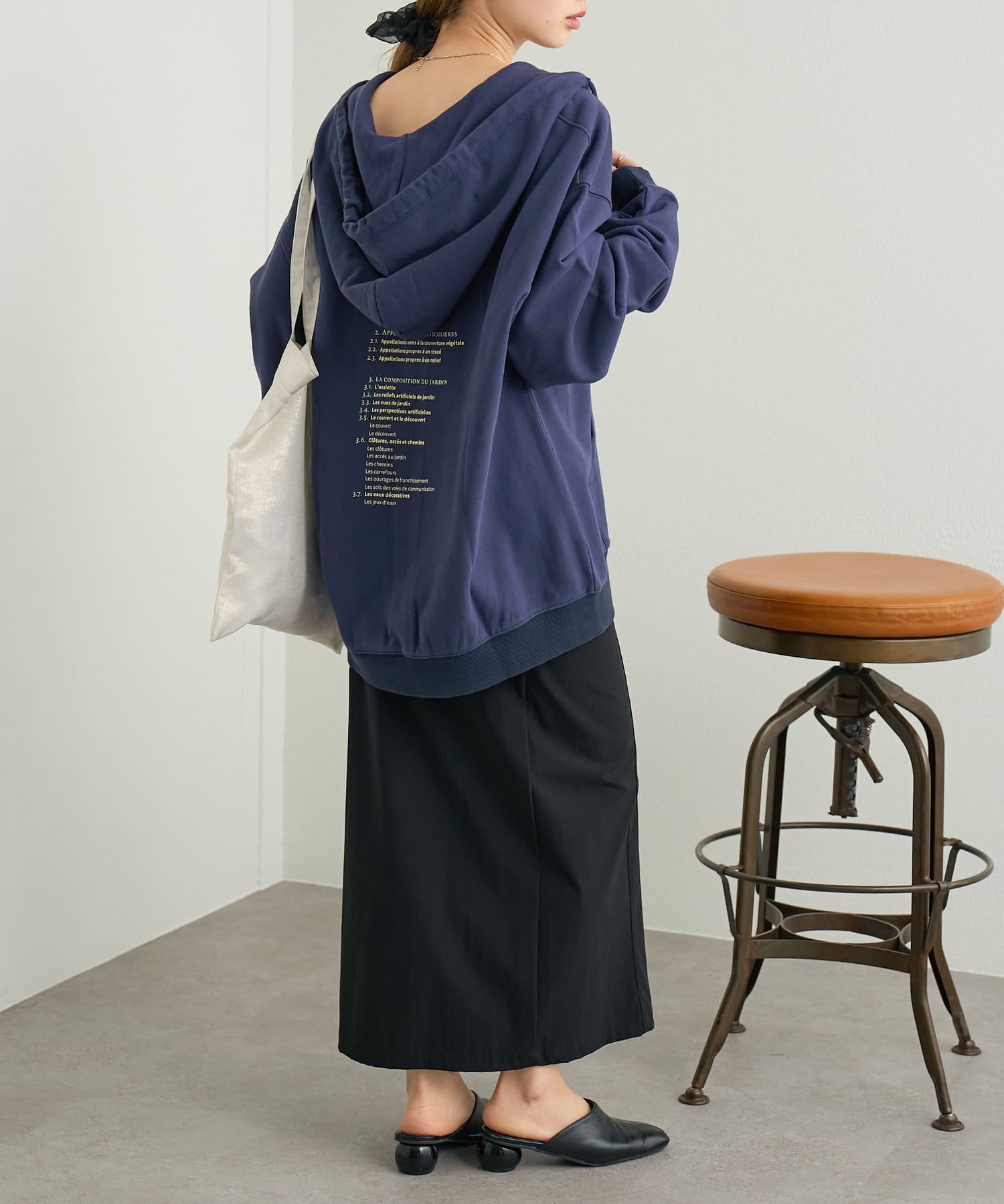 後ろのロゴは大きすぎず、パーカーはゆったりとしていてとても可愛いです。