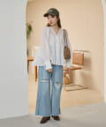 デニムパンツと合わせれば、リラックス感のあるカジュアルコーデに。