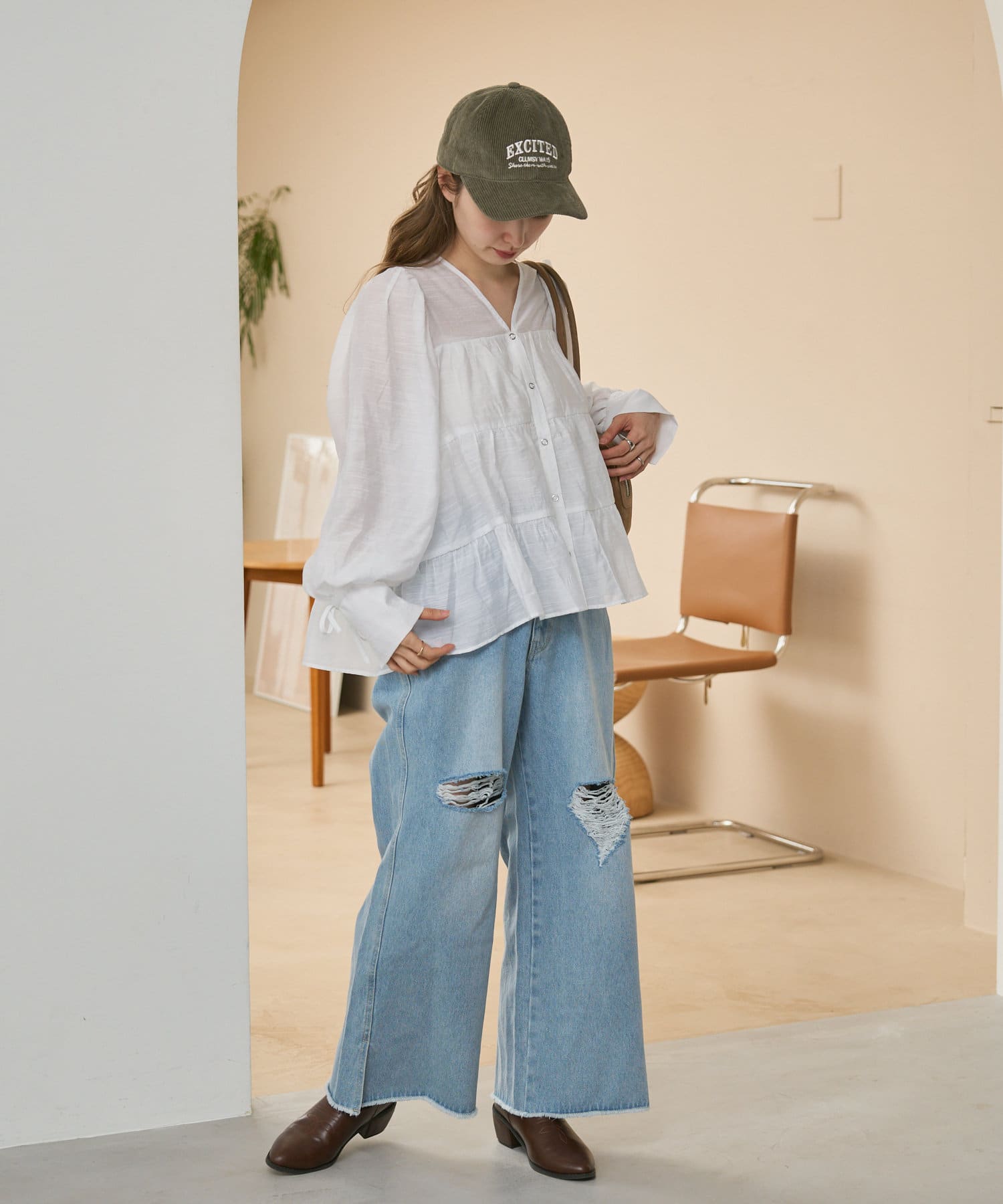 あえてルーズなボトムスを選ぶことで、抜け感のある着こなしが完成します。