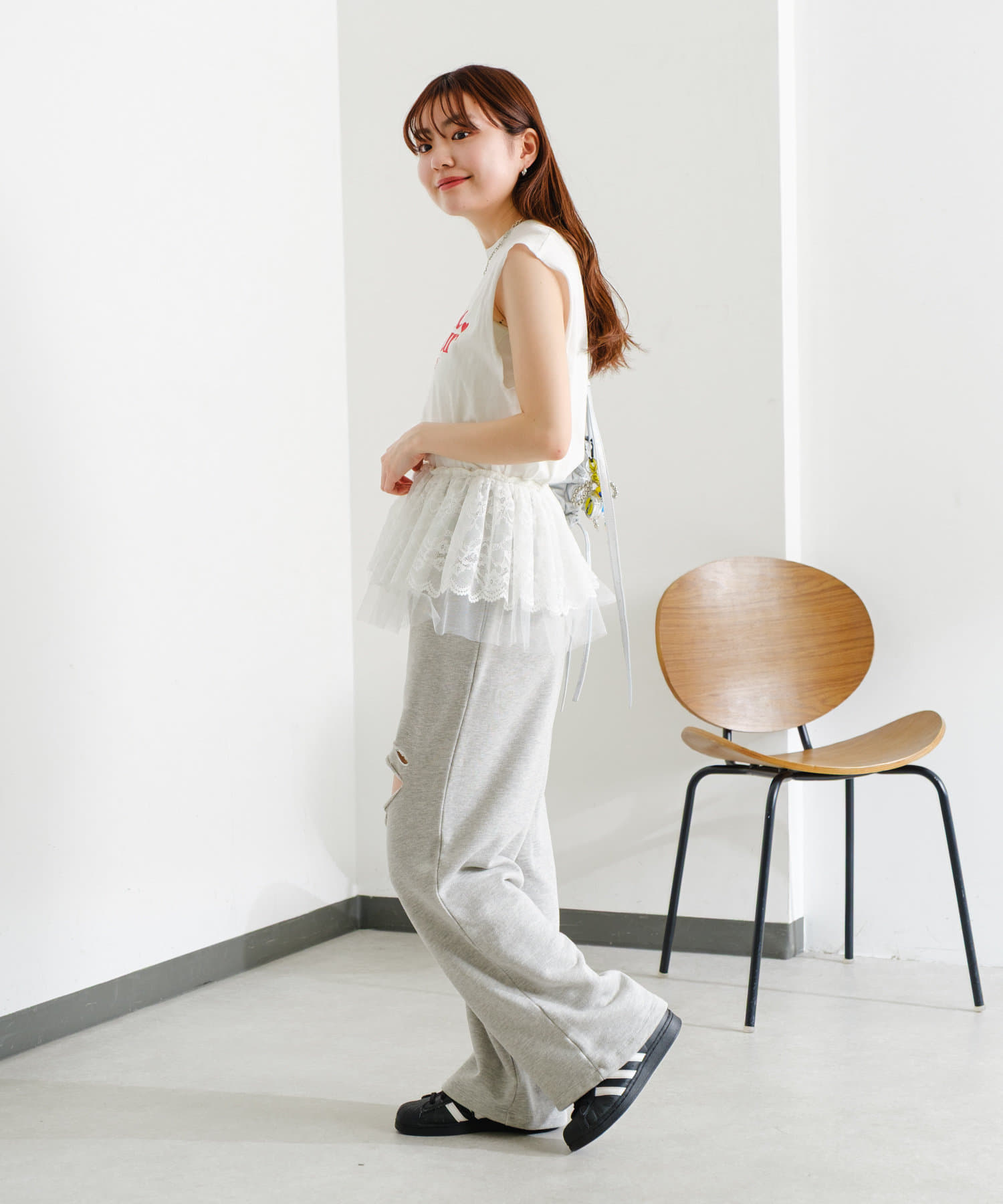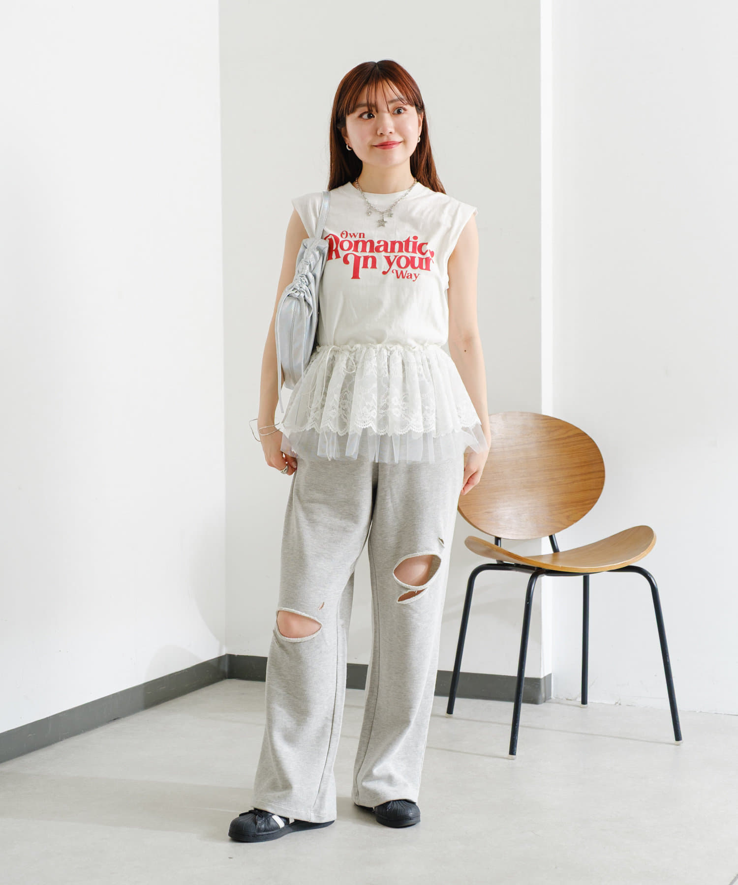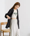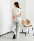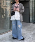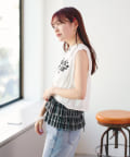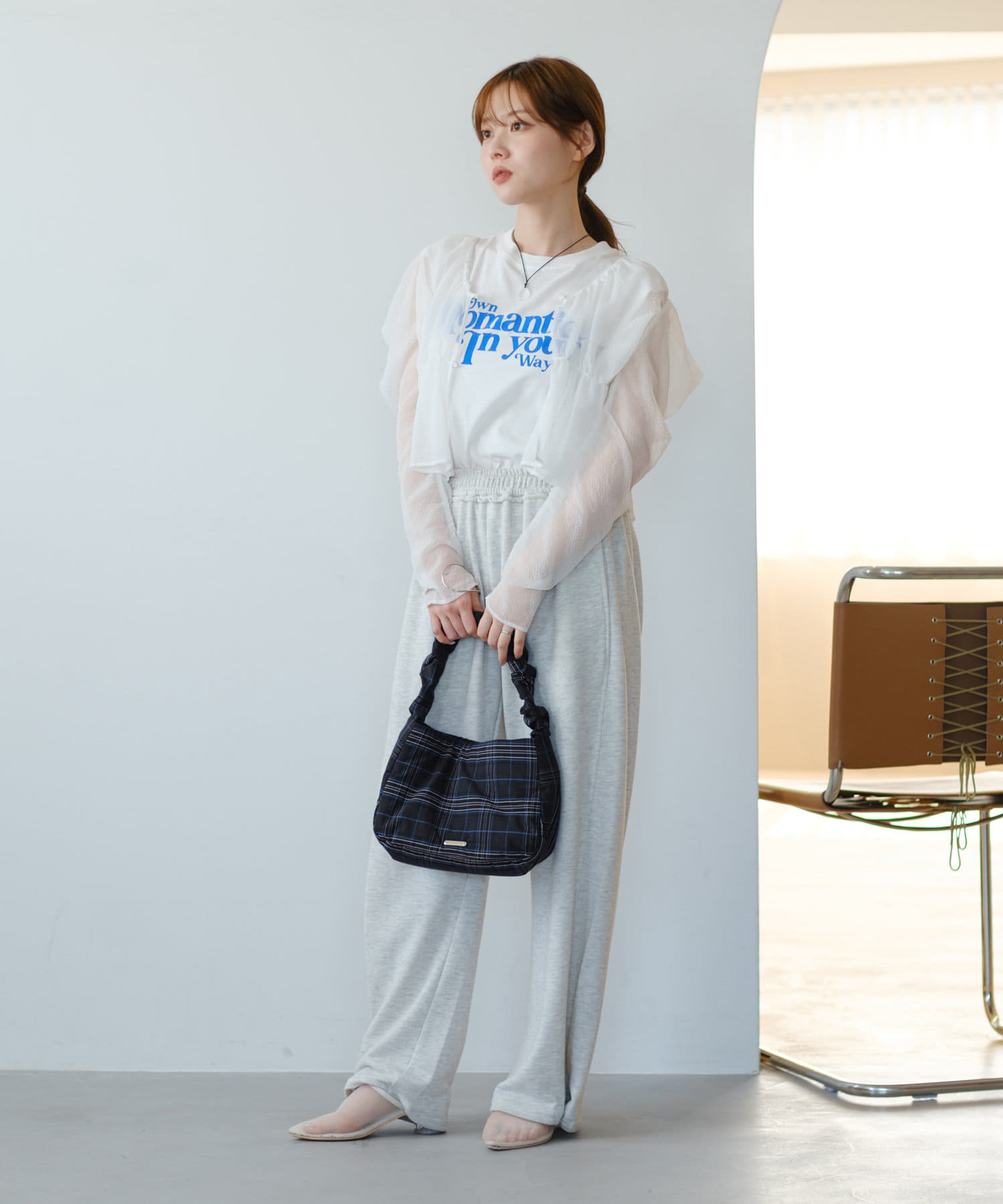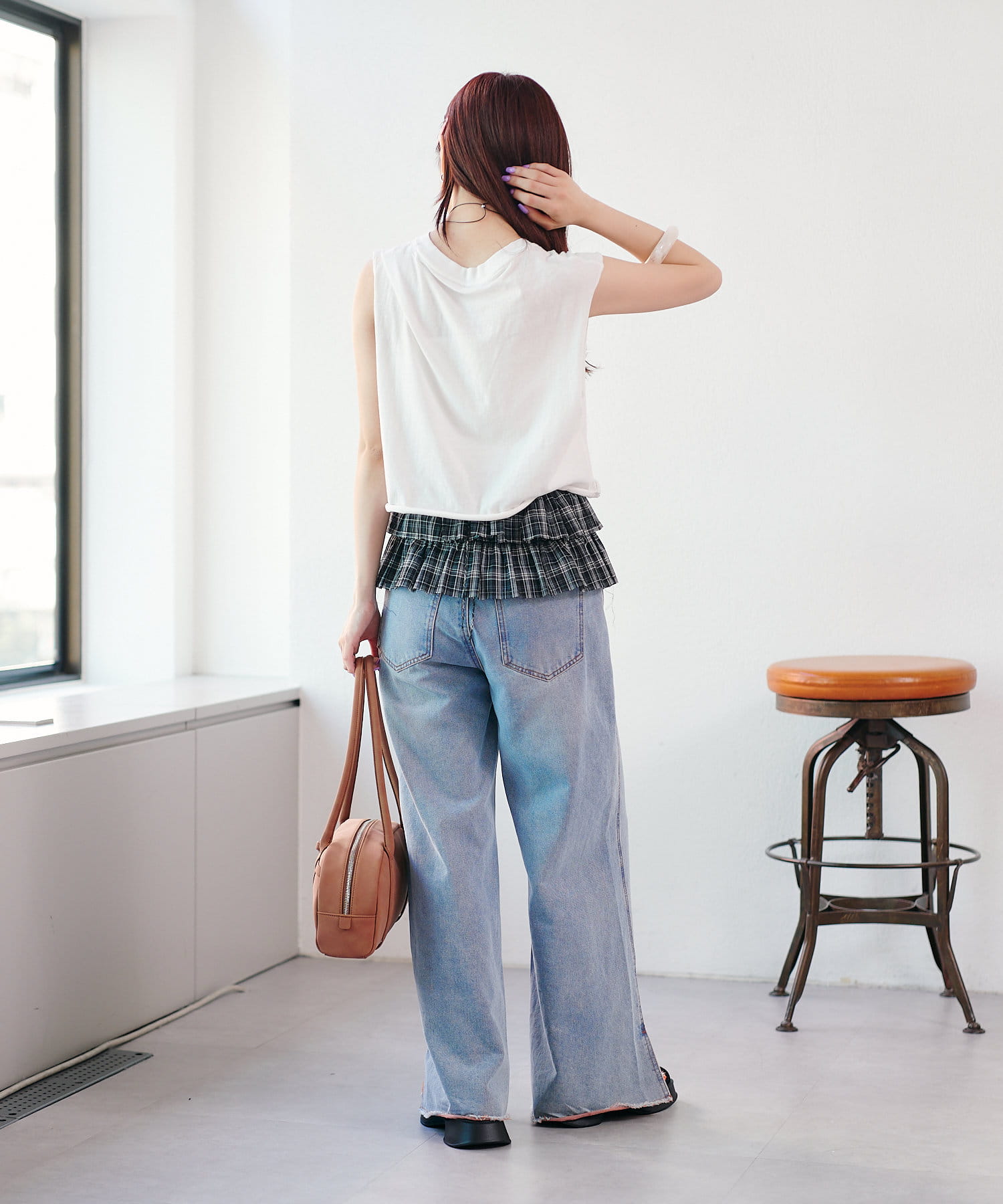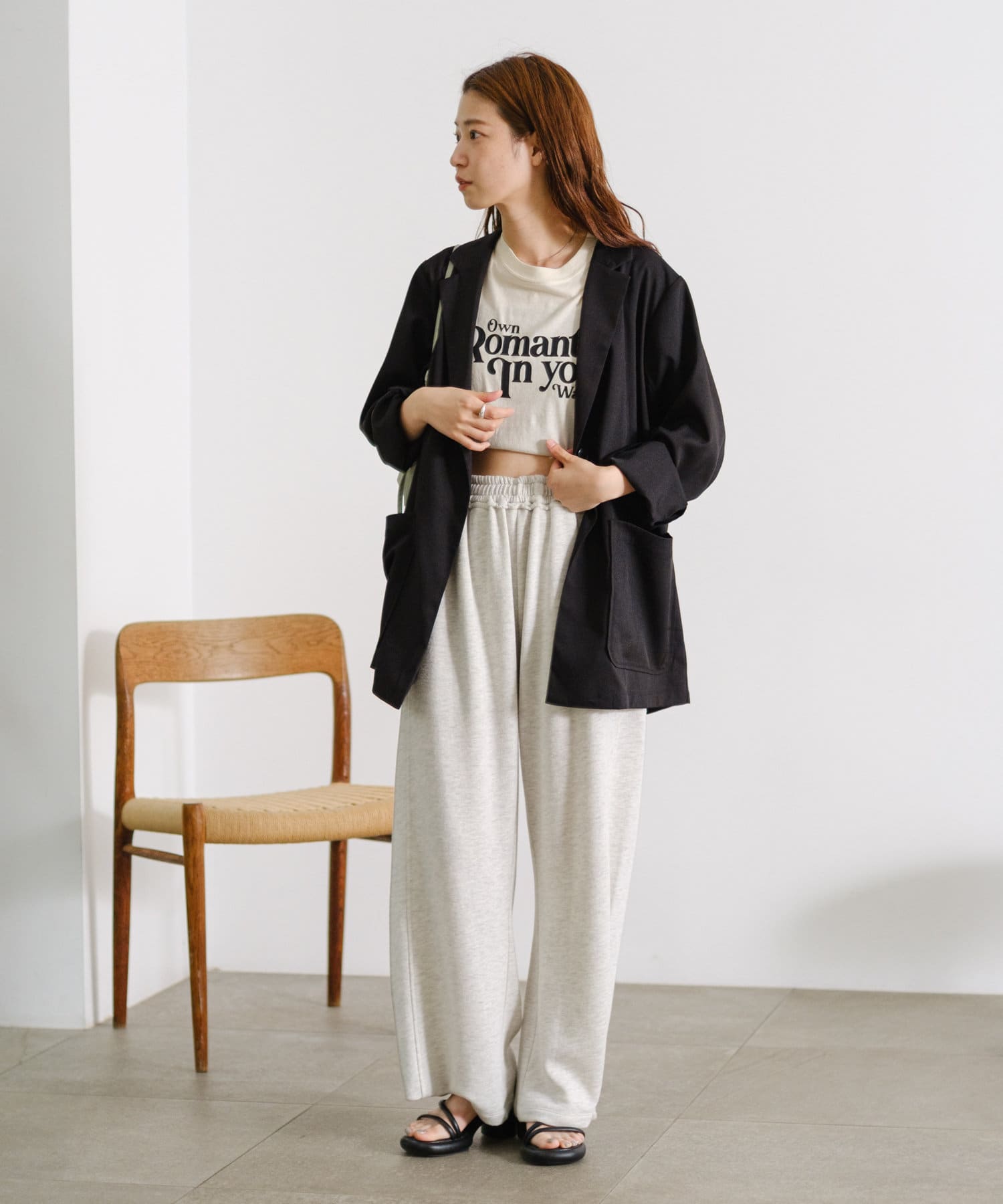 ハイウエストデニムやワイドパンツと合わせたカジュアルスタイルがオススメ。