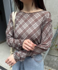 顔周りがすっきり見えるクルーネックで首周りのメロウ感がポイント。