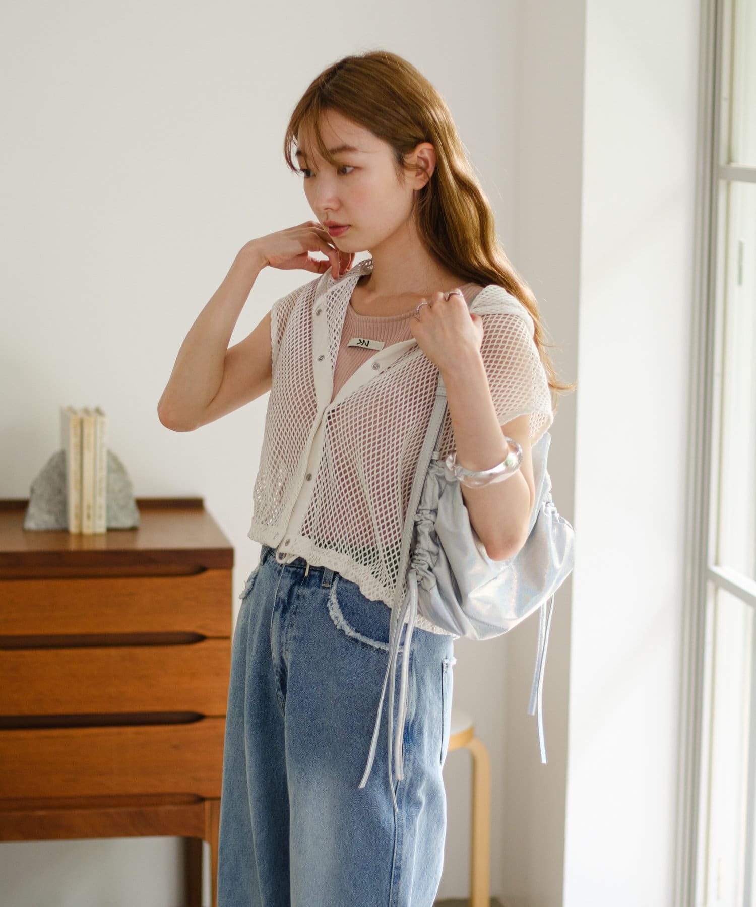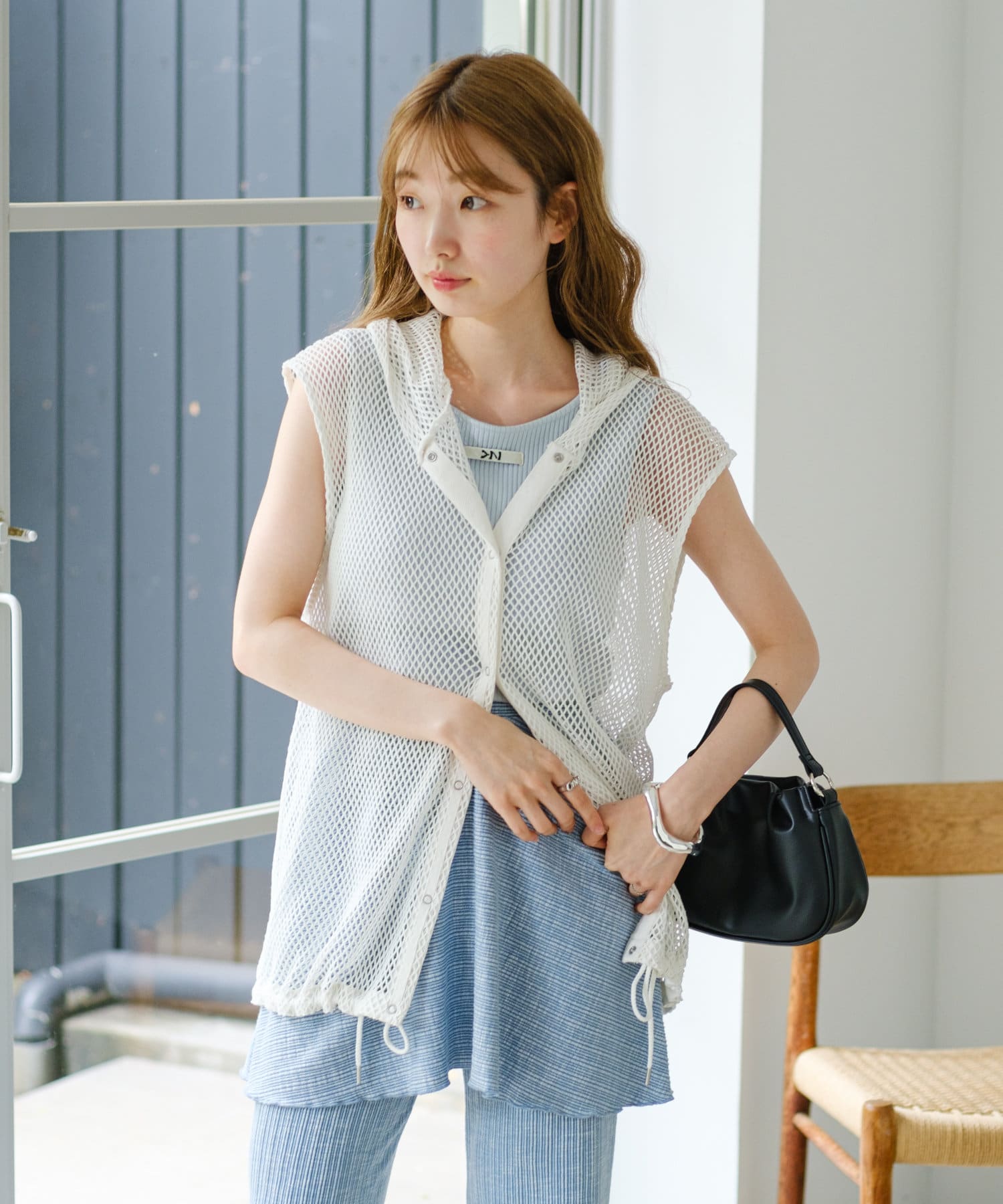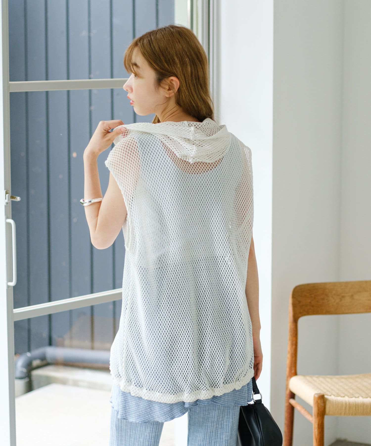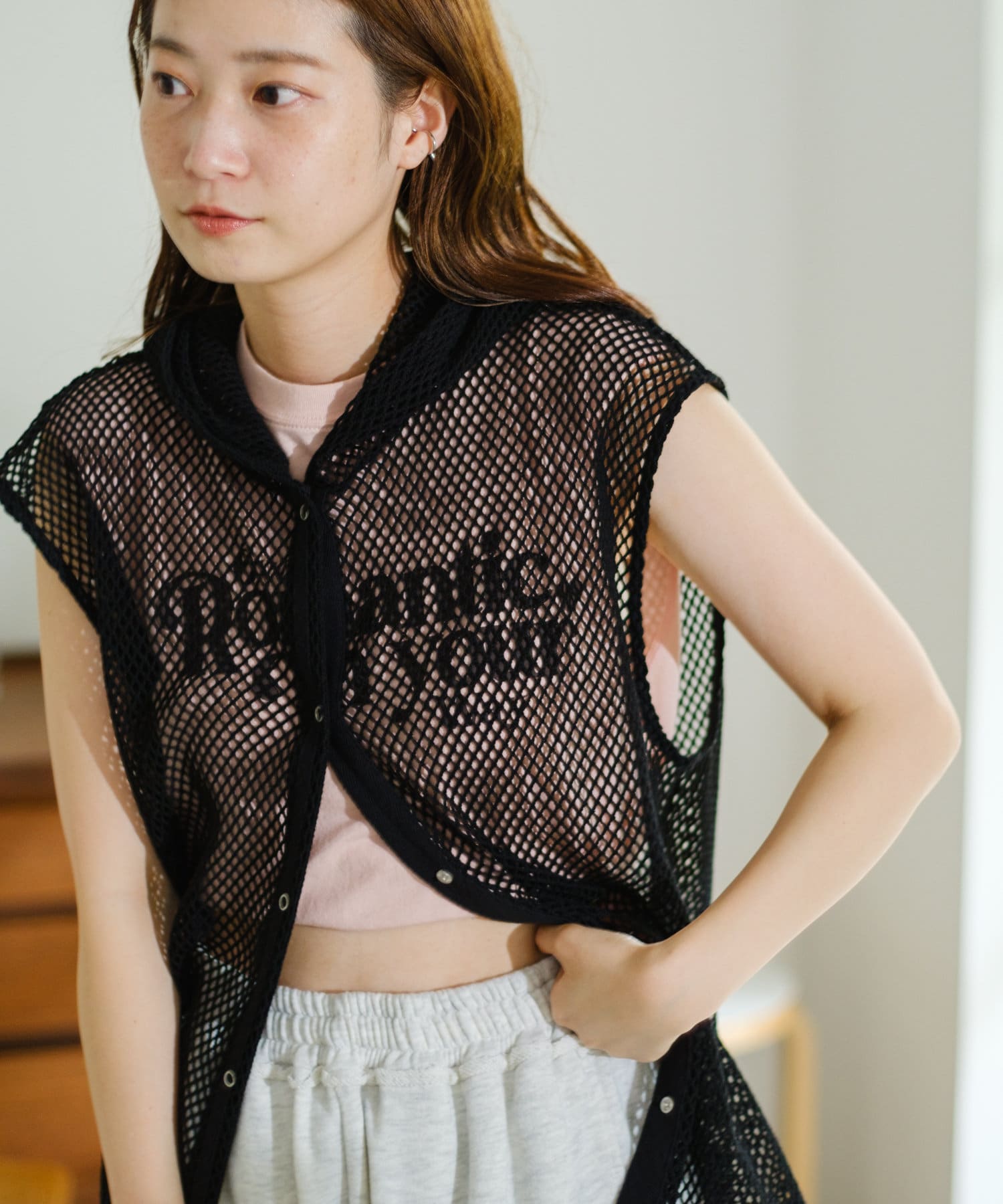 メッシュなので風通しがよく、夏にもレイヤードを楽しみやすいです。