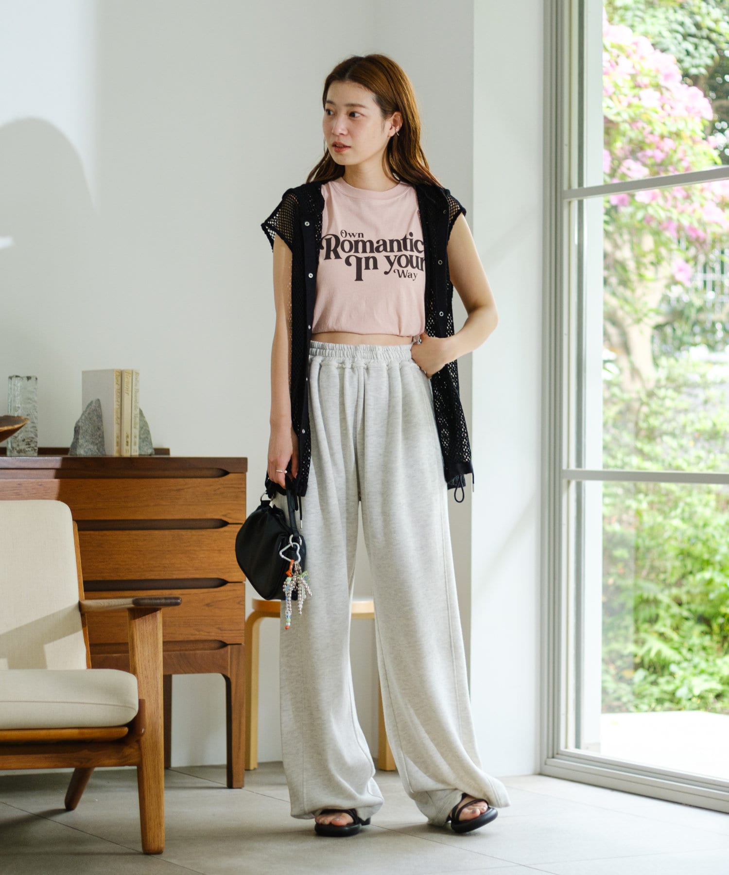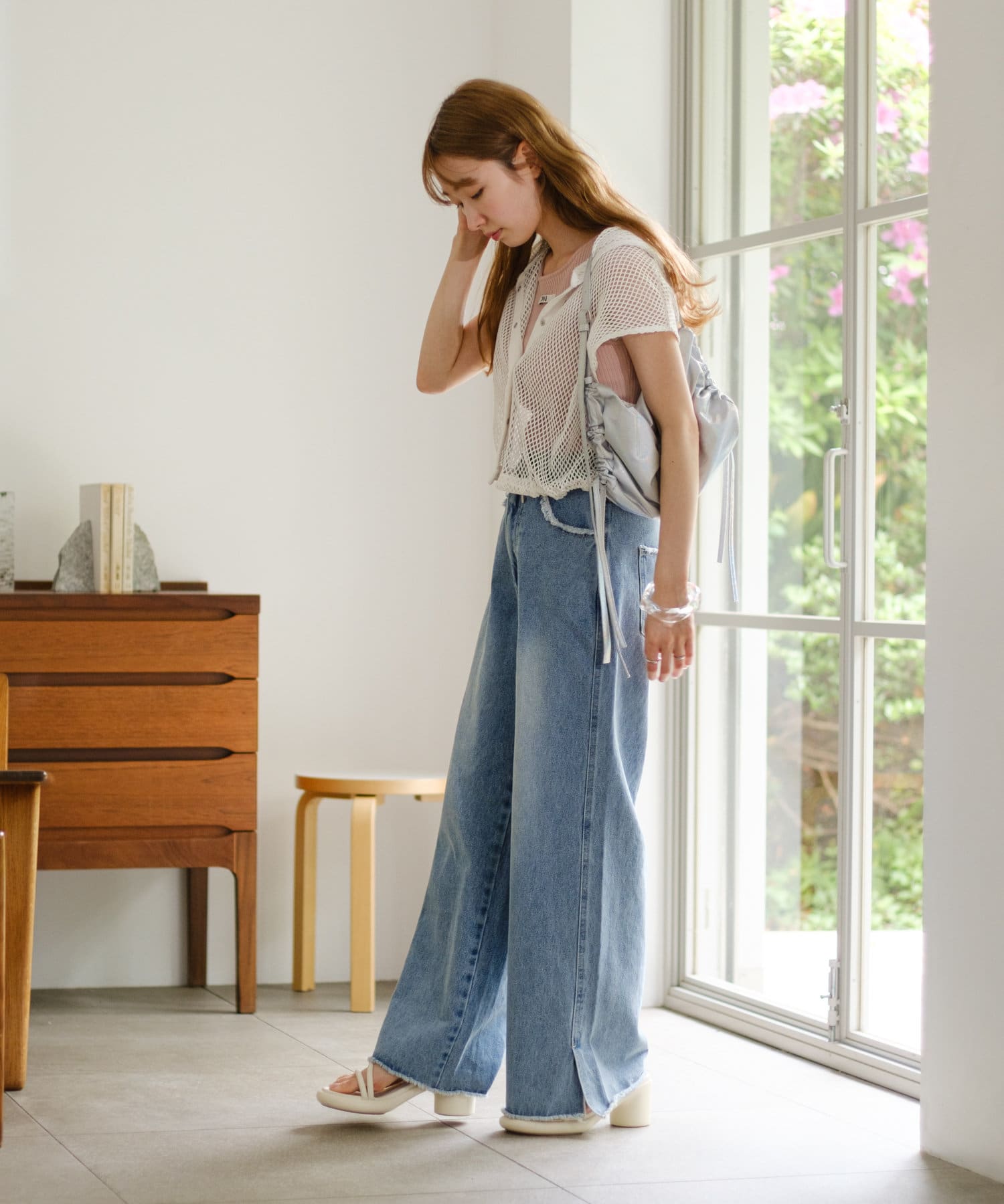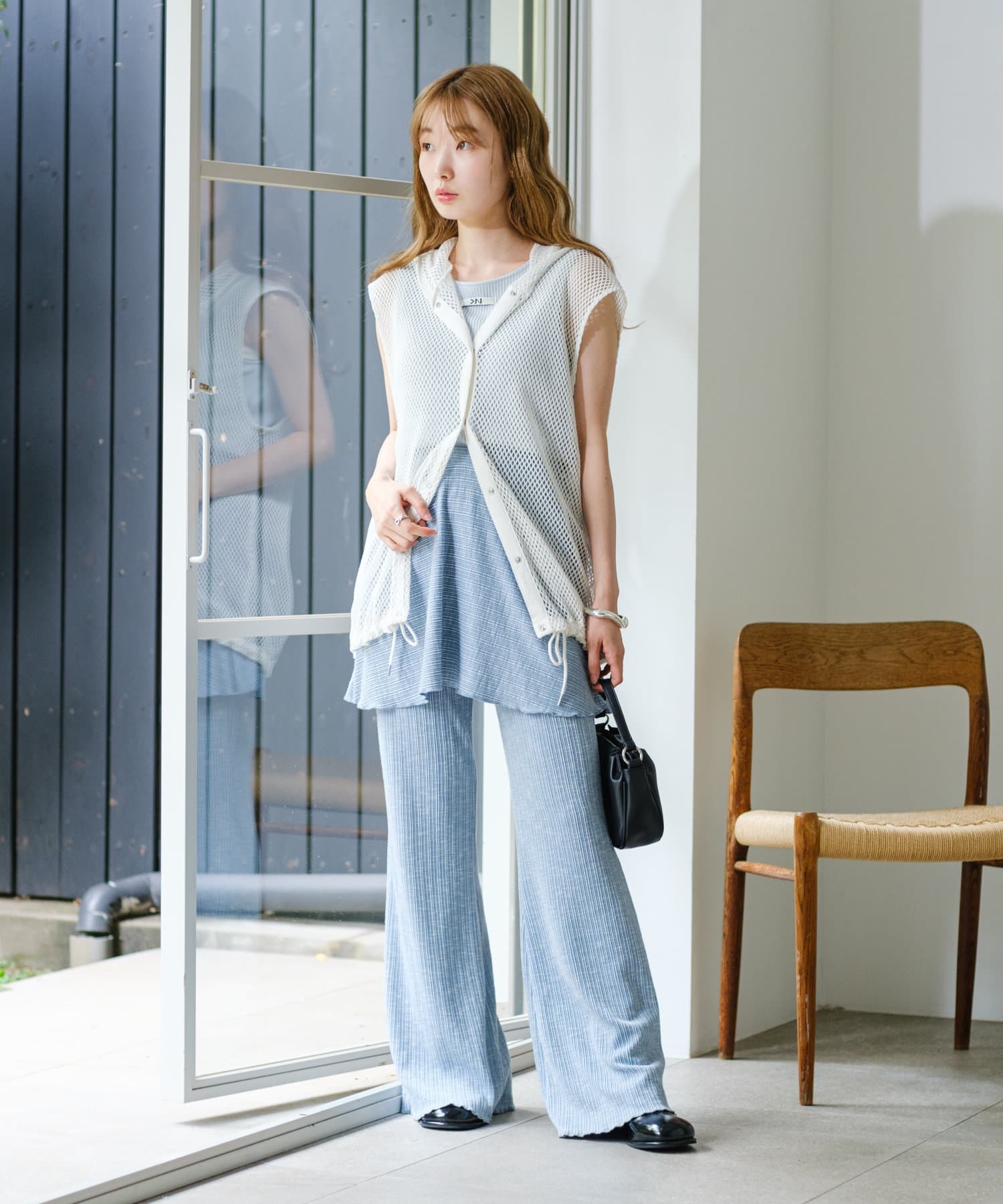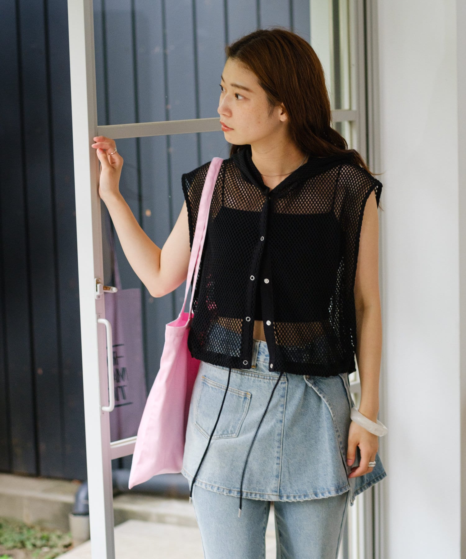 メッシュなので風通しがよく、夏にもレイヤードを楽しみやすいです。