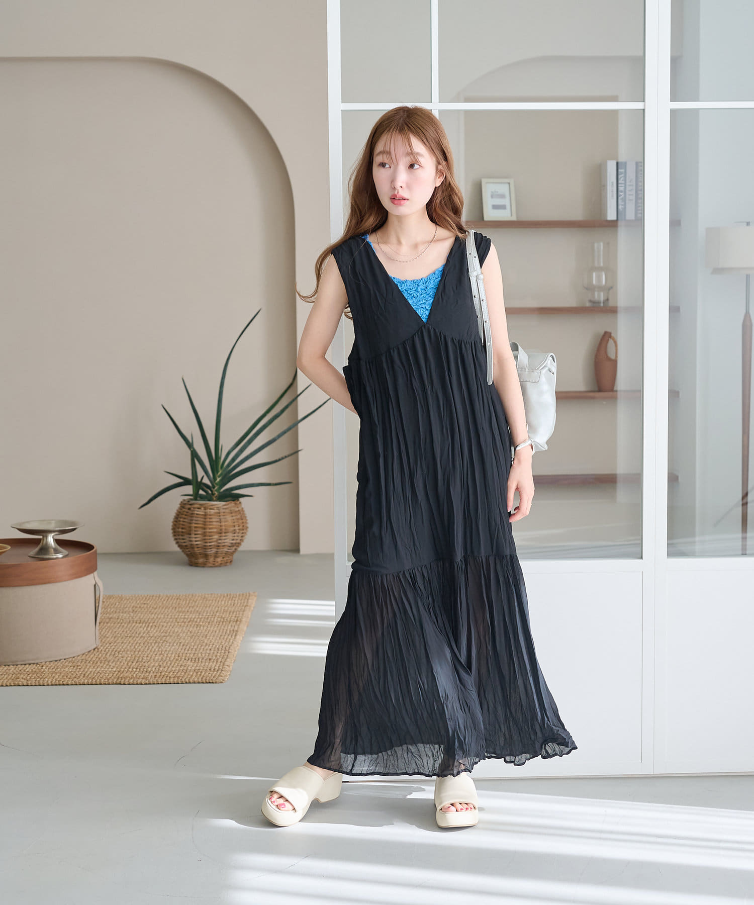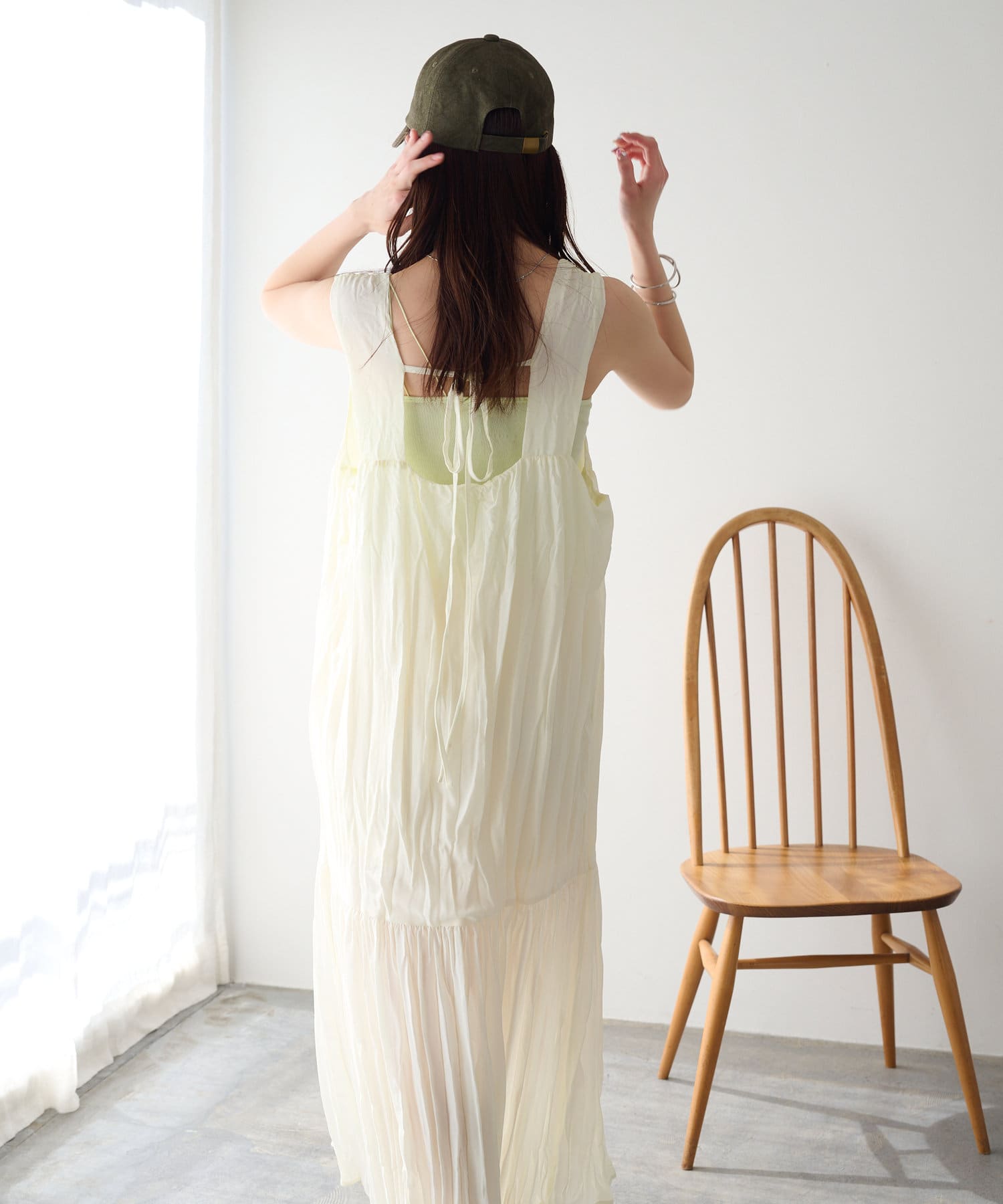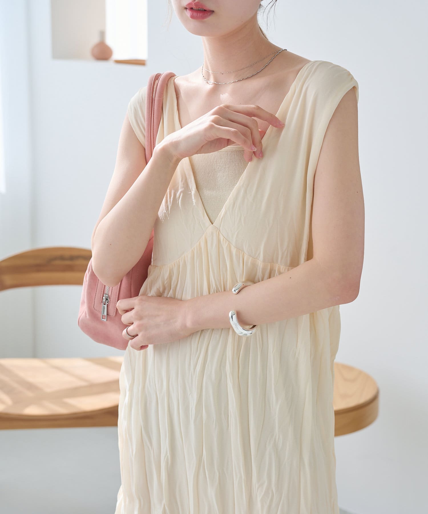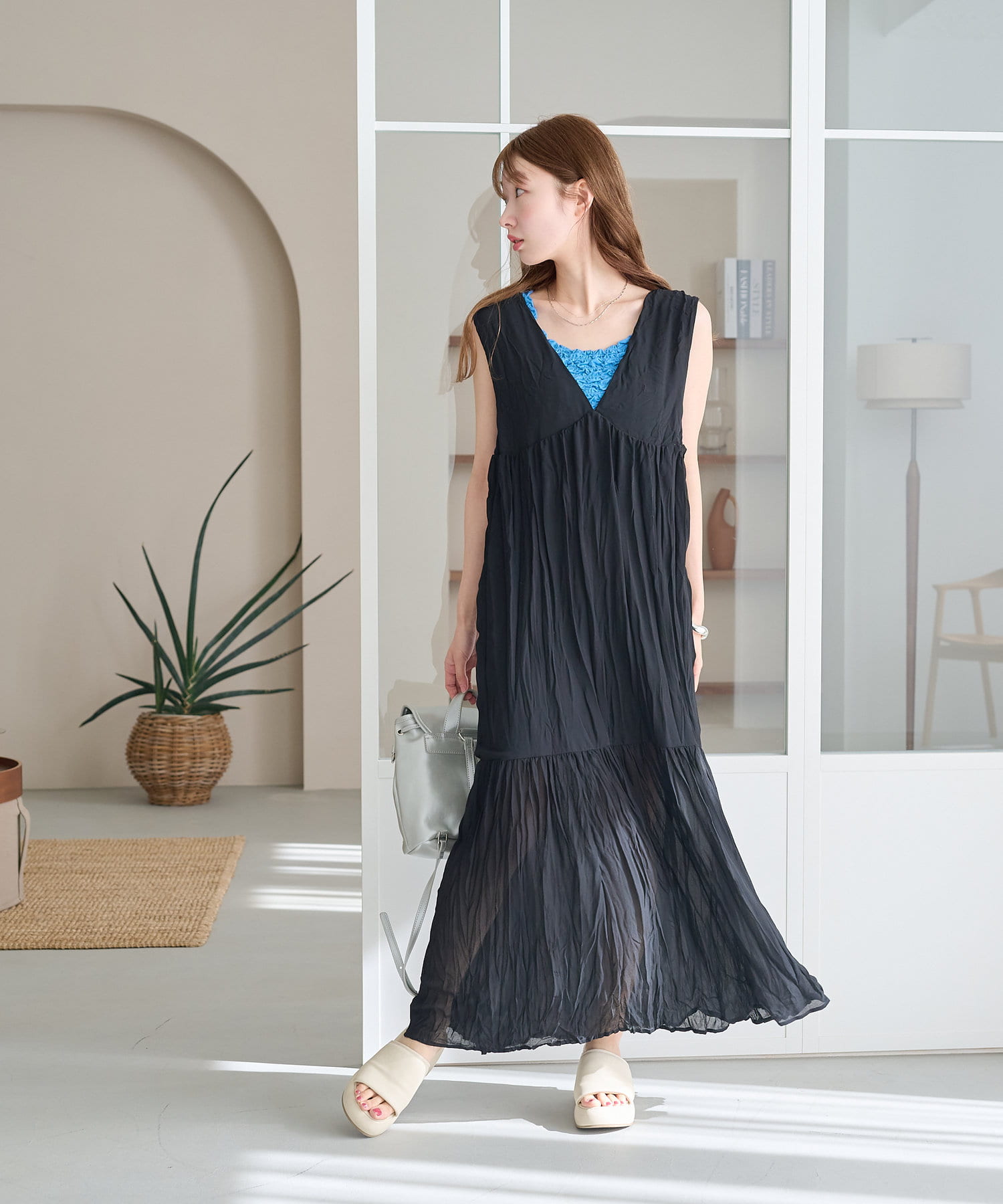 【新色追加/WEB限定/低身長サイズ】ワッシャーシフォン無地ノースリワンピース