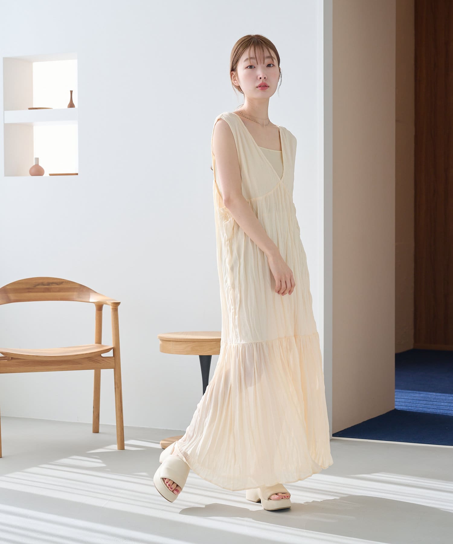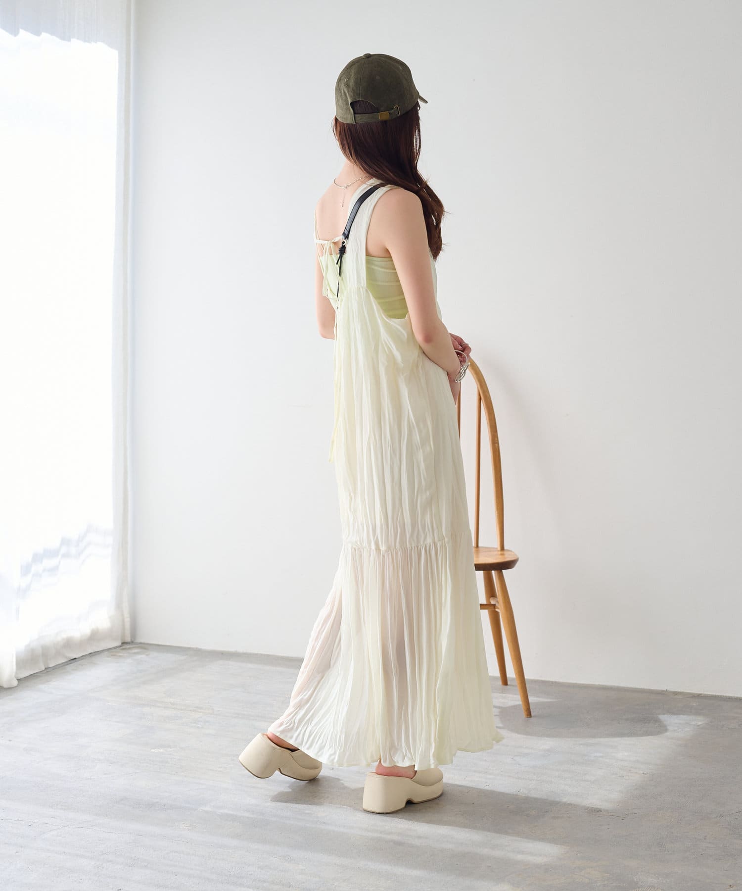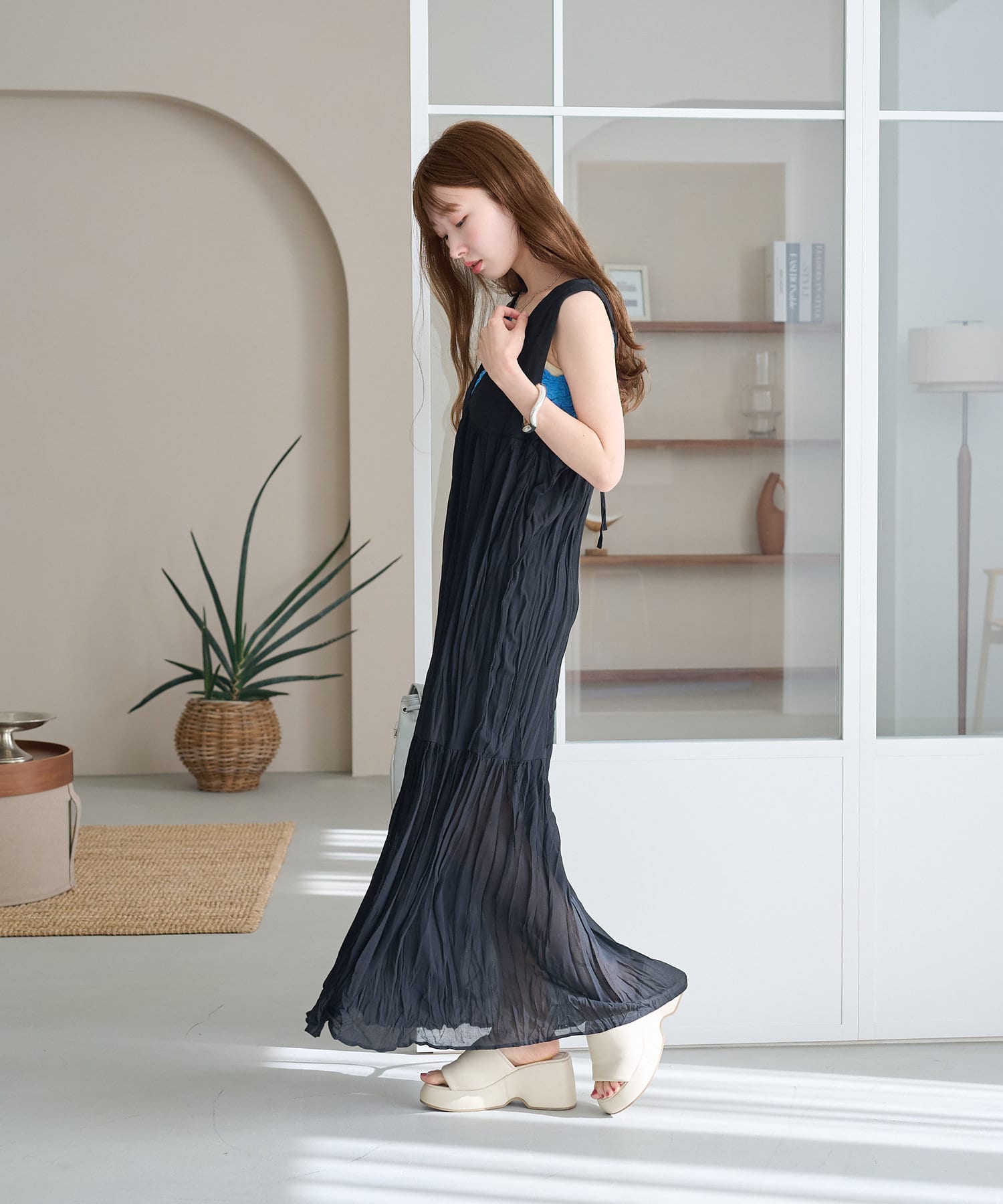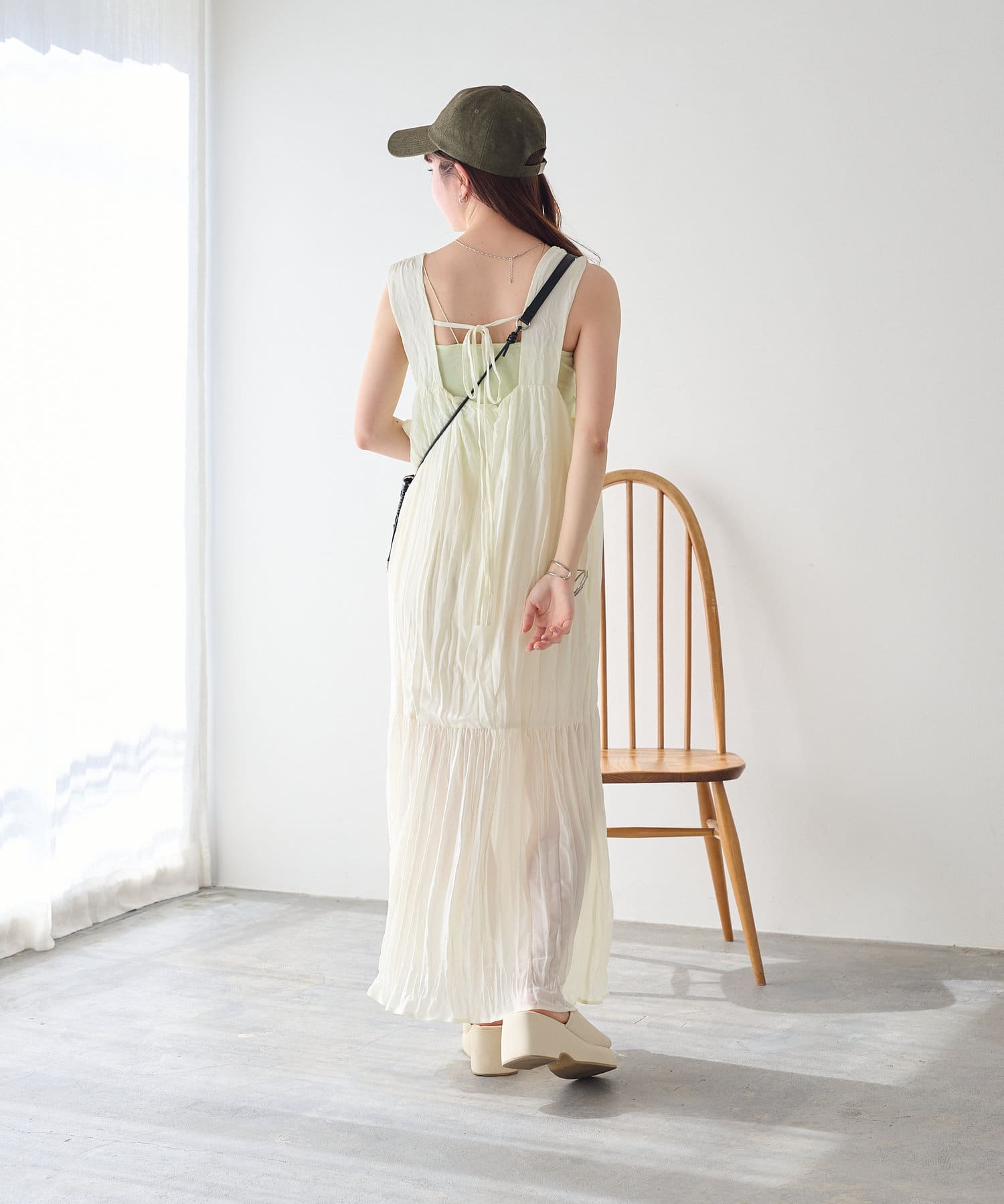 【新色追加/WEB限定/低身長サイズ】ワッシャーシフォン無地ノースリワンピース