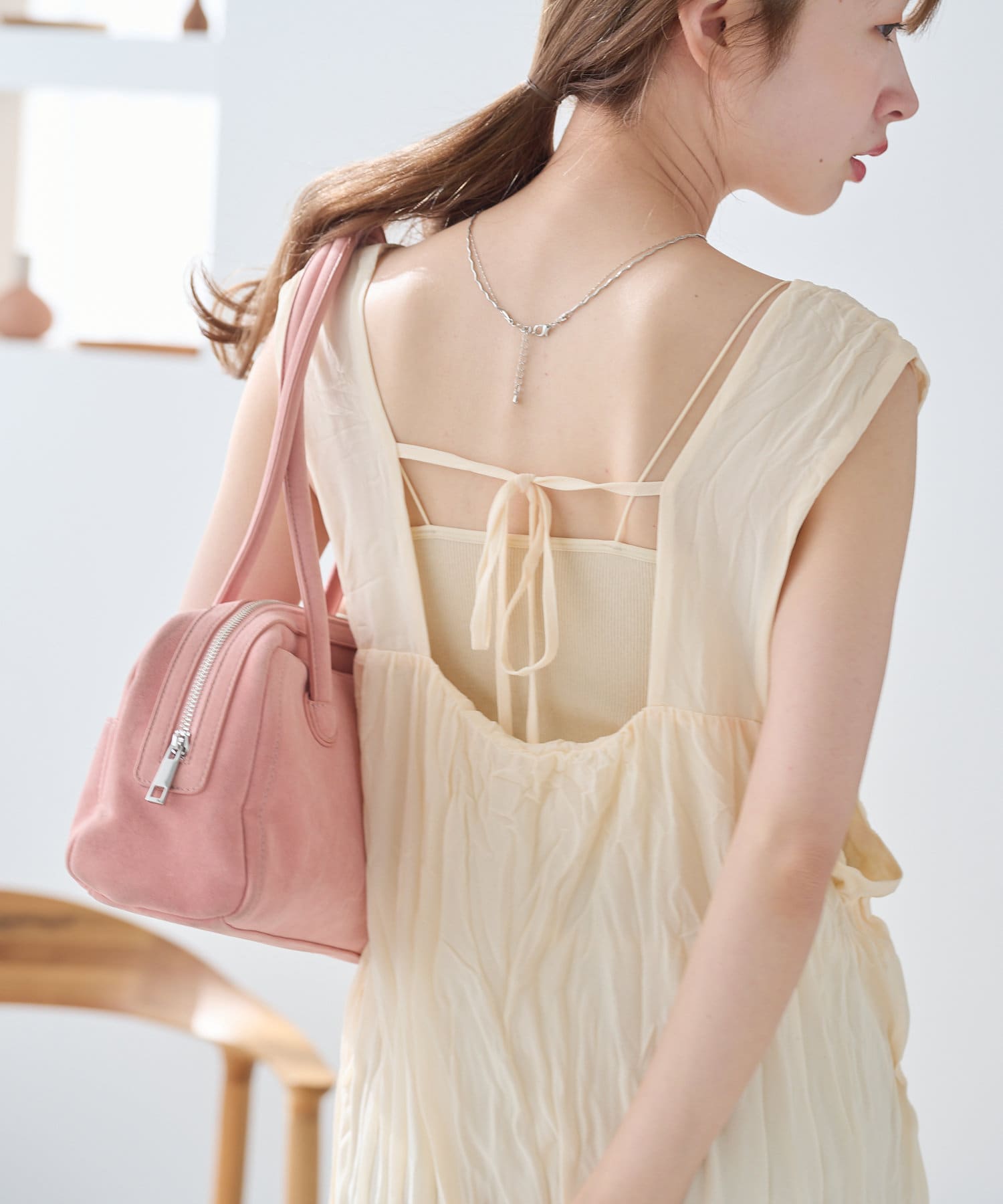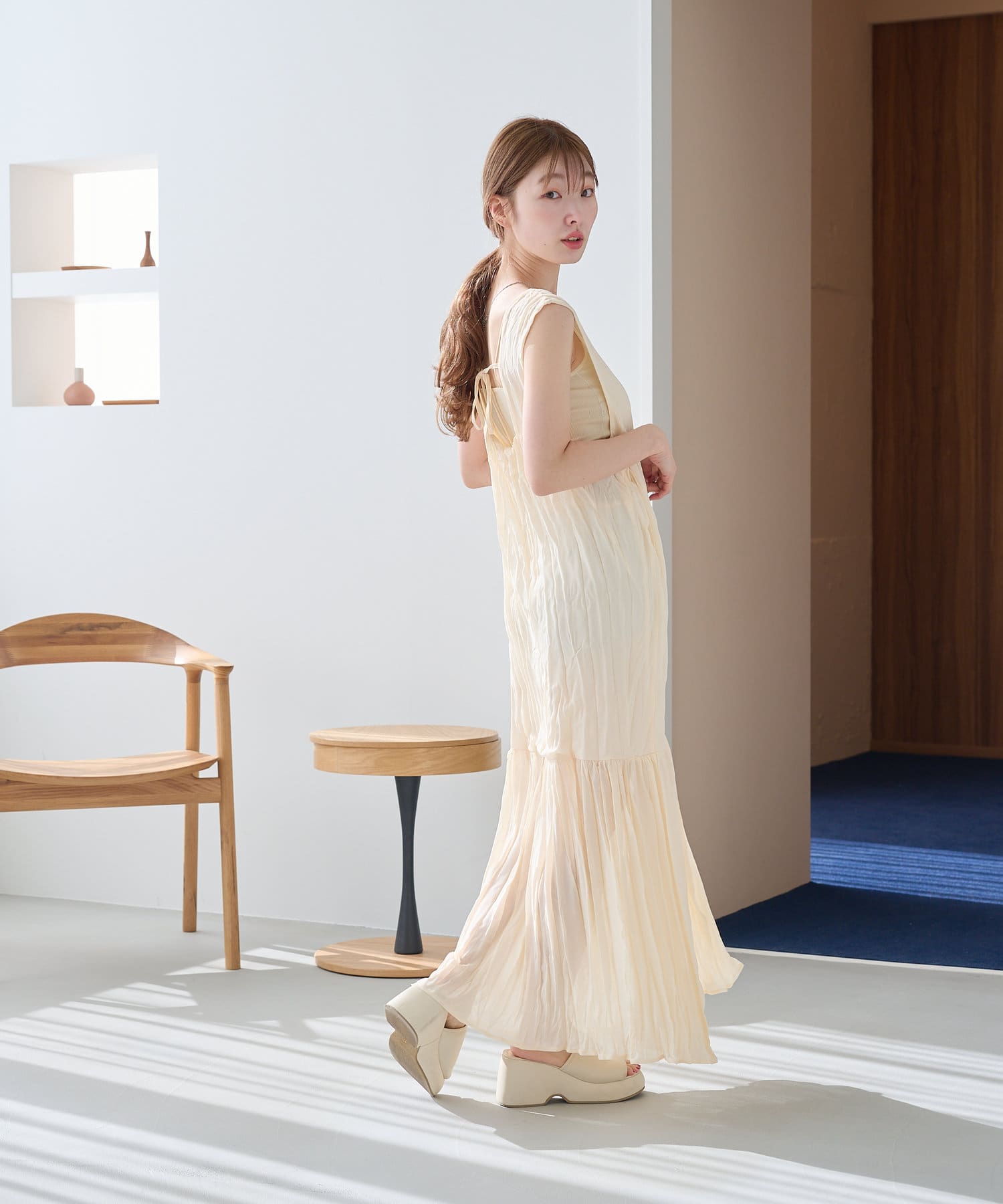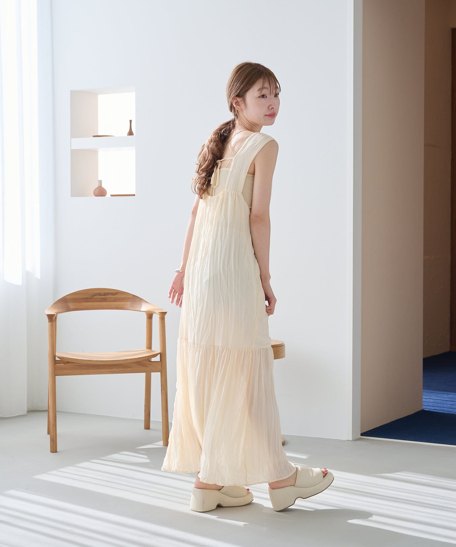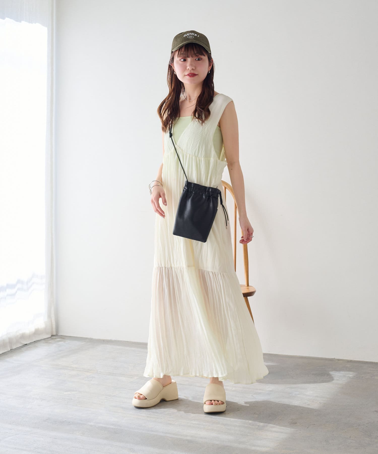 【新色追加/WEB限定/低身長サイズ】ワッシャーシフォン無地ノースリワンピース
