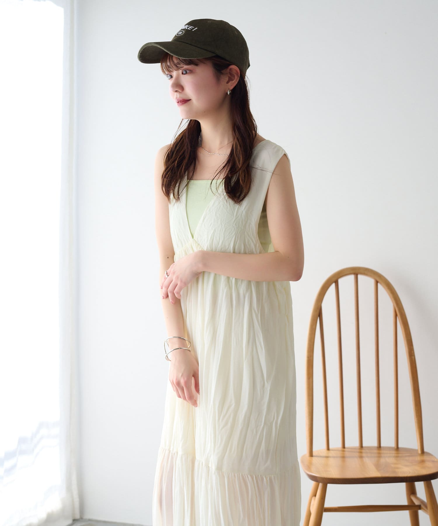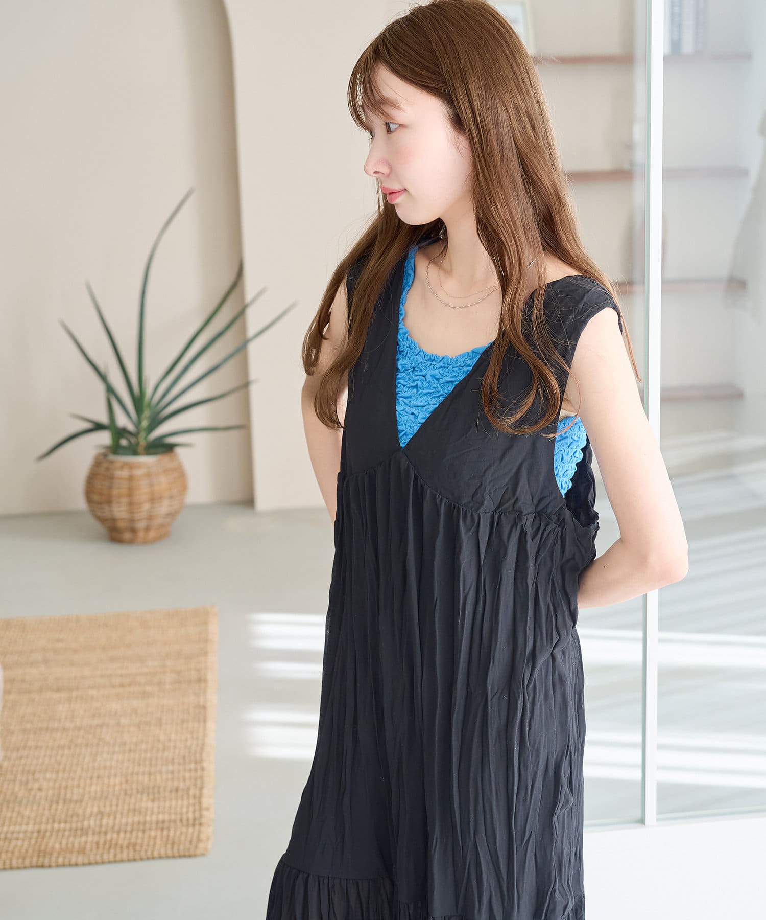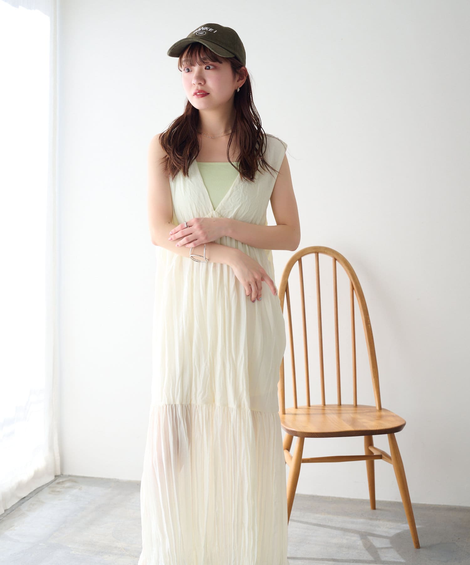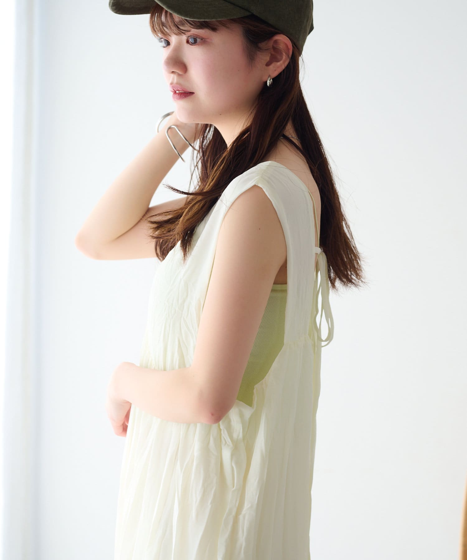 Kastane(カスタネ) 【新色追加/WEB限定/低身長サイズ】ワッシャーシフォン無地ノースリワンピース