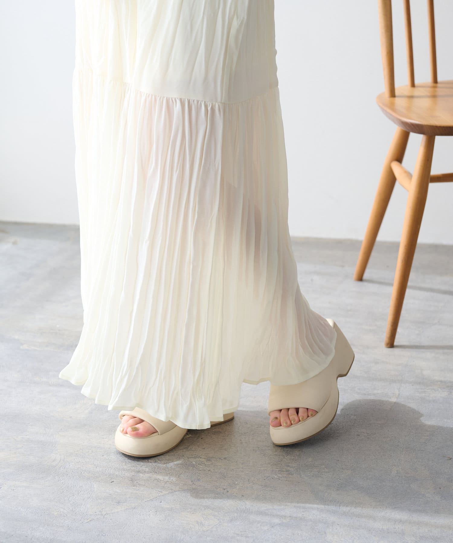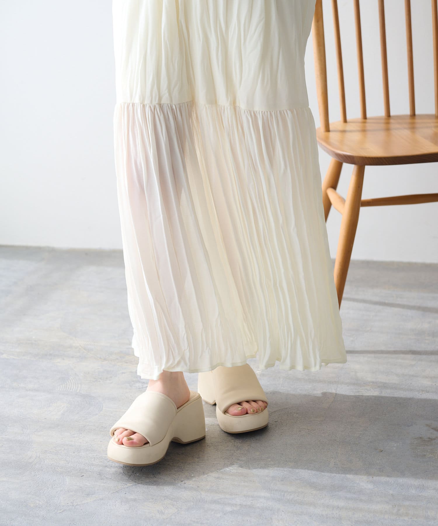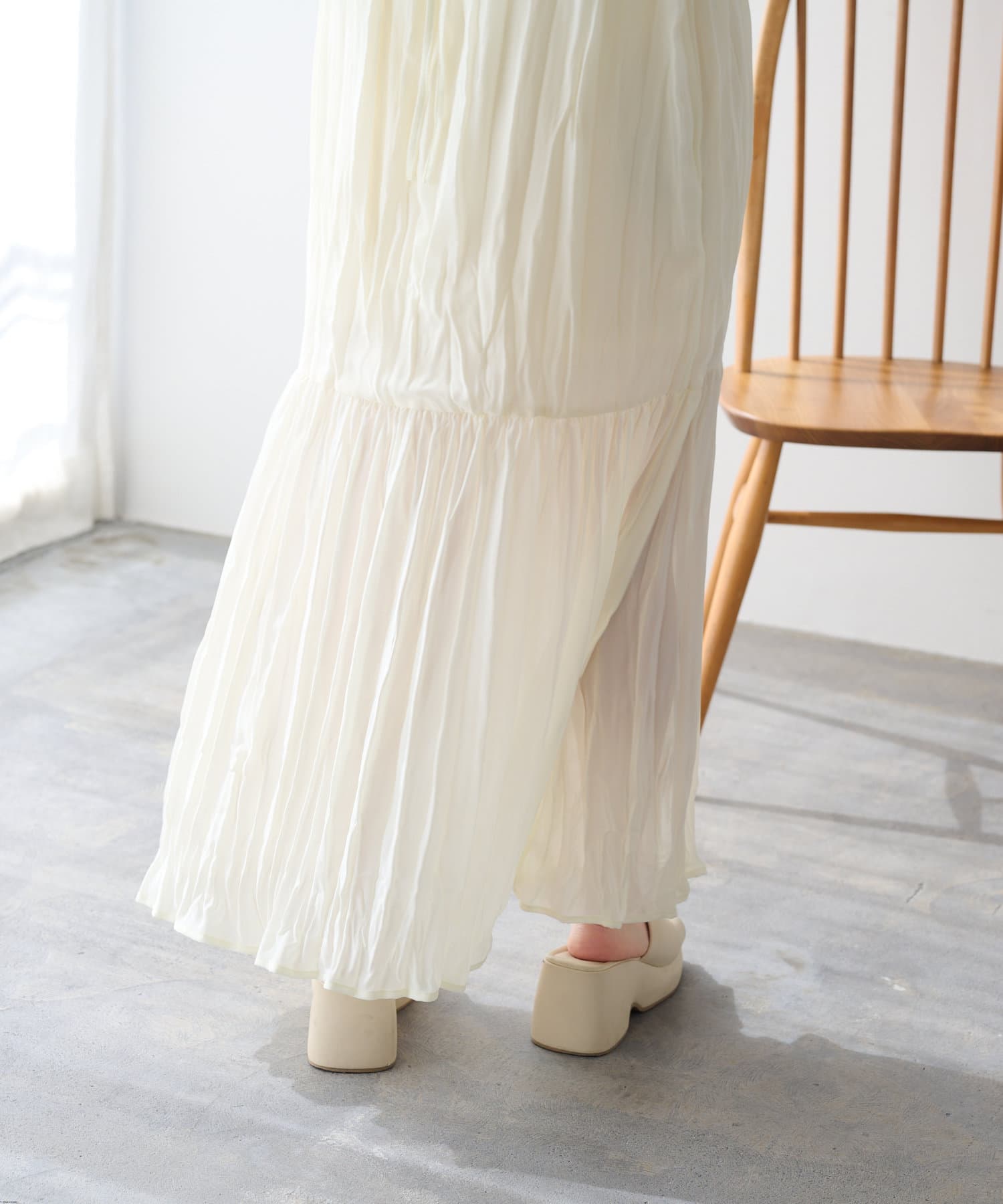 【2サイズ展開】上品でナチュラルな雰囲気のワッシャーシフォン無地ワンピース