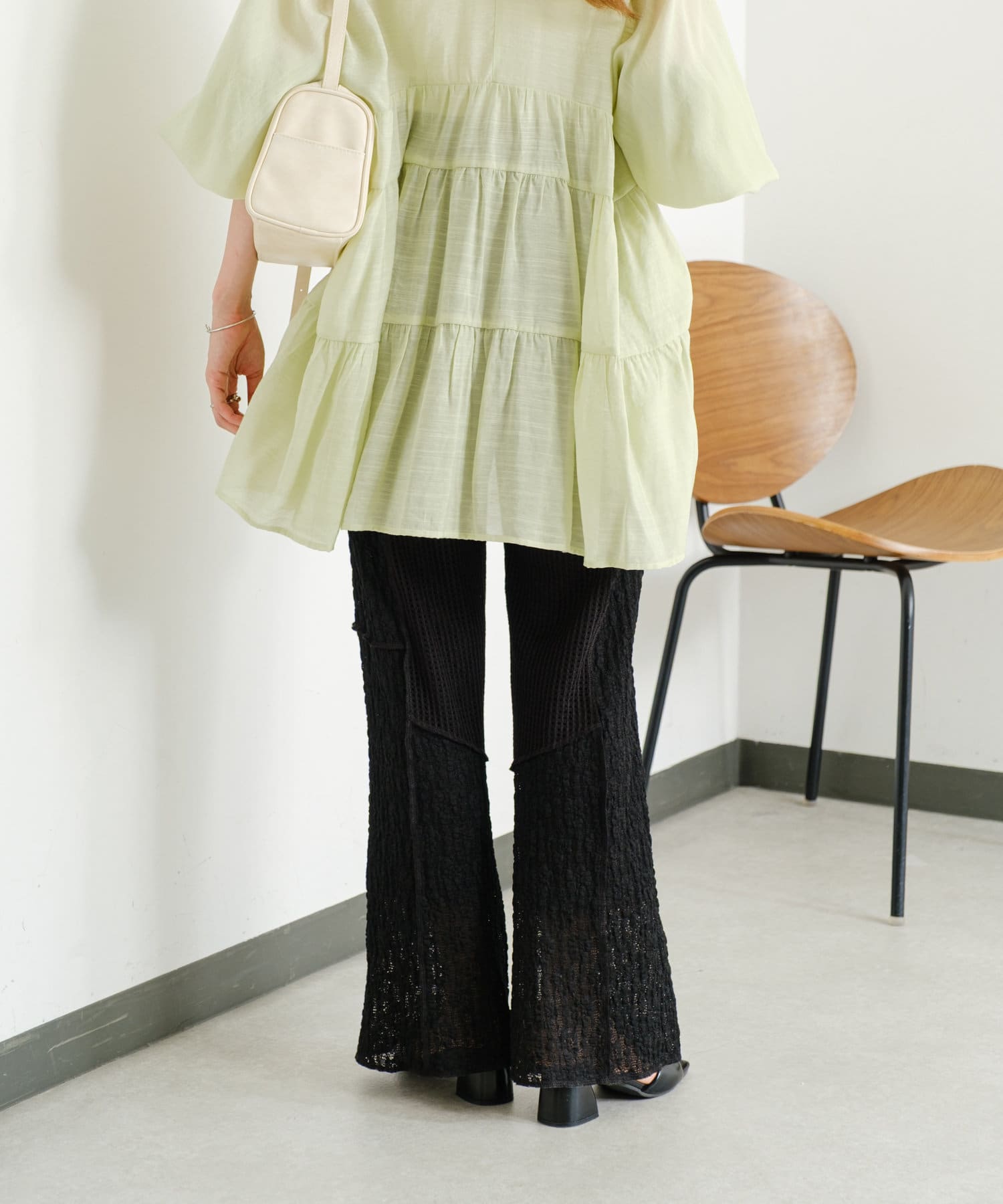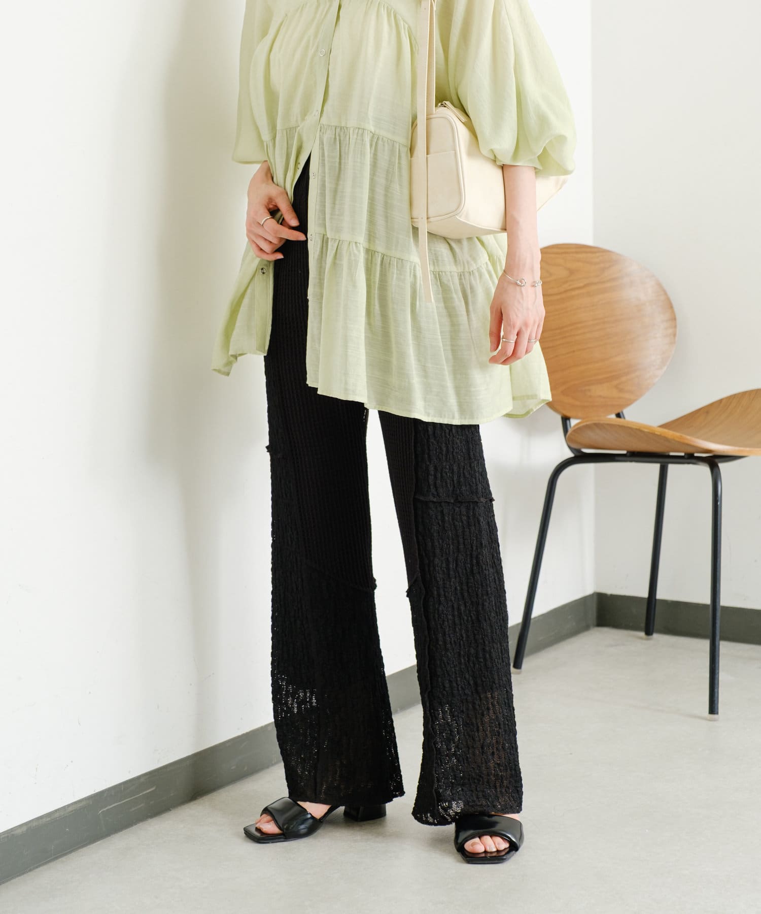 足元にかけてフレアシルエットに広がっているため足長効果があり、エレガントさとカジュアルさを兼ね揃えたアイテムです。
