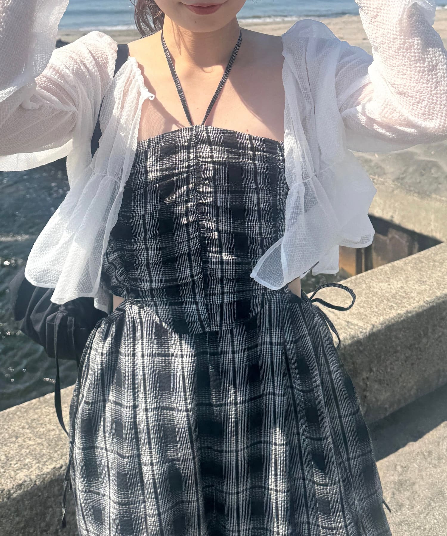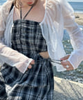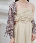 肩紐の部分で簡単にアレンジができる仕様で、ホルターネックやベアとして着れるので雰囲気を変えてお楽しみいただけます。