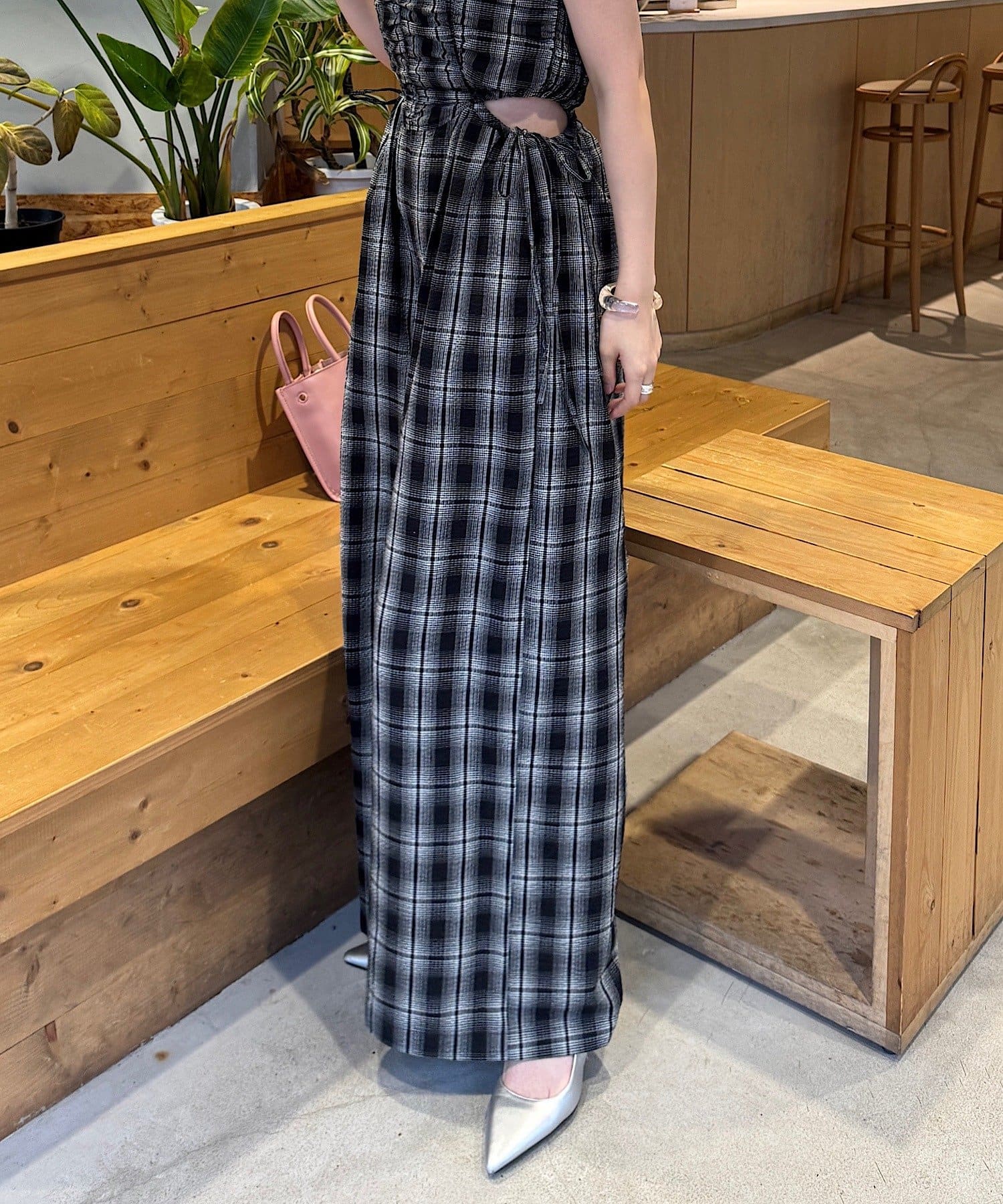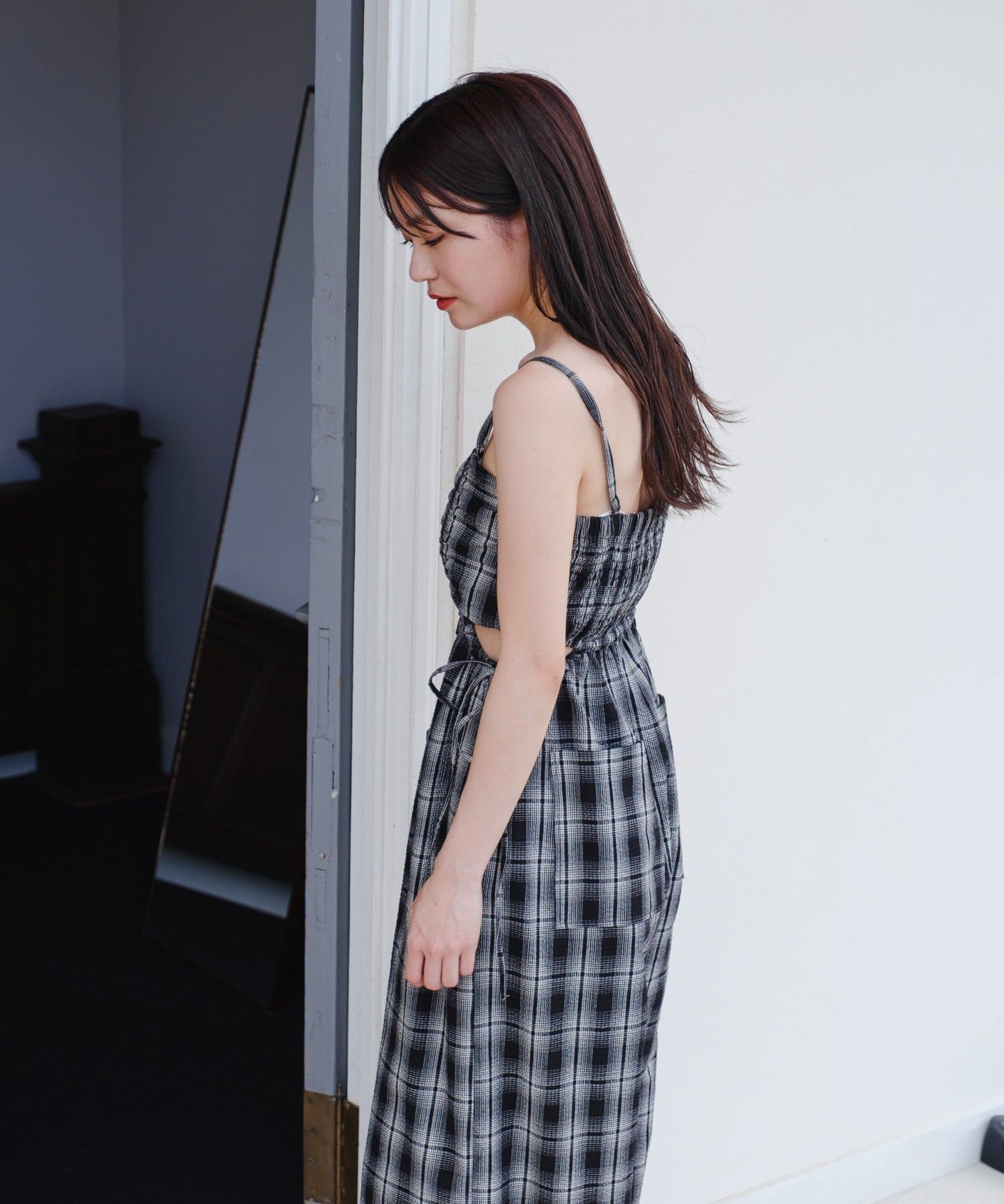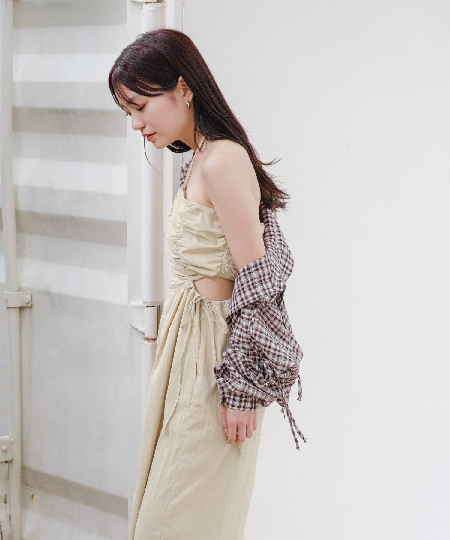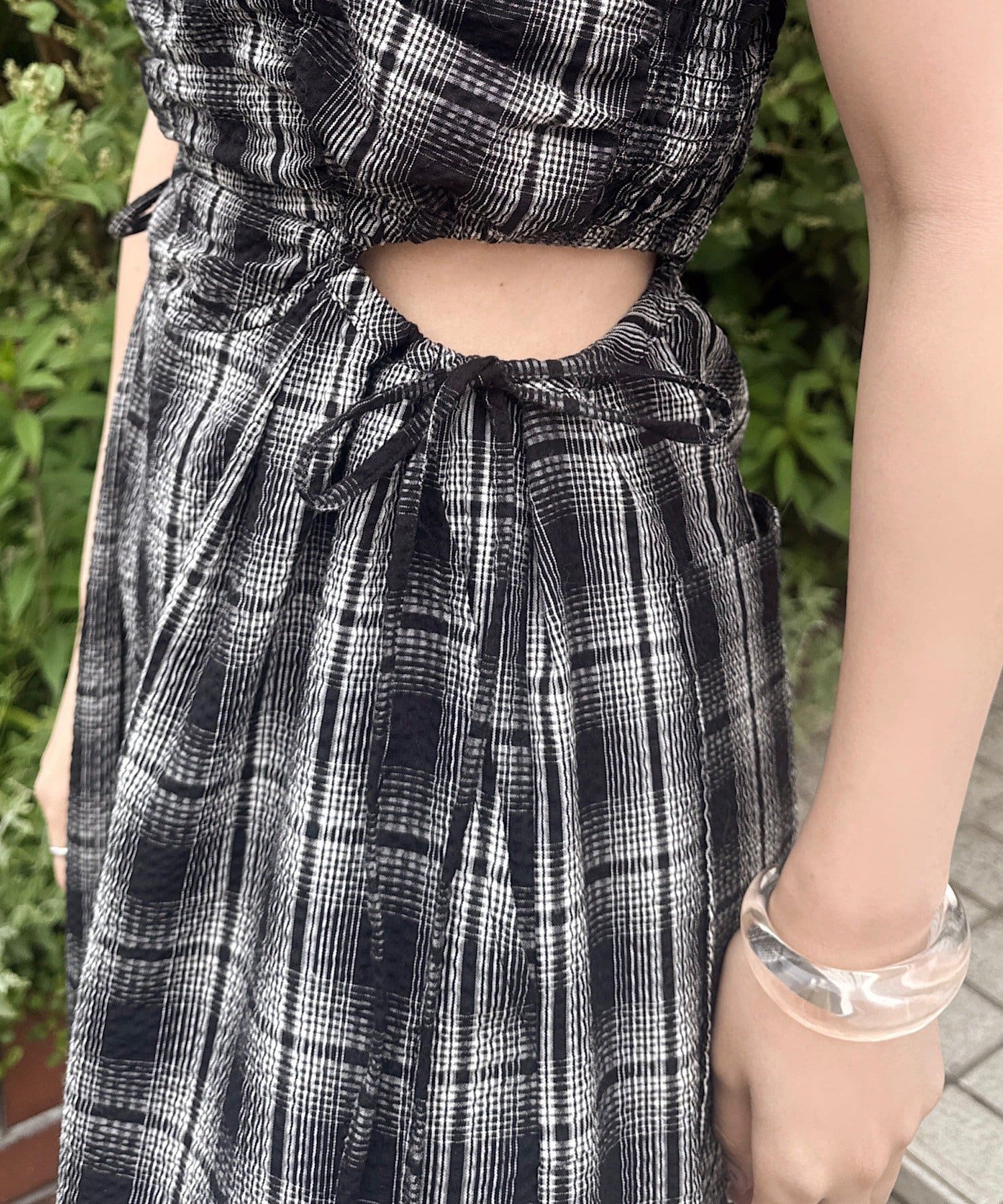 ウエスト部分はカットアウトデザインなので女性らしく着られます。