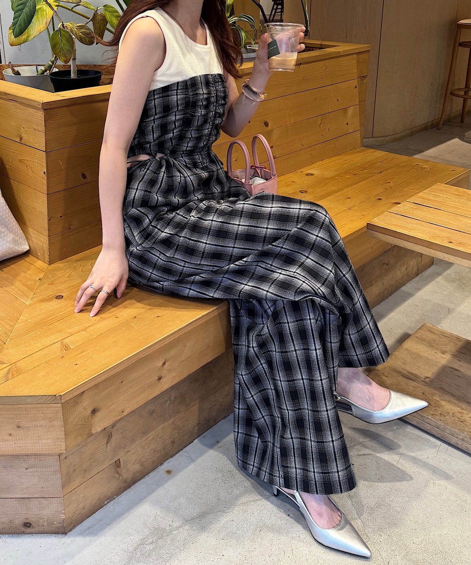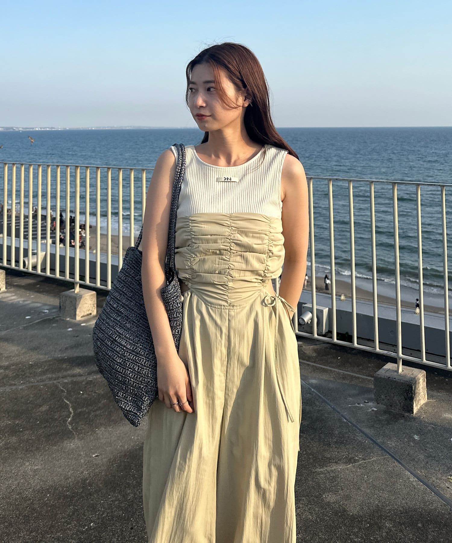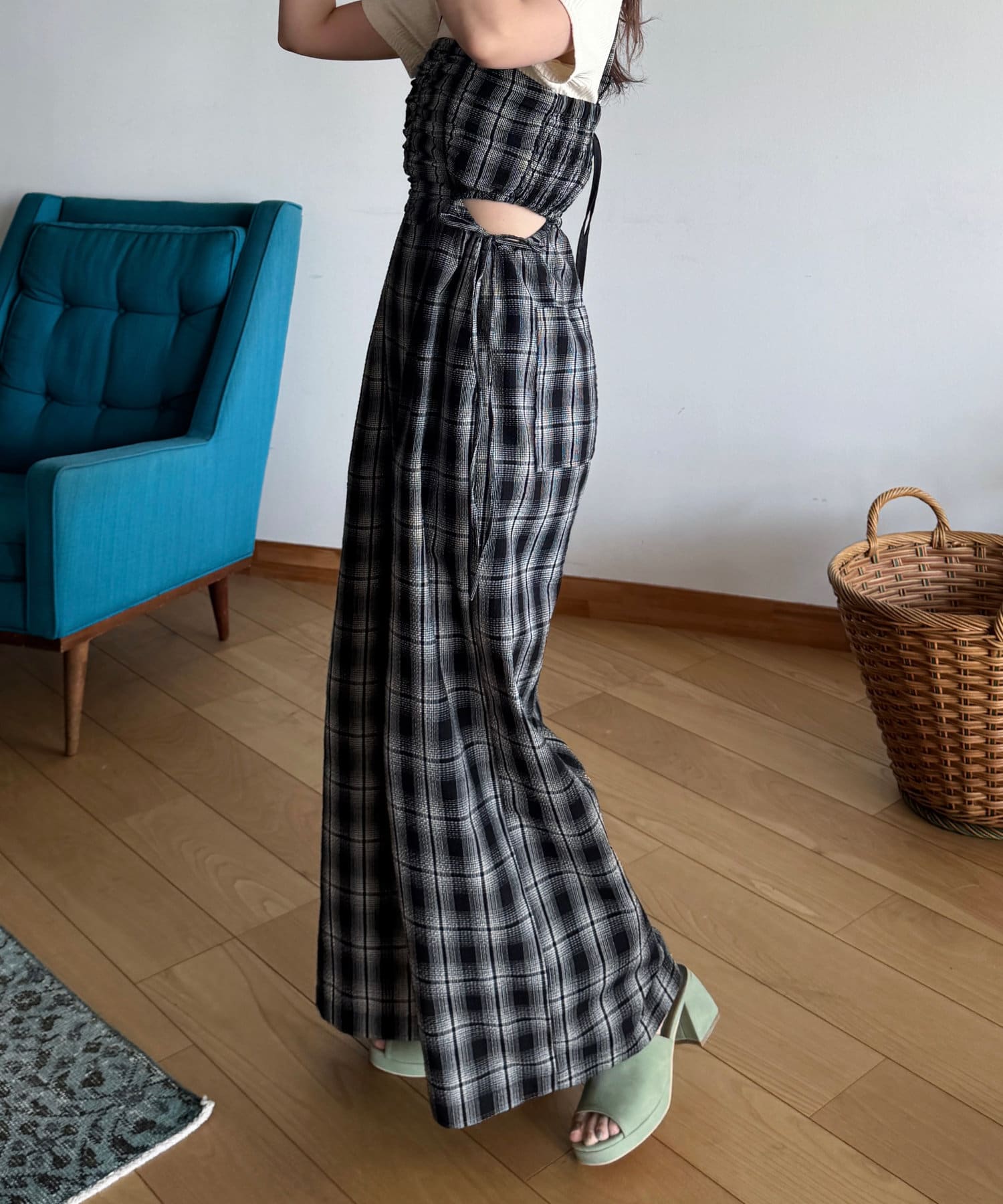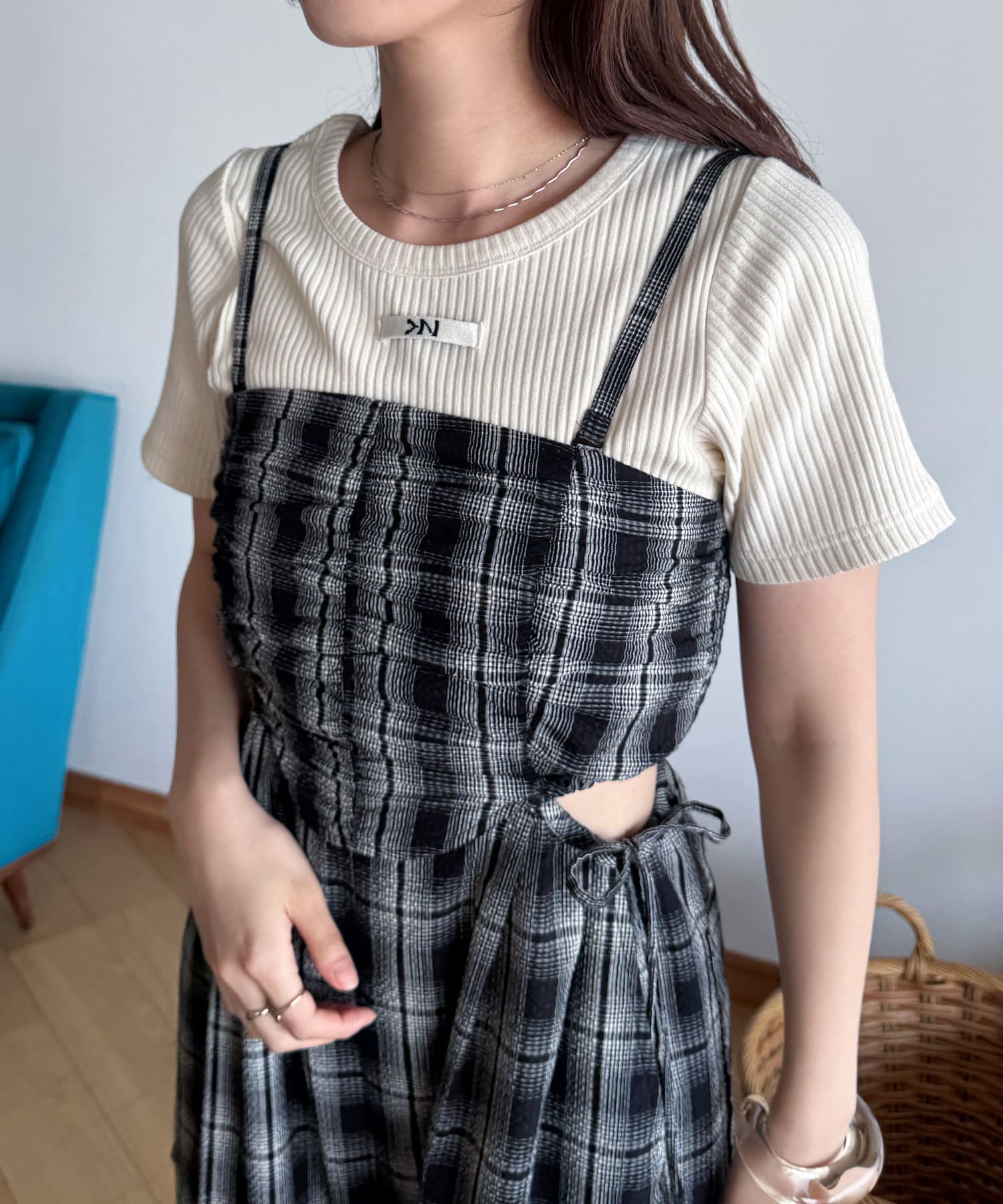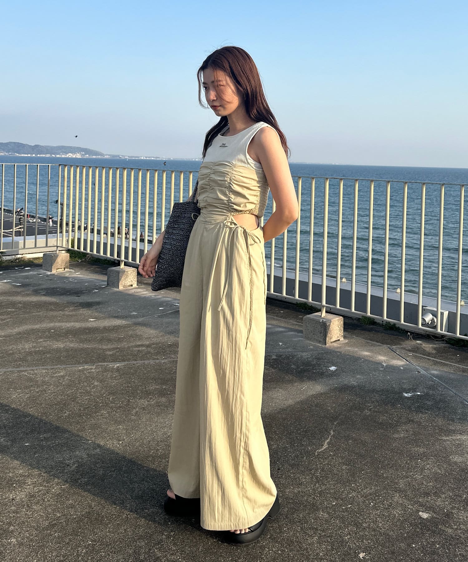 ウエスト部分はカットアウトデザインなので女性らしく着られます。