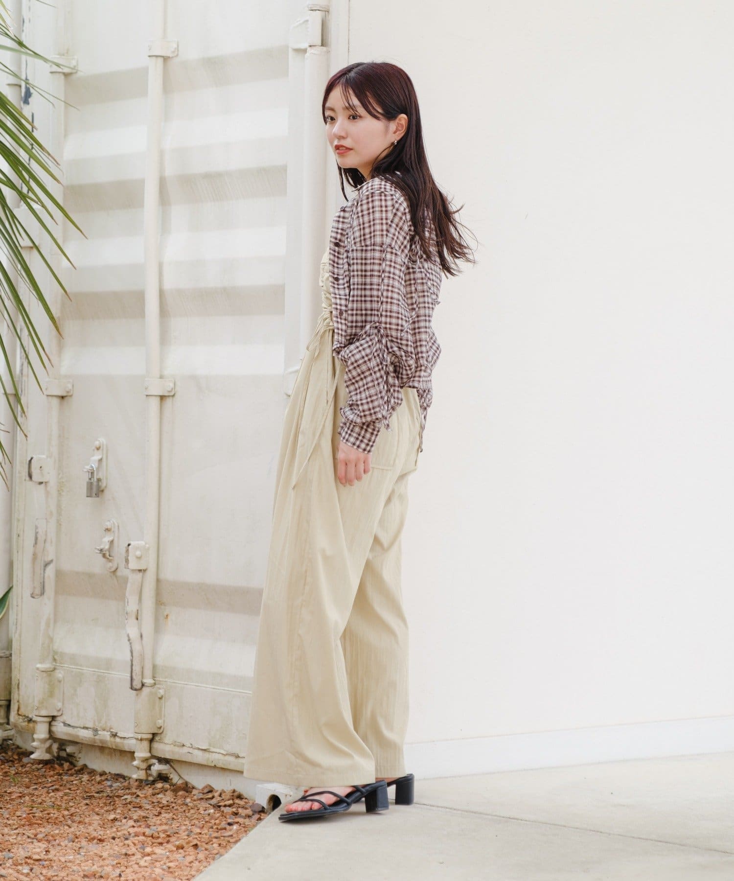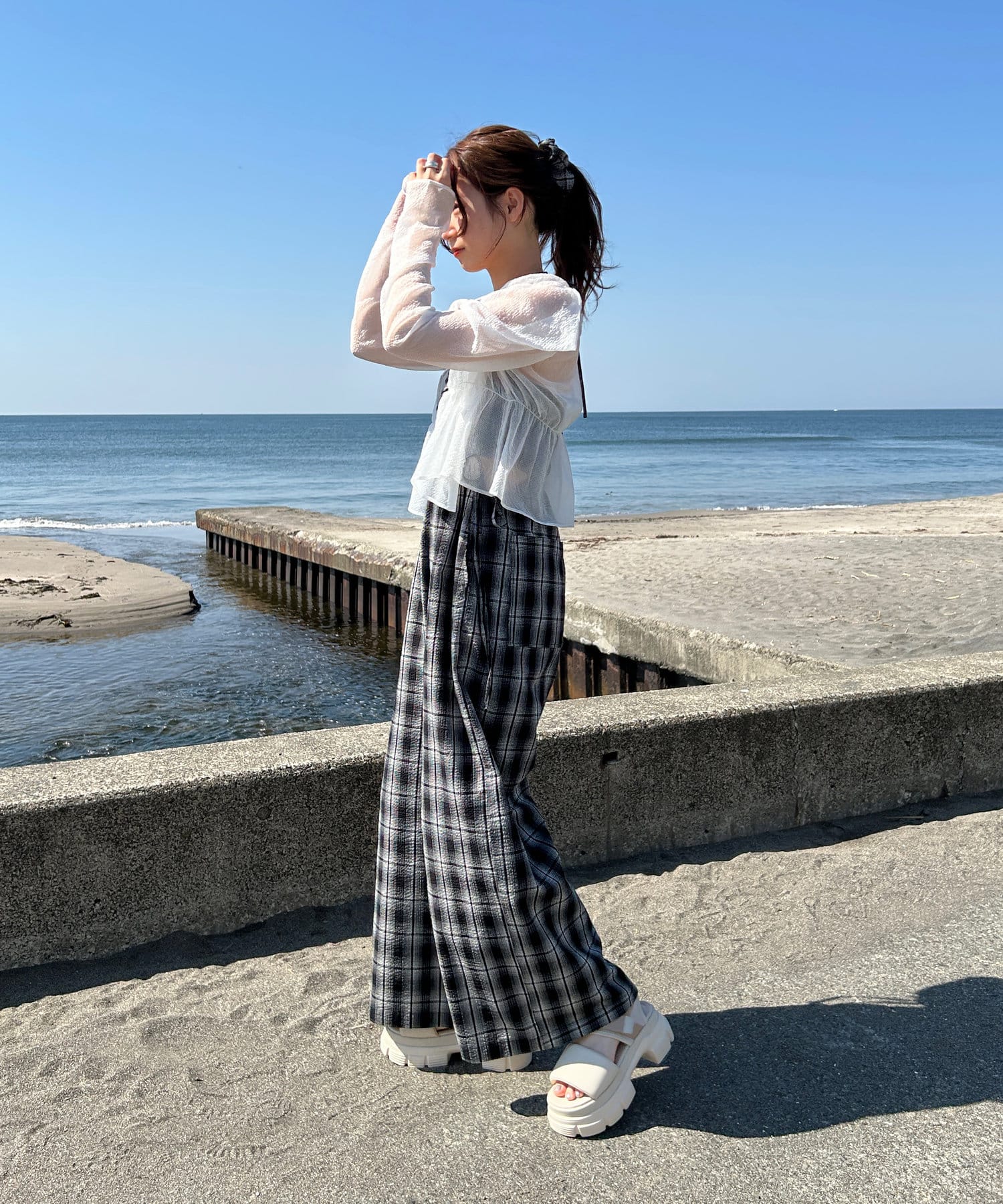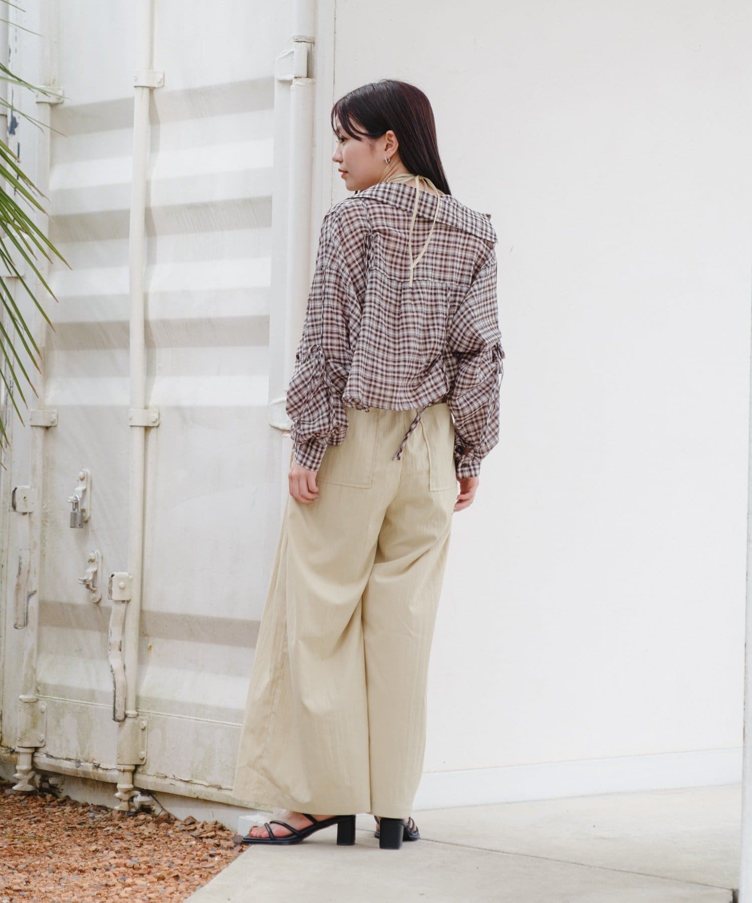 パンツは細見えしてくれるワイドシルエットです。