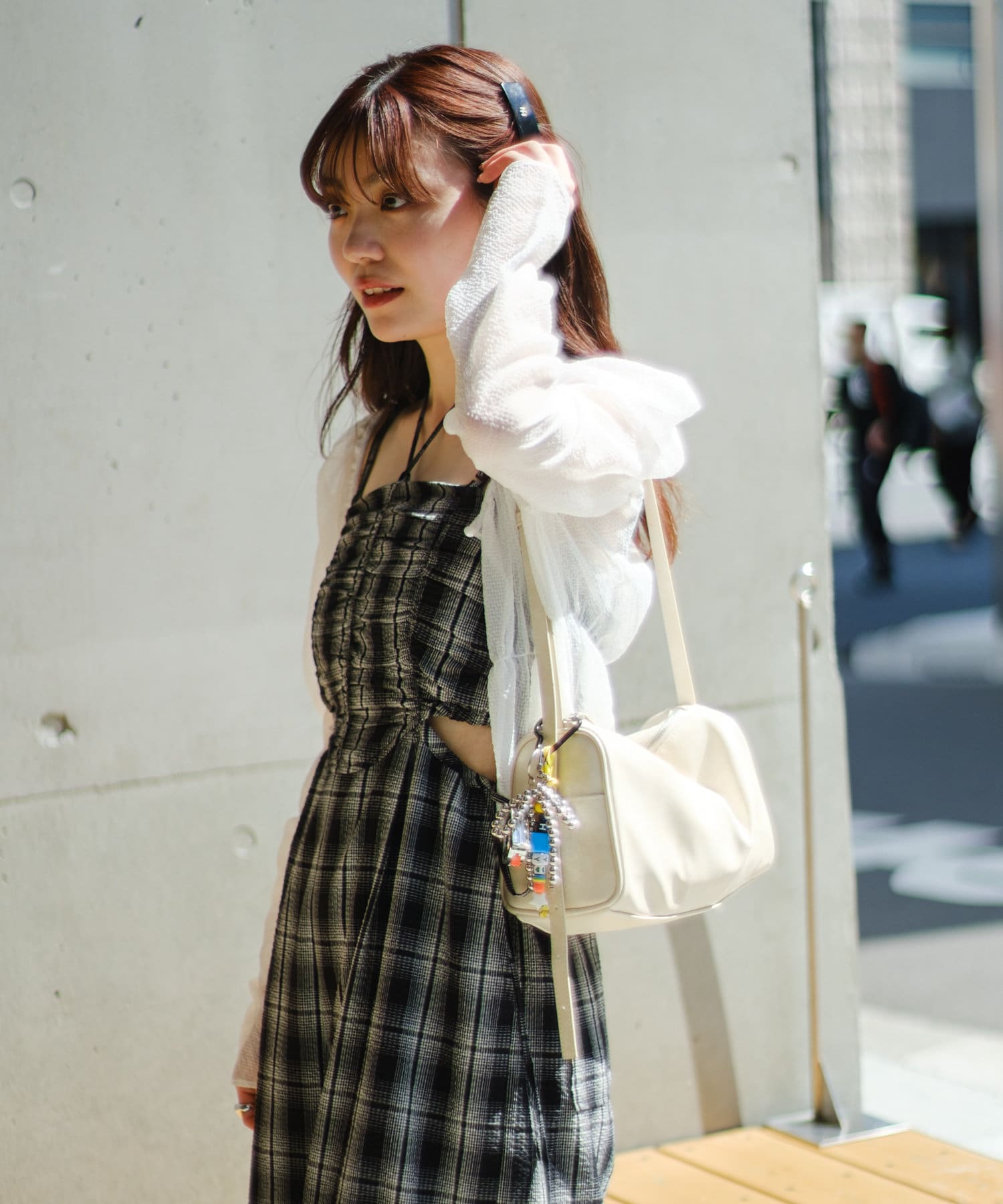 ウエストのサイド部分を肌見せしたい場合は短丈のインナーを合わせるのが◎
