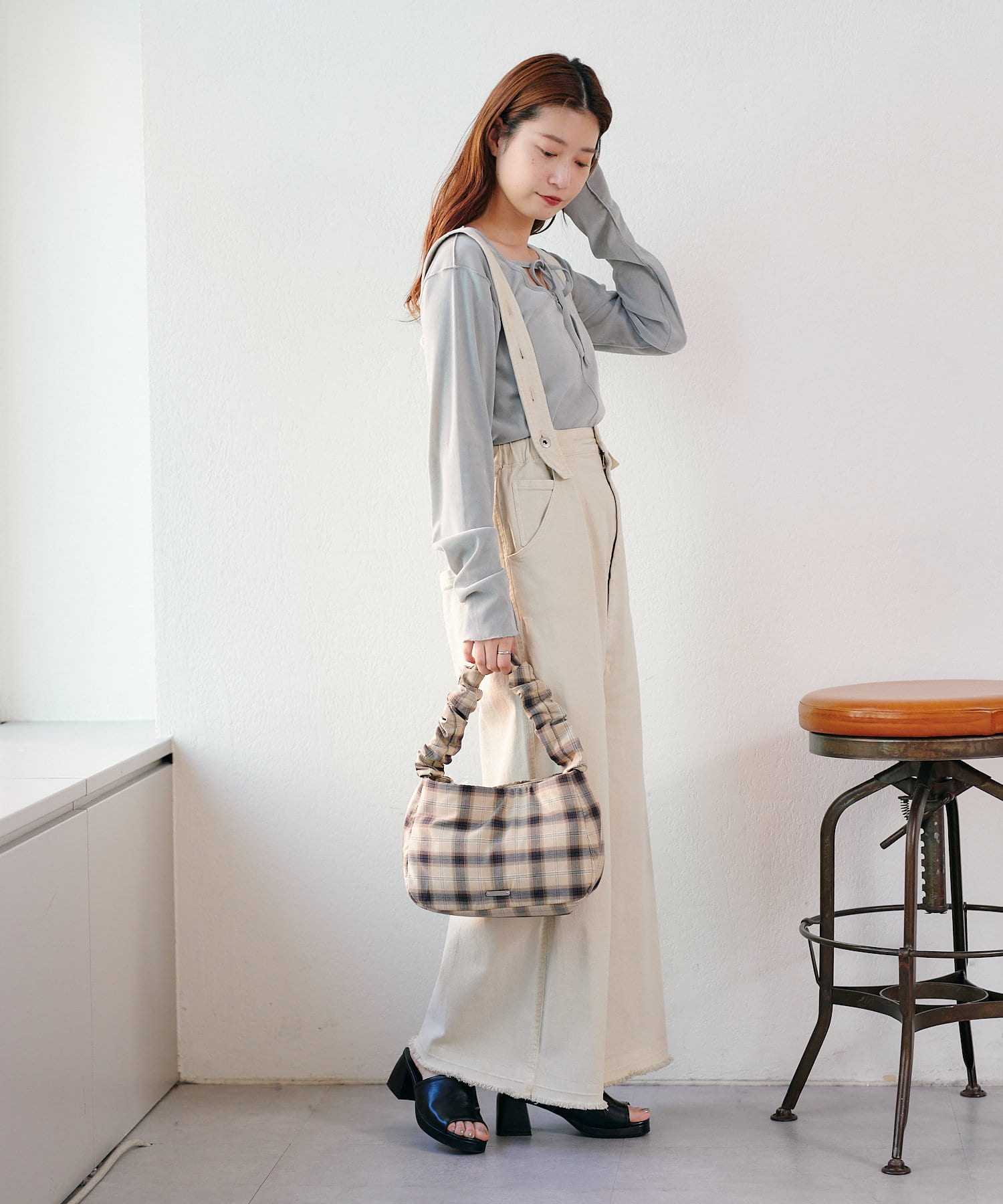 ワイドシルエットなので、腰回りのラインを一切拾いません。