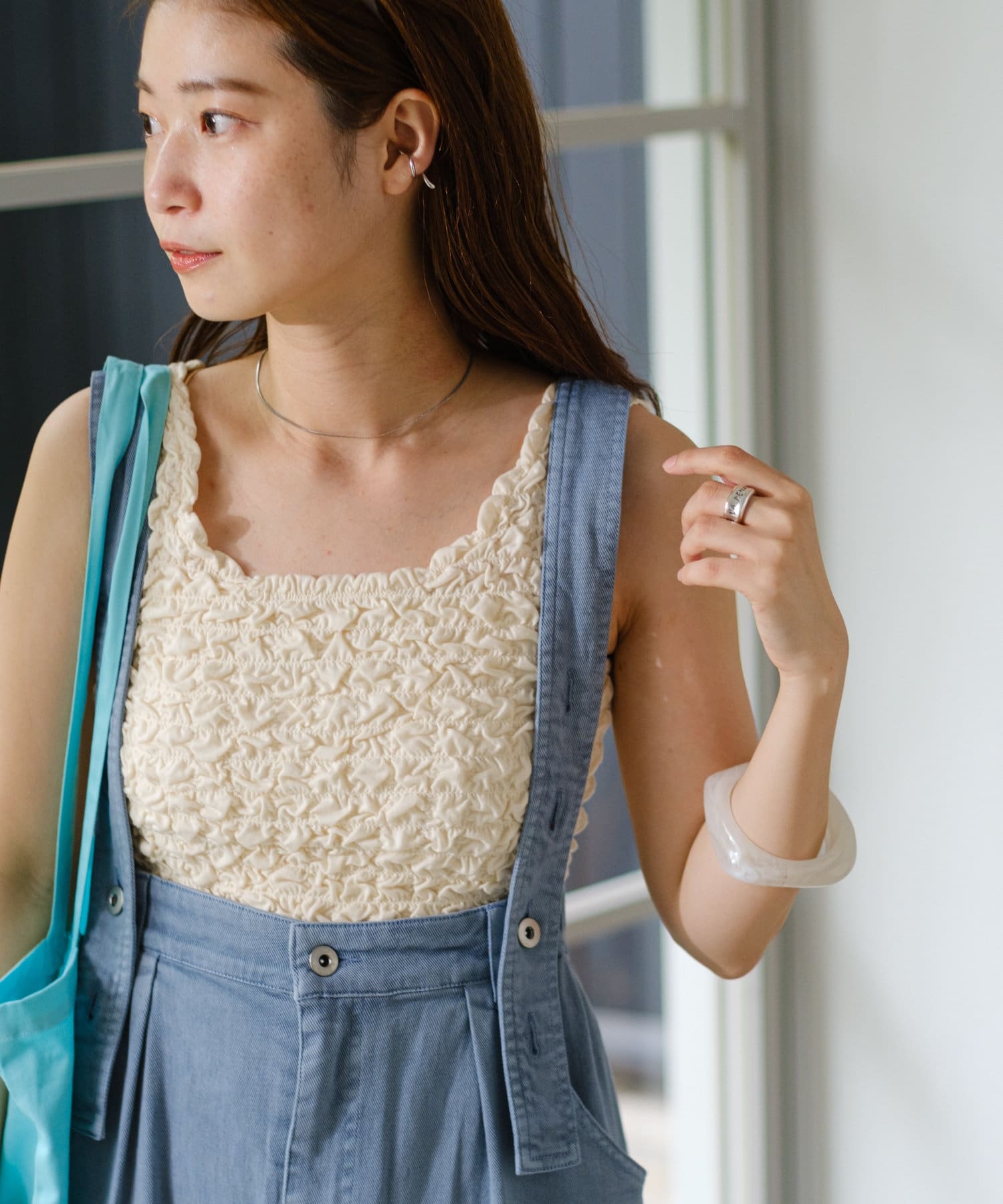 コンパクトなトップスをインナーへレイヤード、羽織りでしたら、クロップド丈がすっきり着ていただけます。