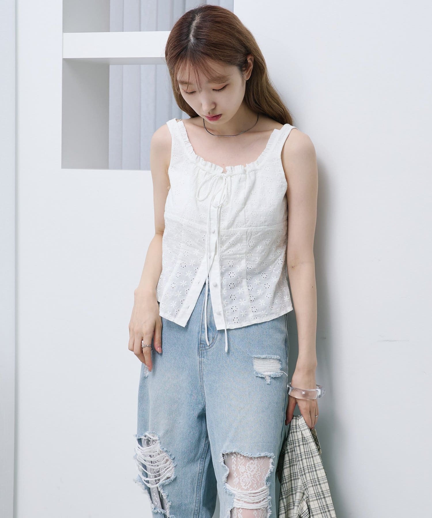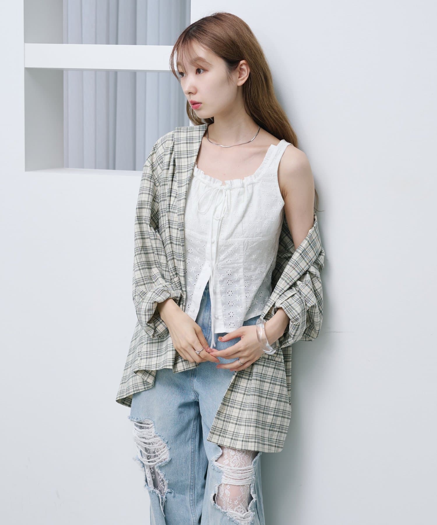 重ね着でも一枚着でも楽しめるコットンレースビスチェ