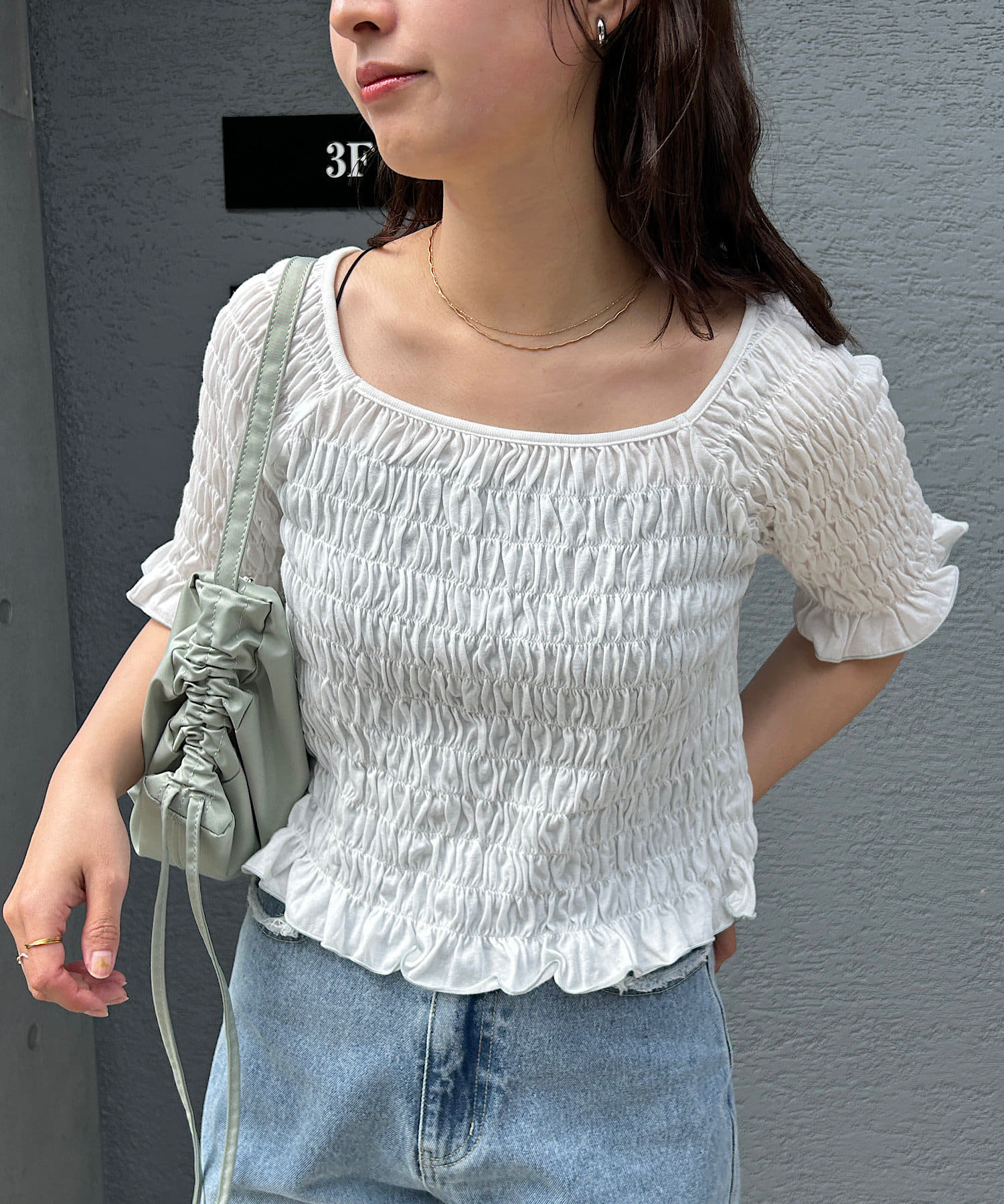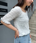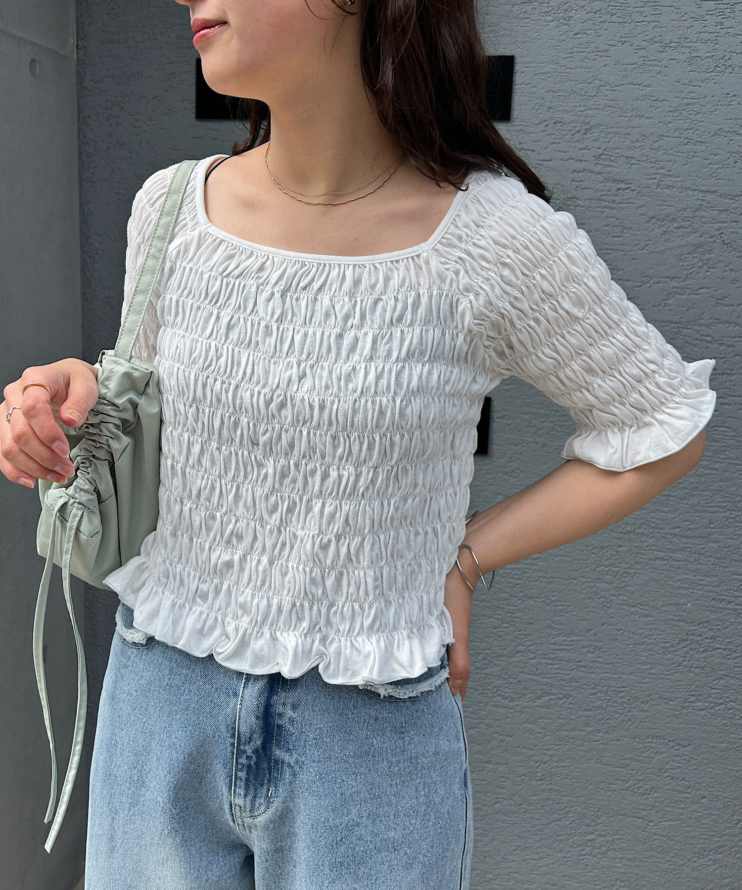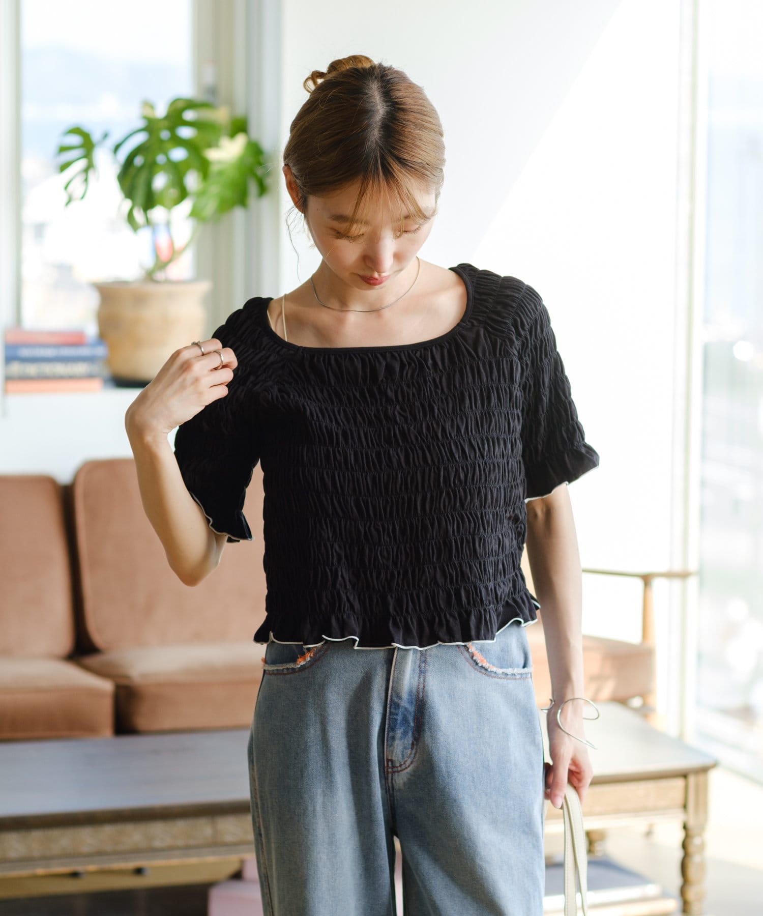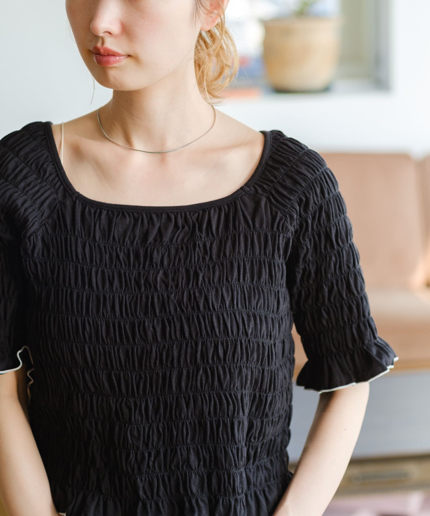 ふんわりとしたシャーリングデザインが魅力のカットソー