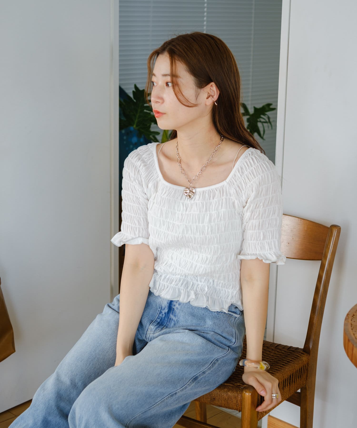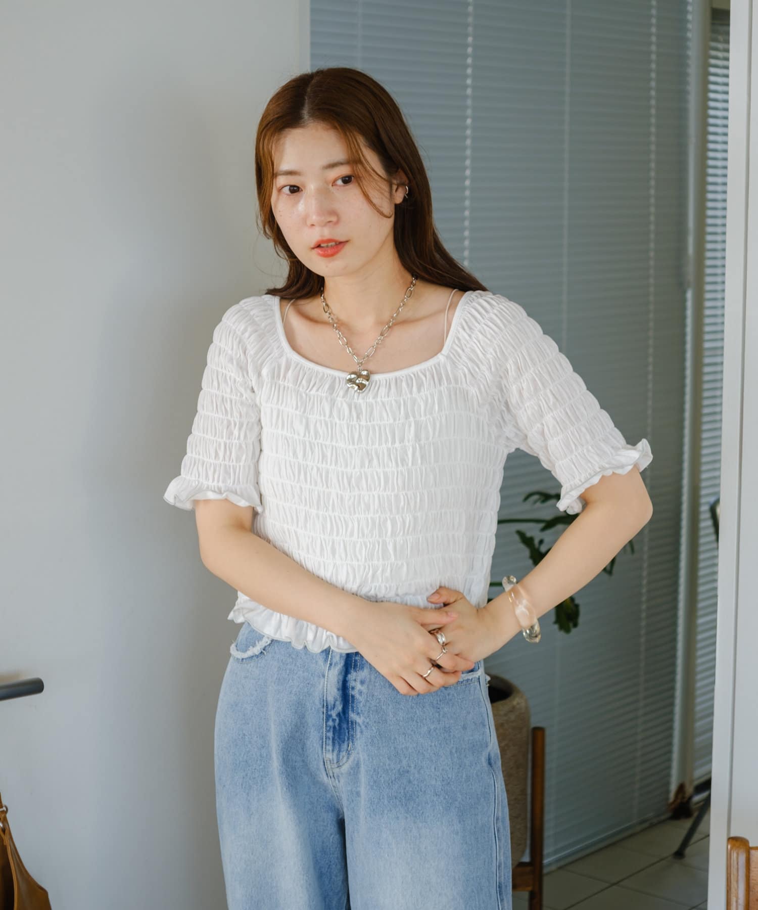 カジュアルにもフェミニンにもマッチし、インナーとしても主役としても活躍できる、毎日のコーデに取り入れやすいアイテムです。