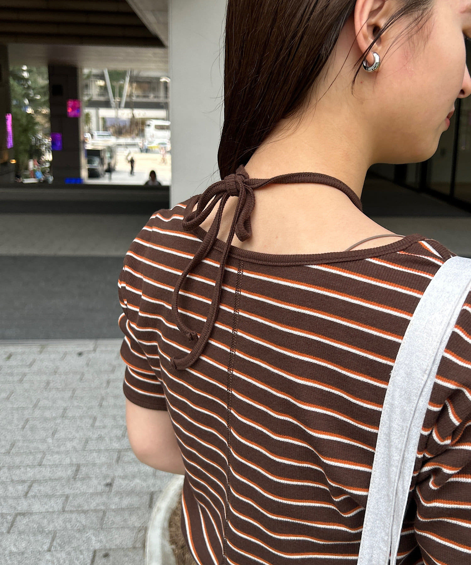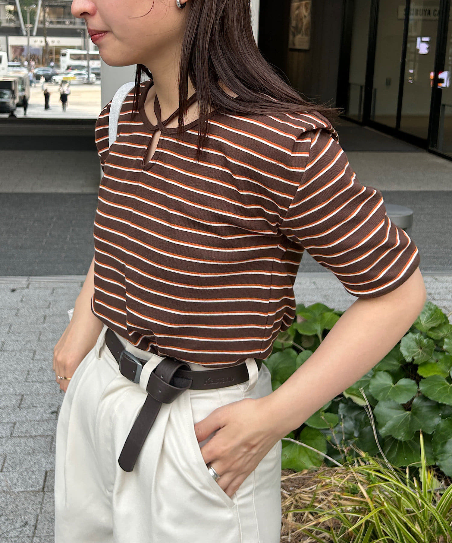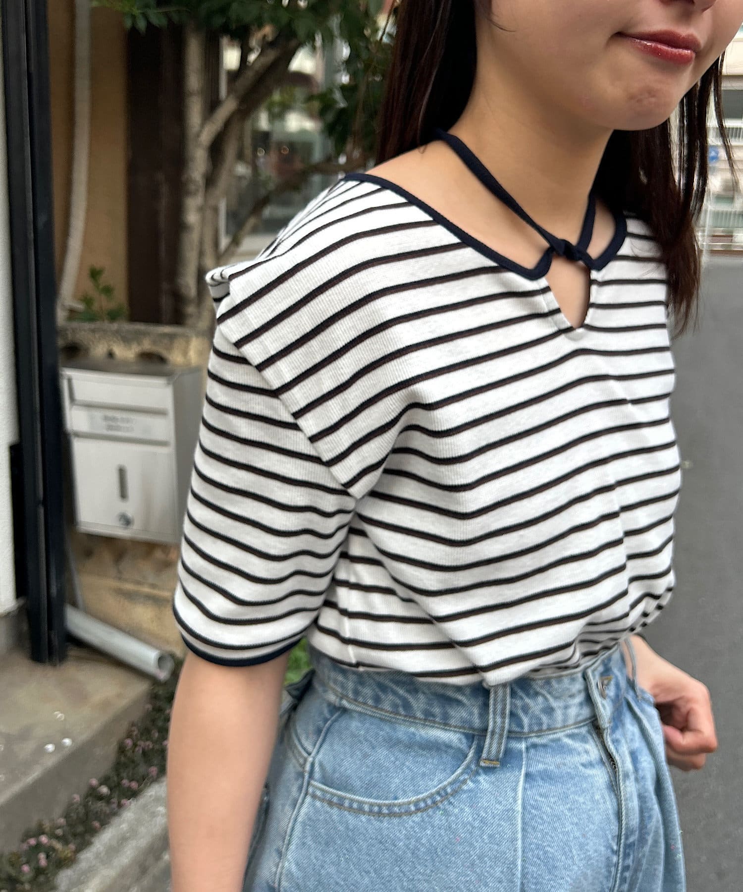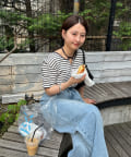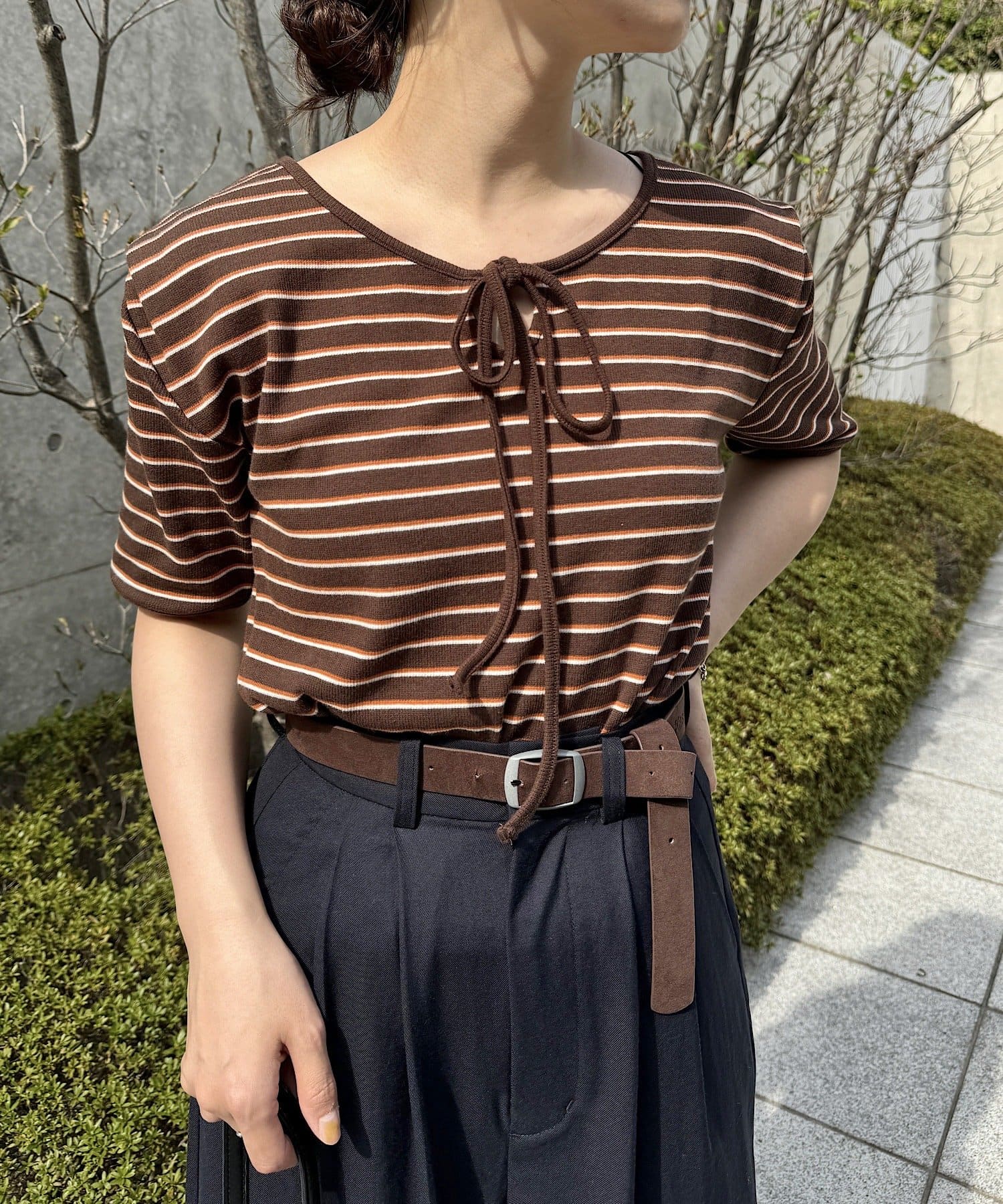 ベーシックに使えるボーダーにアレンジを加えたデザイントップスです。