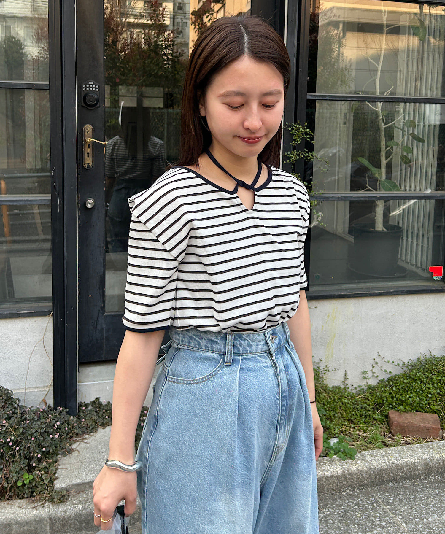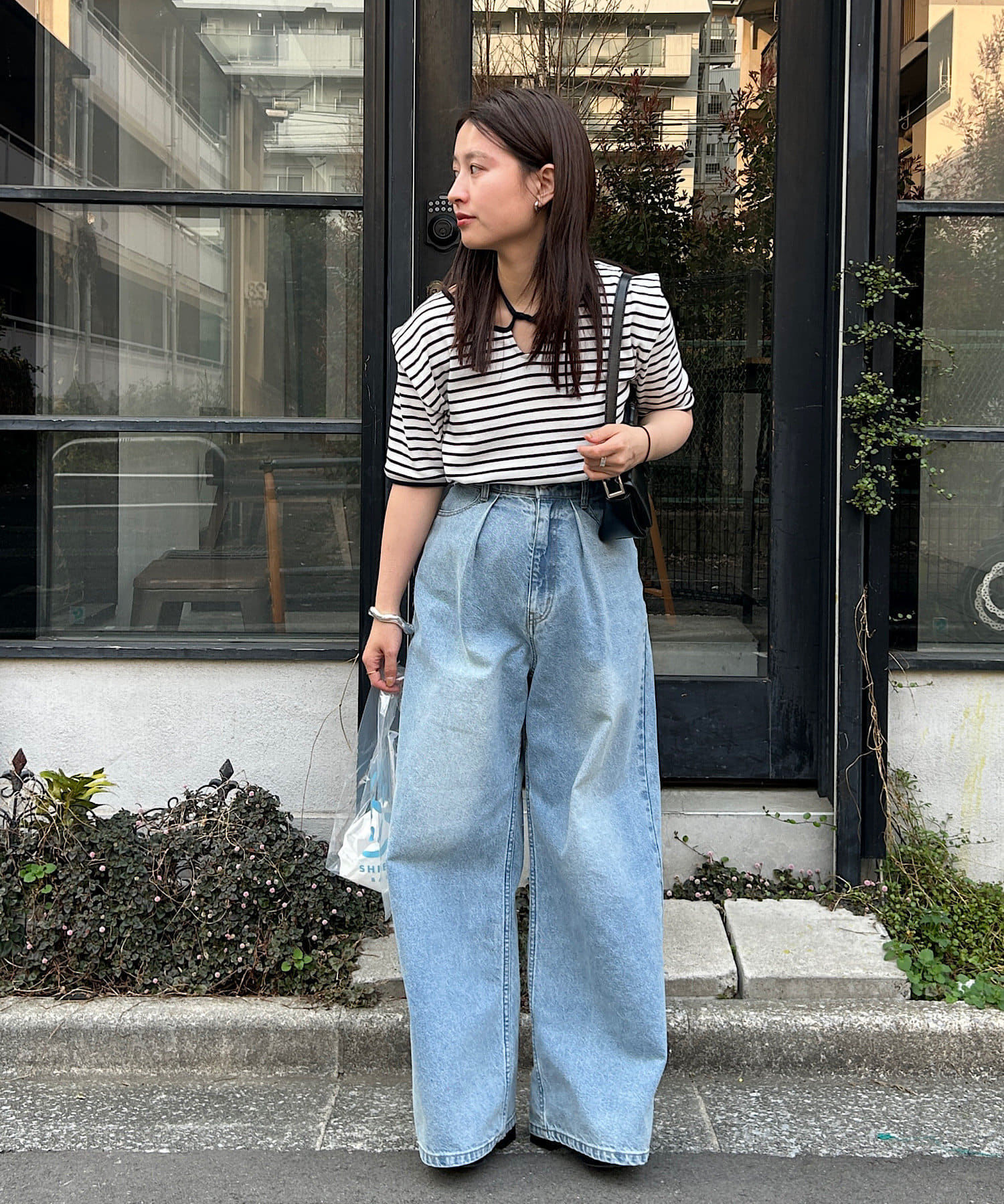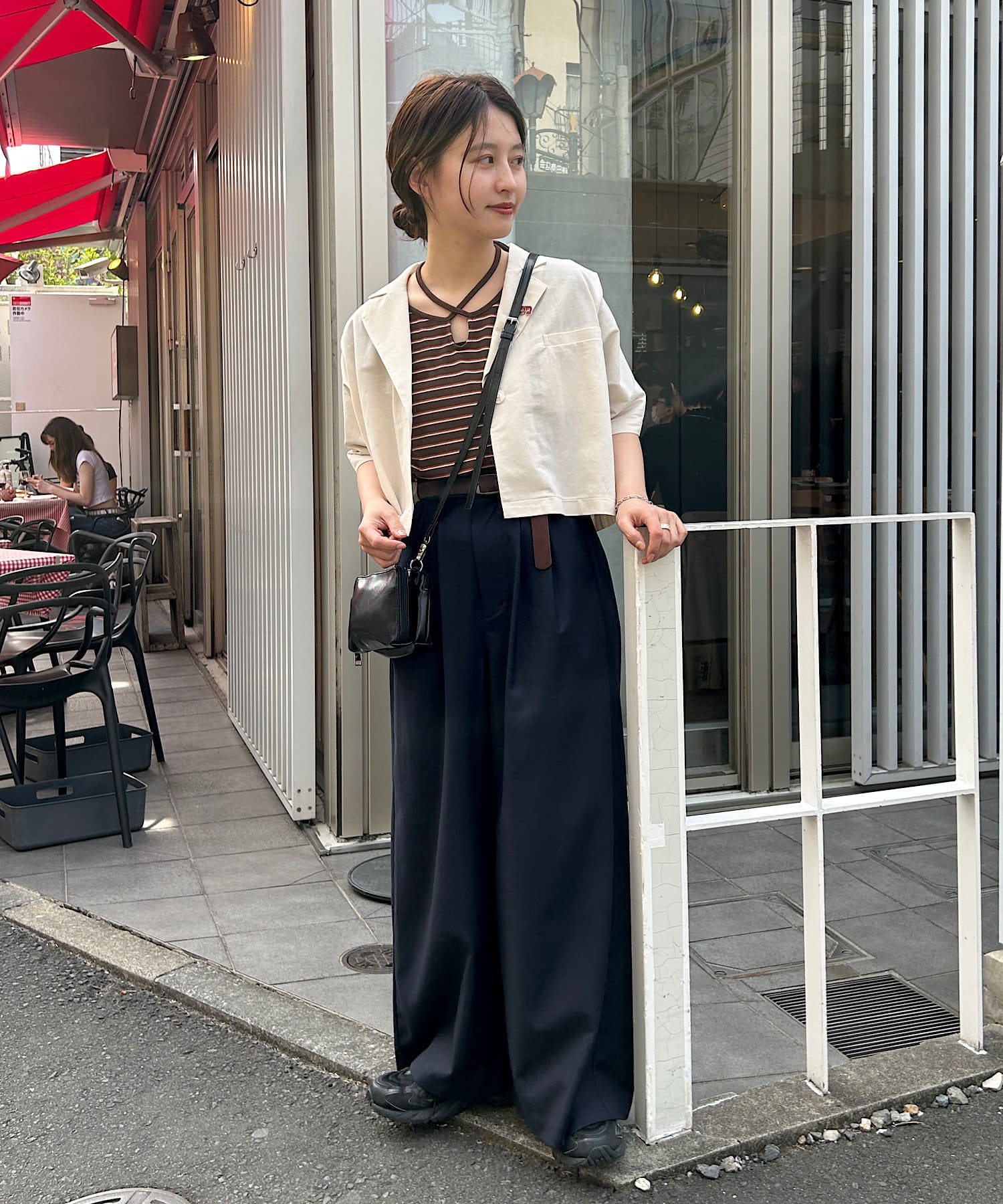 コンパクトトップスにはボトムでボリュームを入れるバランスがオススメです。