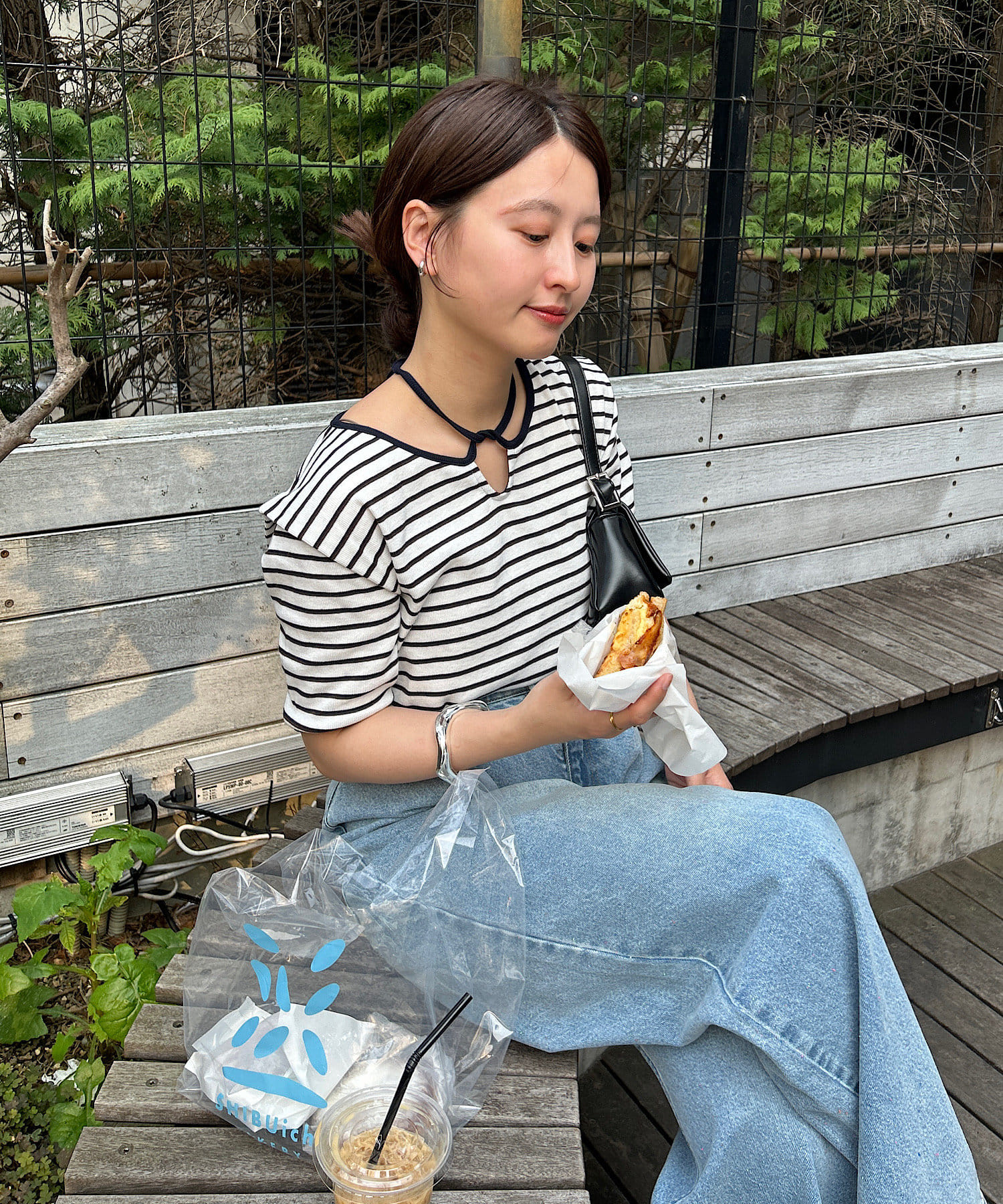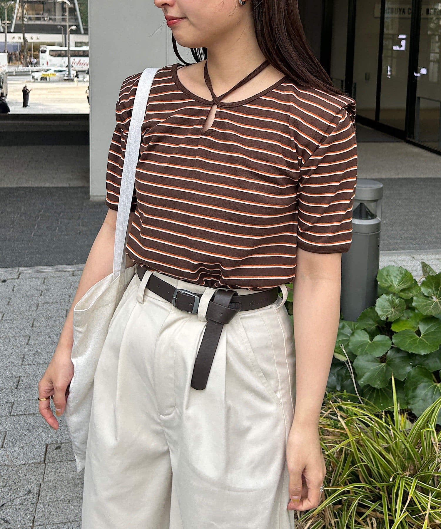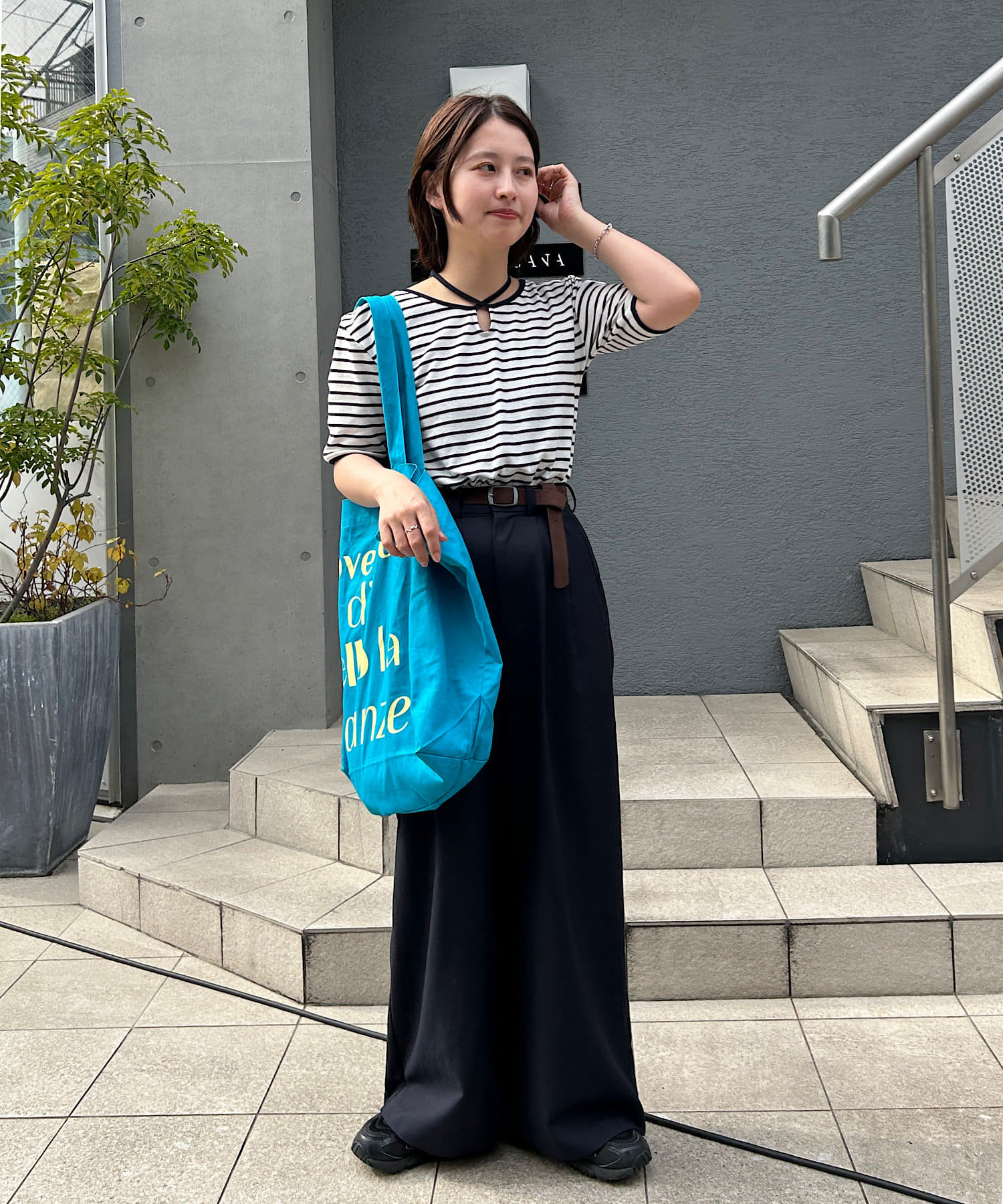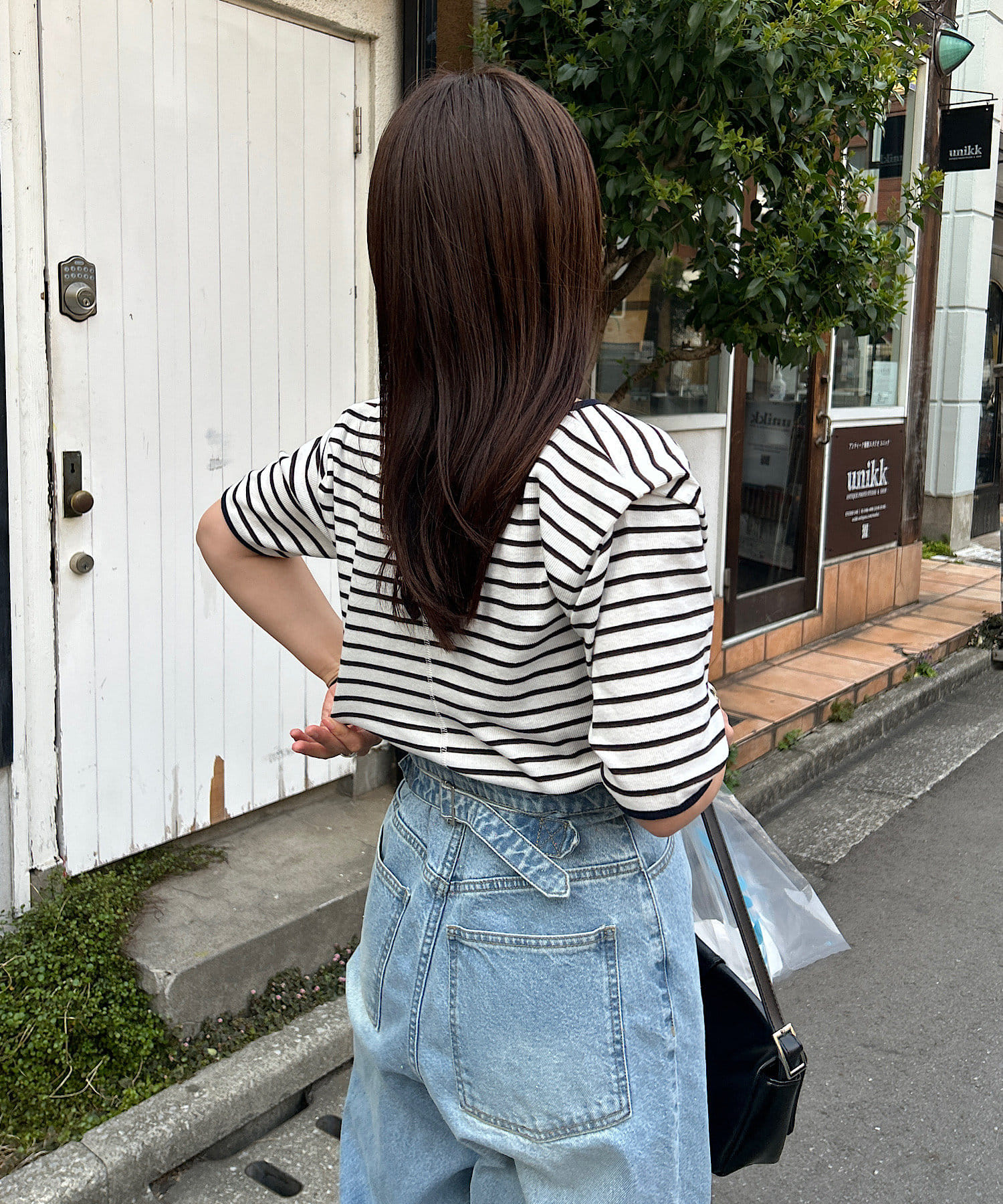 コンパクトトップスにはボトムでボリュームを入れるバランスがオススメです。