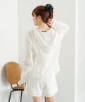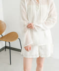 首元の紐を結んだり、垂らしたりして雰囲気を変えられるのも嬉しいポイント。