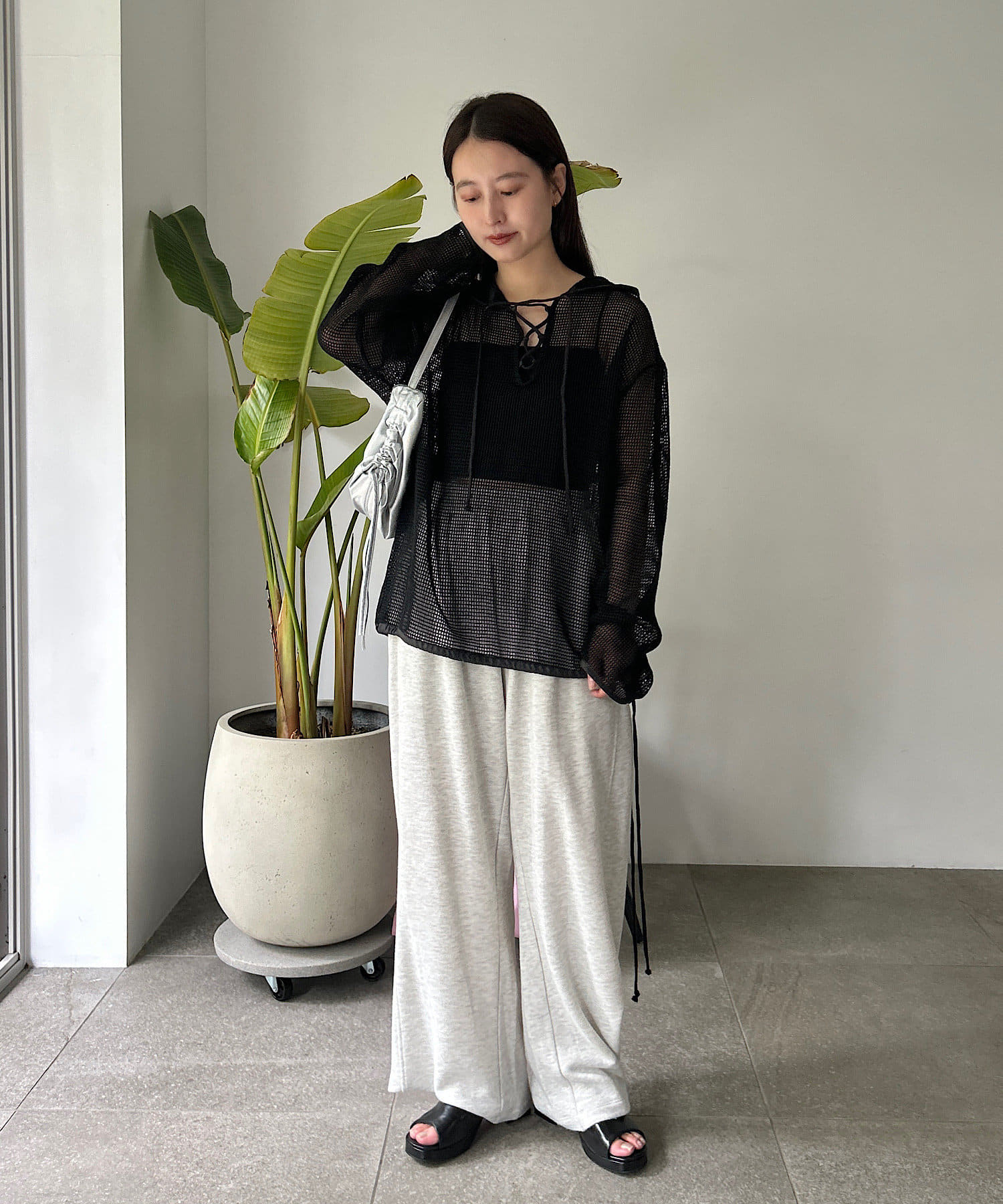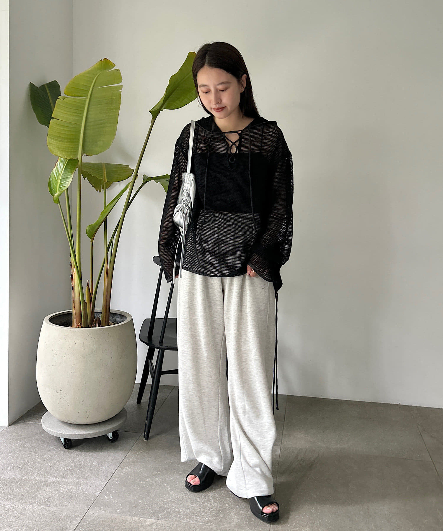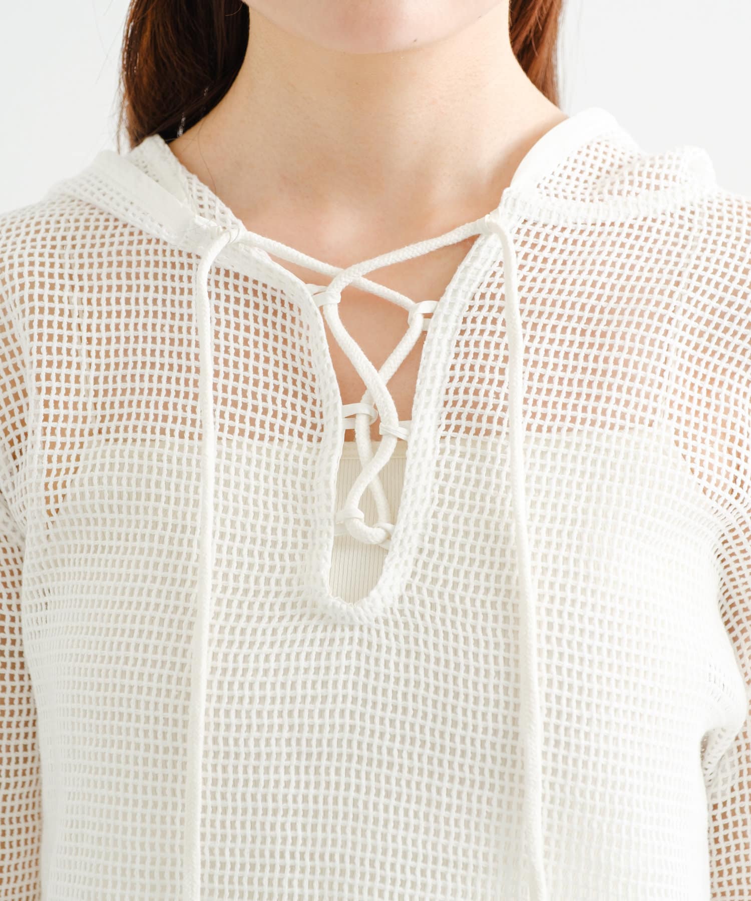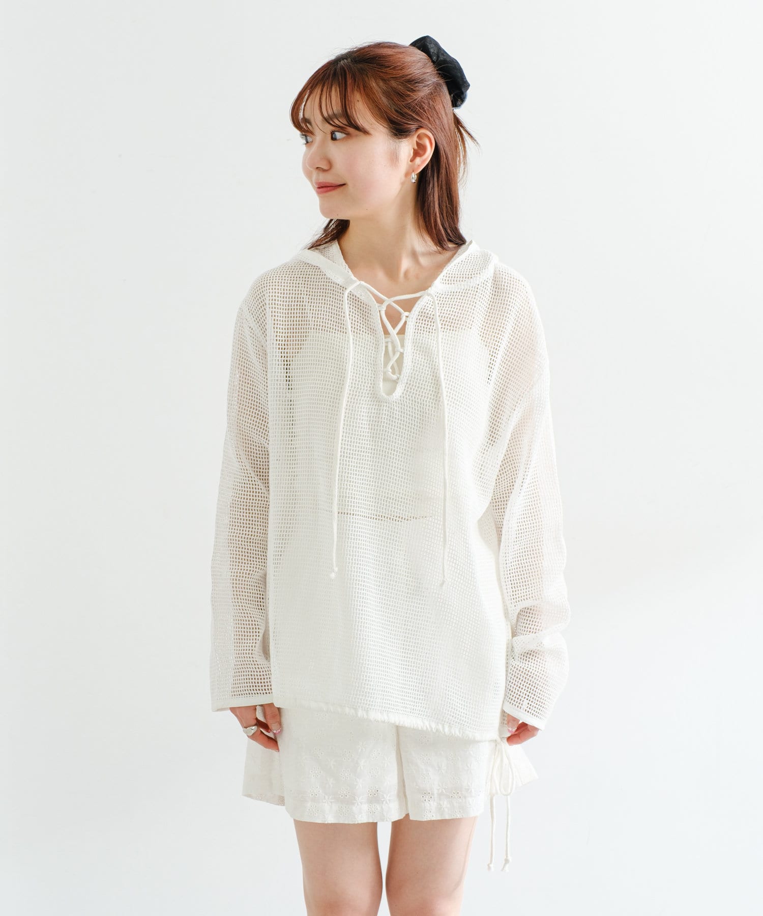 首元の紐を結んだり、垂らしたりして雰囲気を変えられるのも嬉しいポイント。